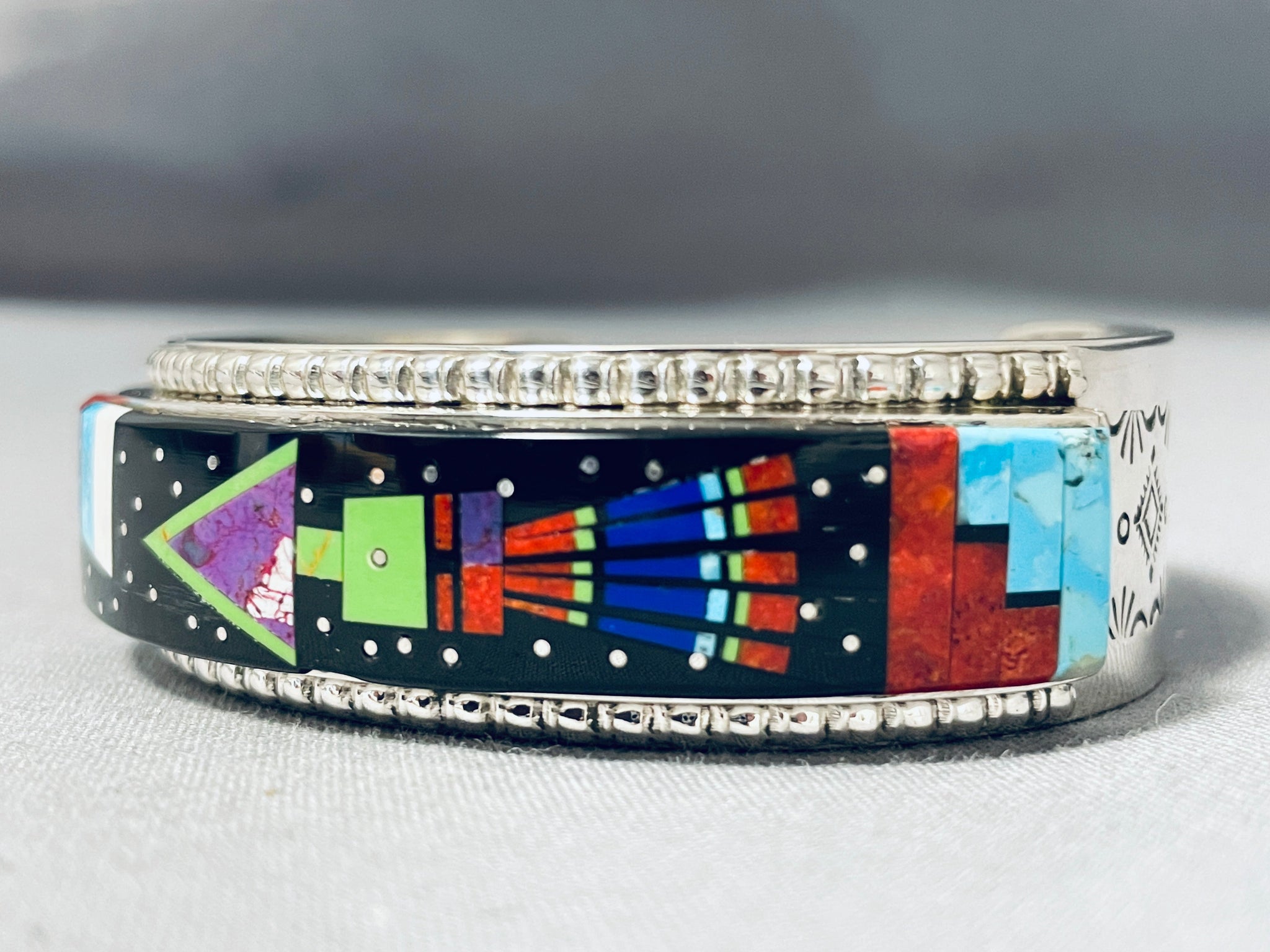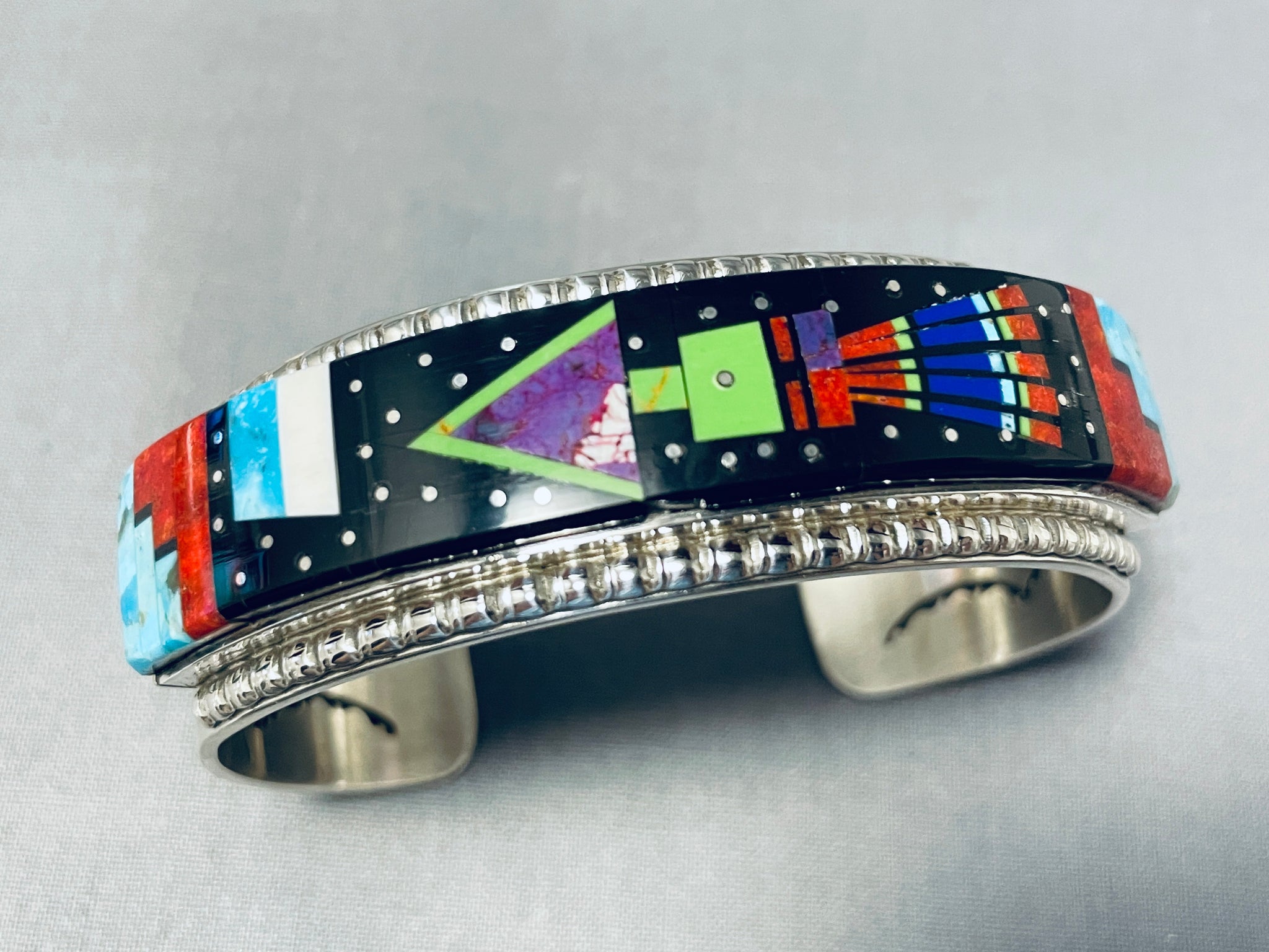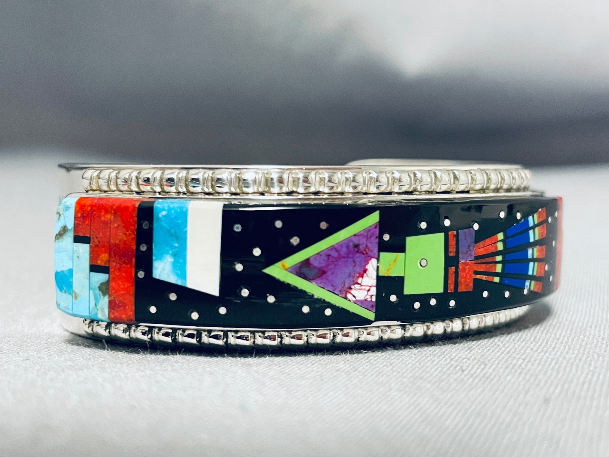 Native American Over The Top Intricacy Navcajo Turquoise Gaspeite Sterling Silver Bracelet