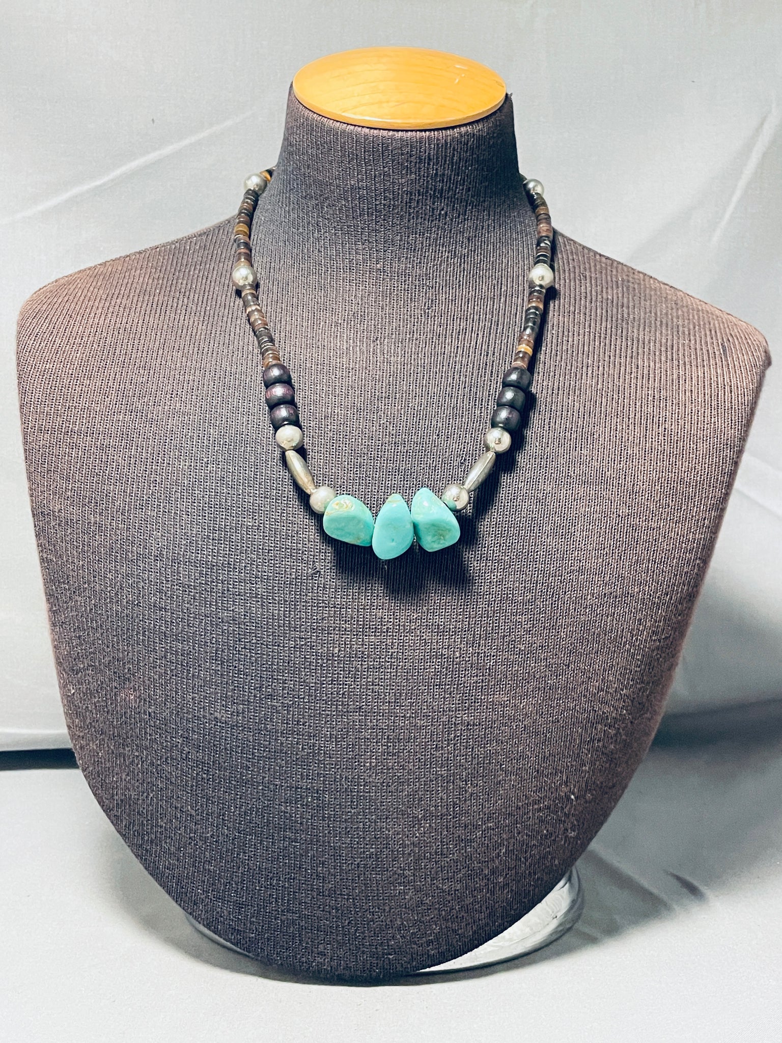 Native American Phenomenal Vintage Santo Domingo 3 Royston Turquoise Shell Necklace