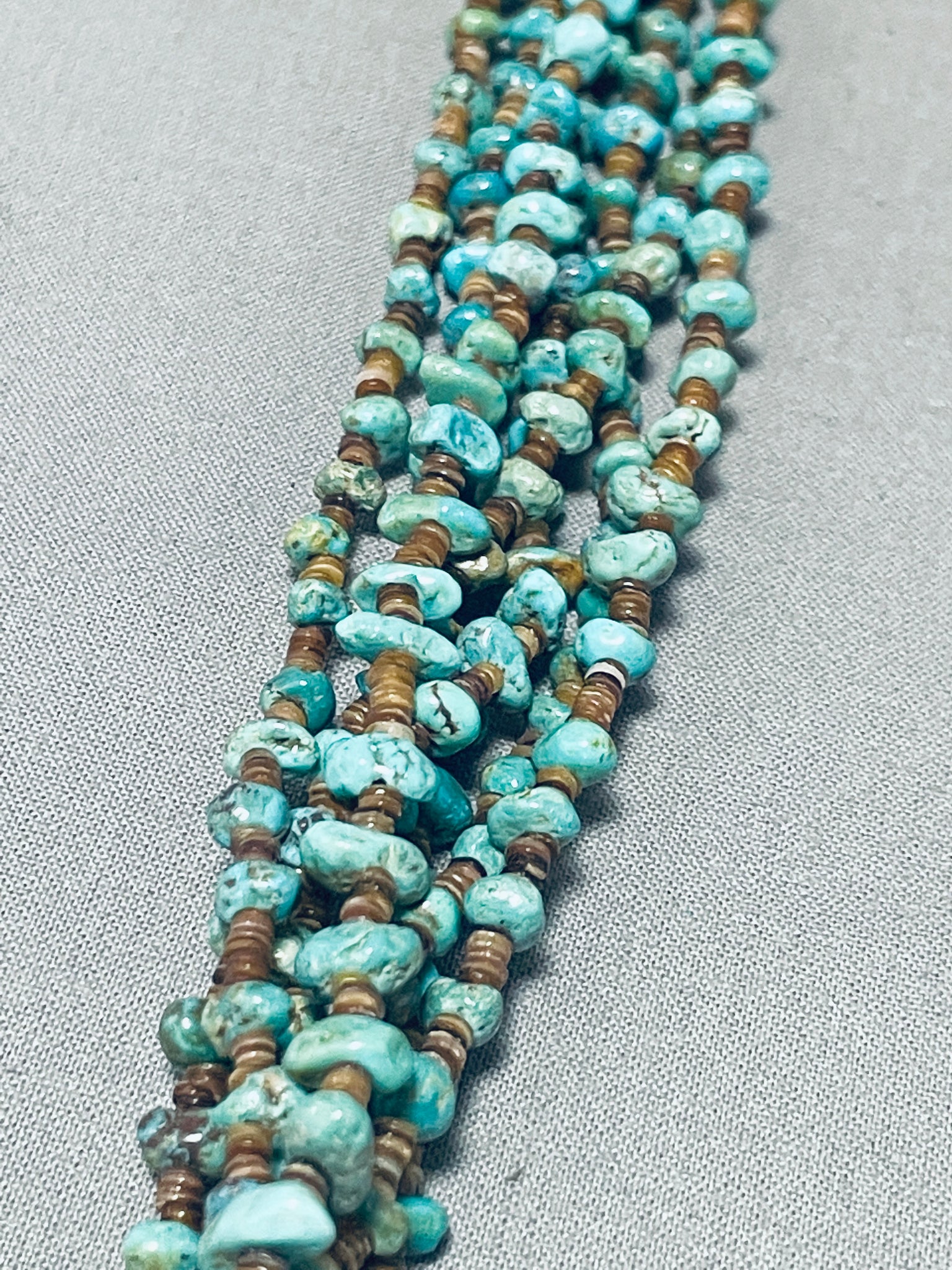 Native American Phenomenal Vintage Santo Domingo 7 Strand Turquoise Heishi Necklace