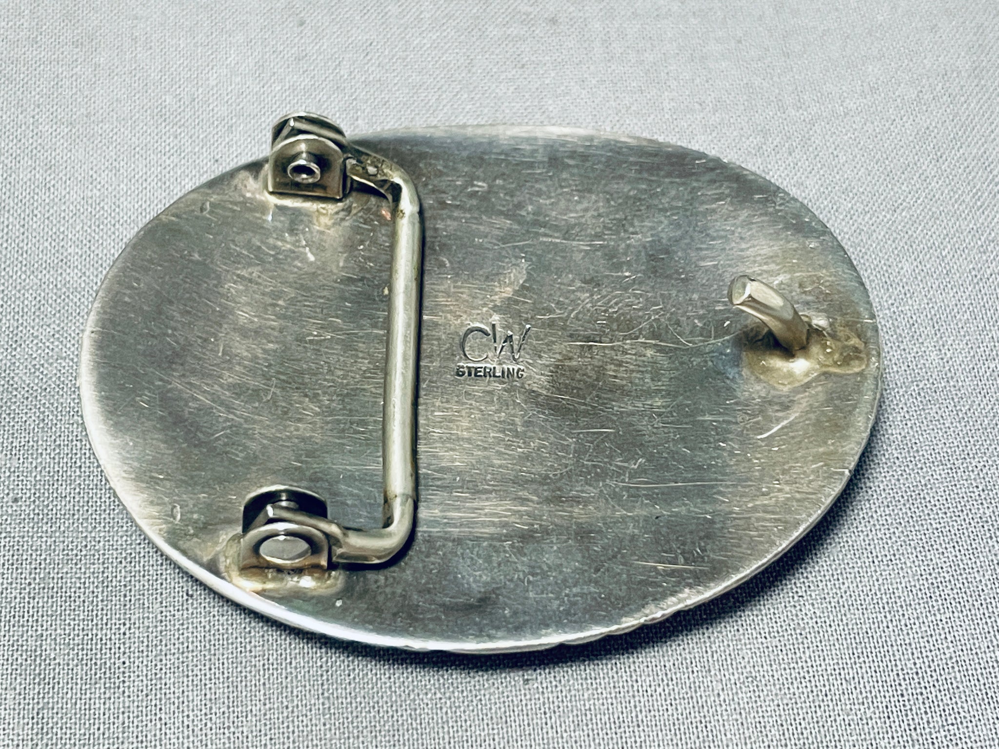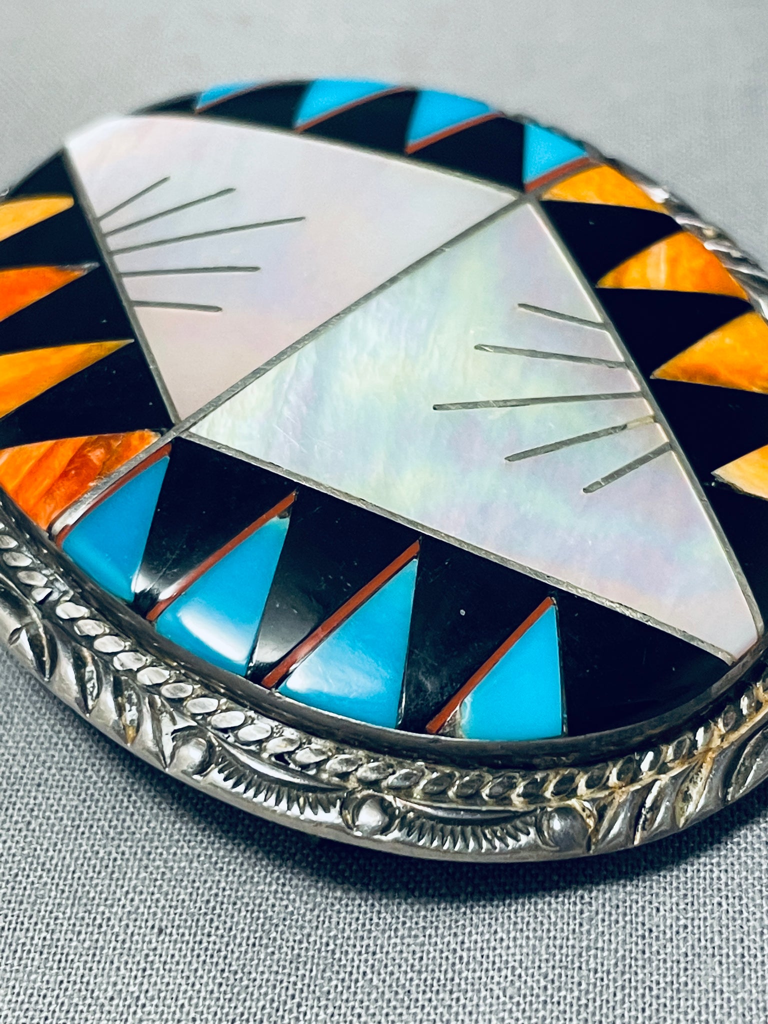 Native American Precisely Detailed Vintage Zuni Turquoise Sterling Silver Shell Buckle