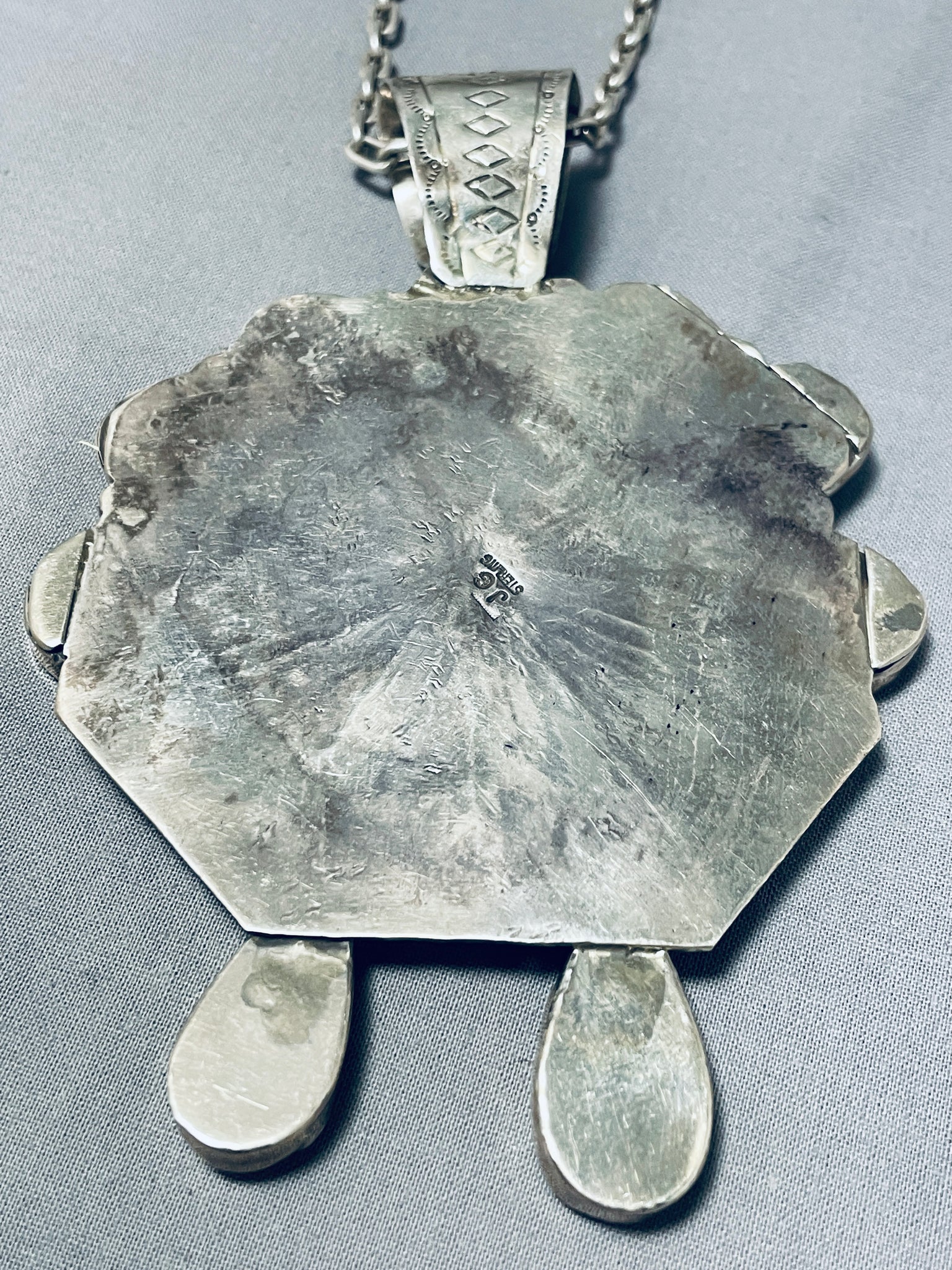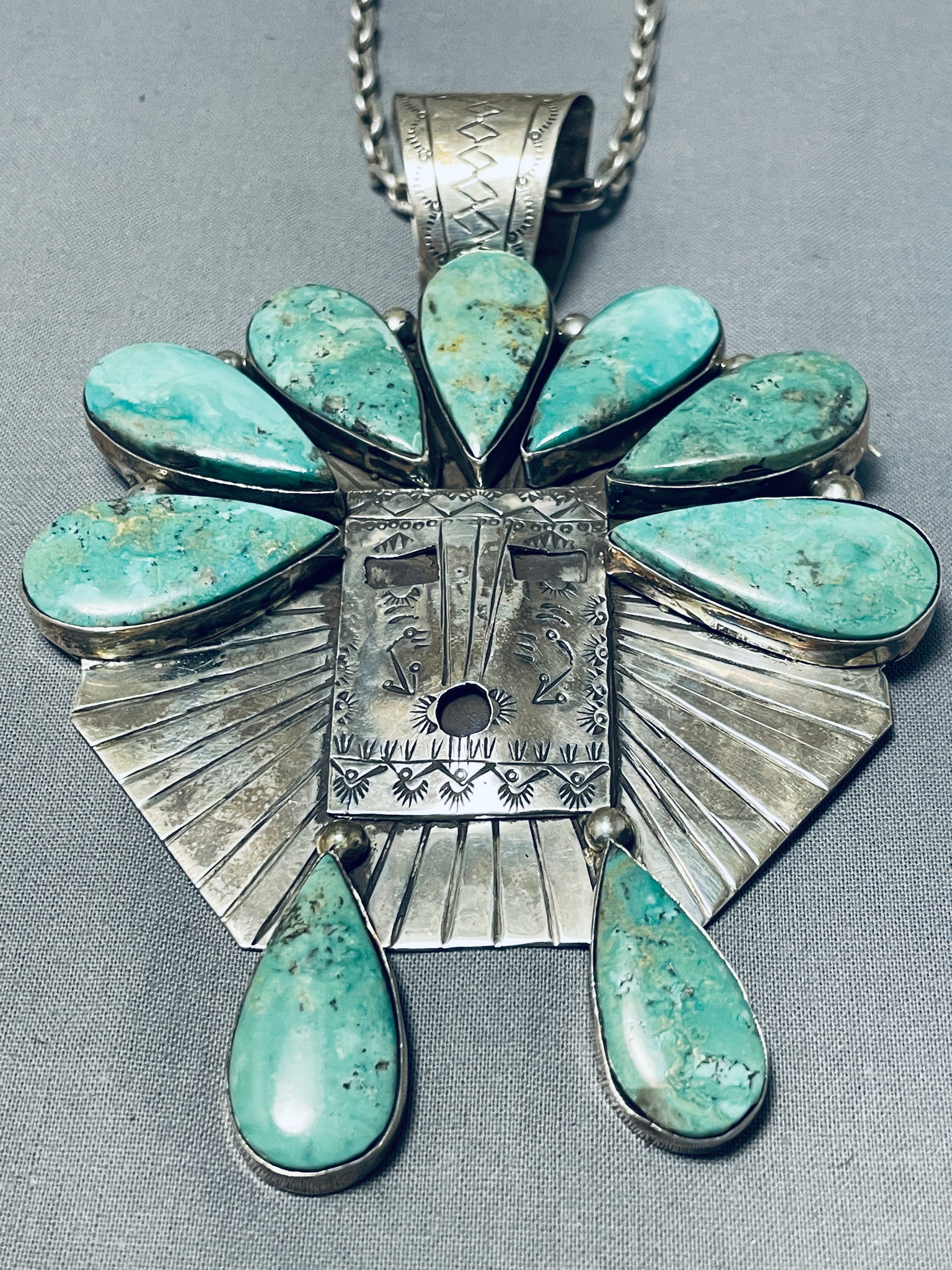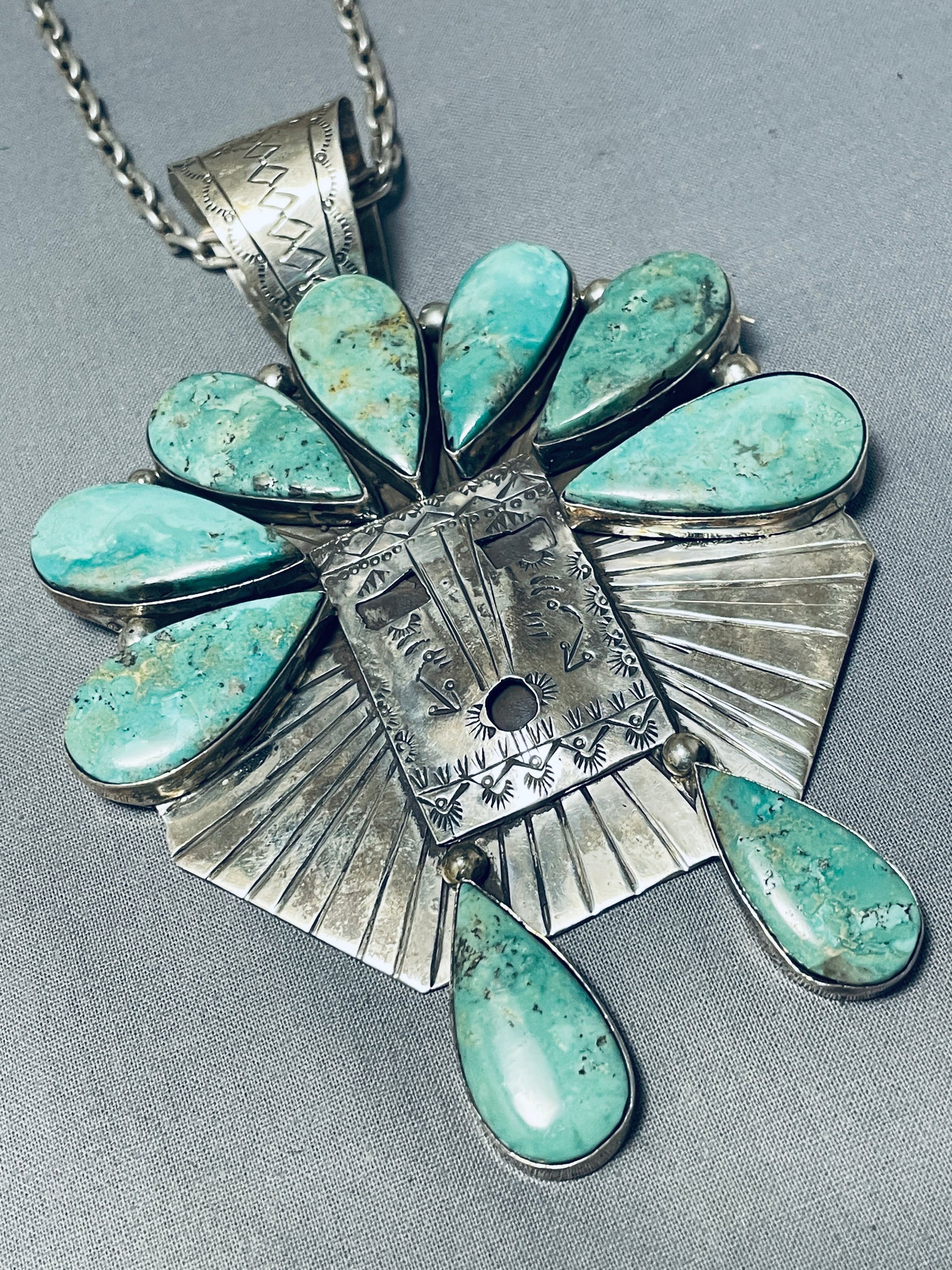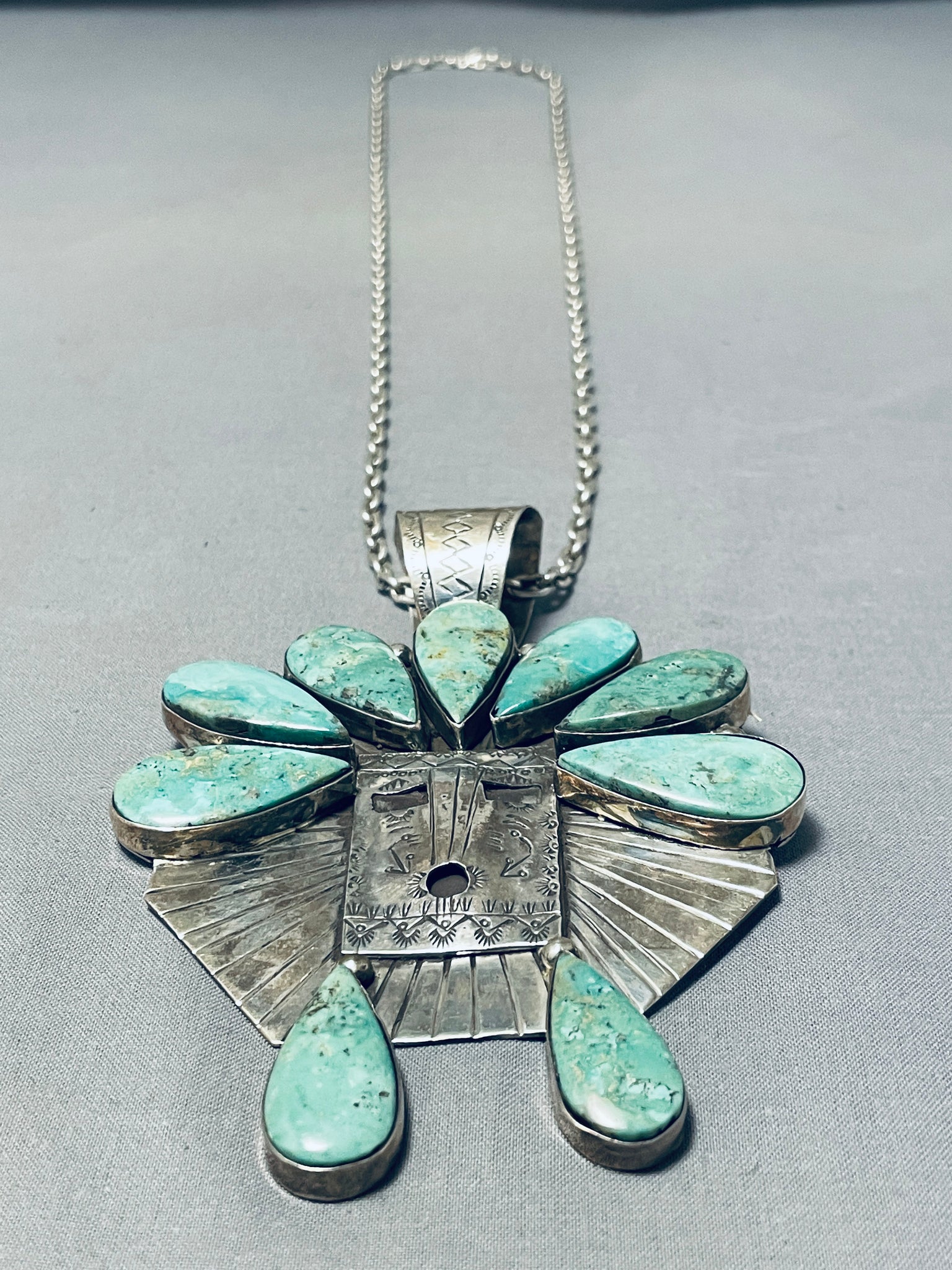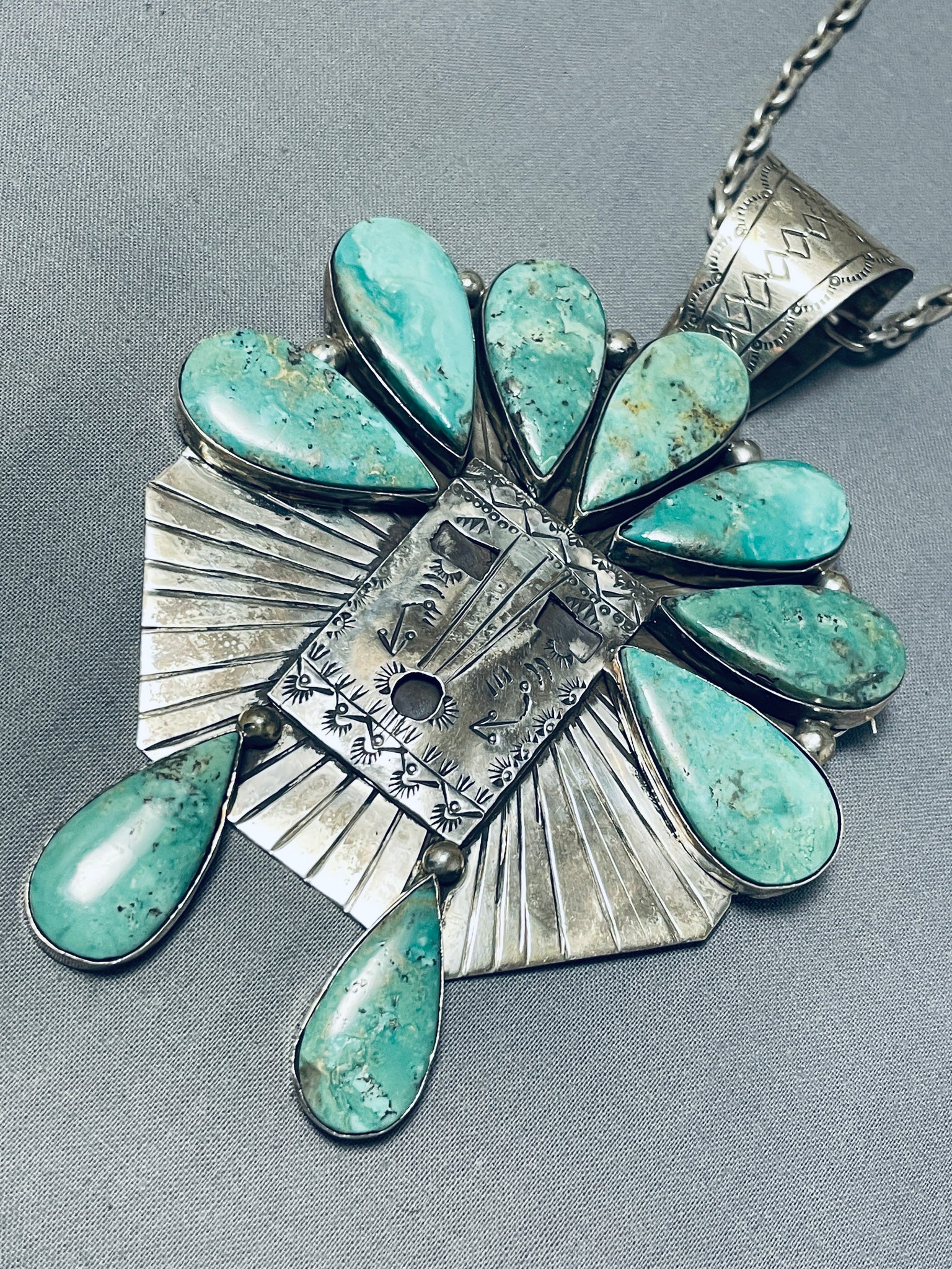 Native American Rare Apache Turquoise Vintage Navajo Sterling Silver Necklace