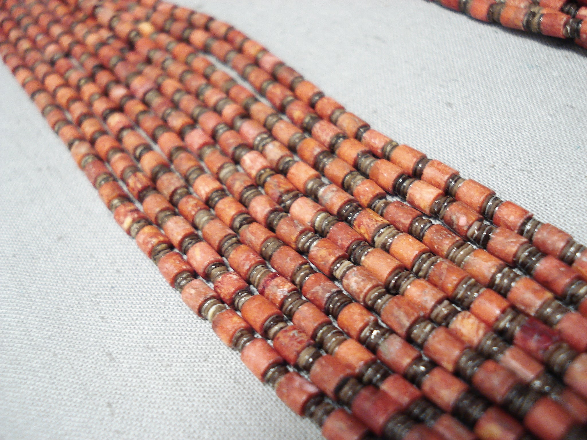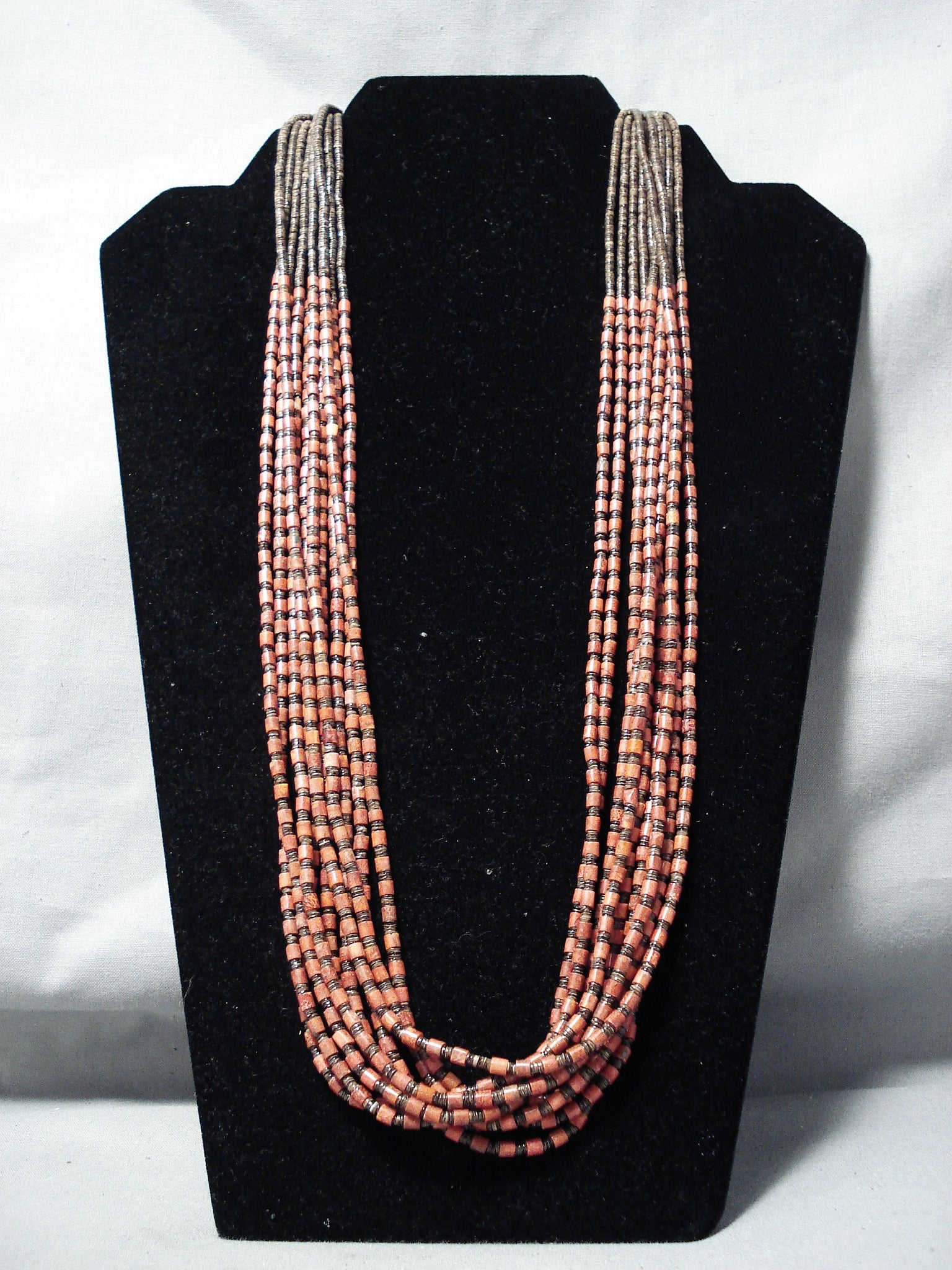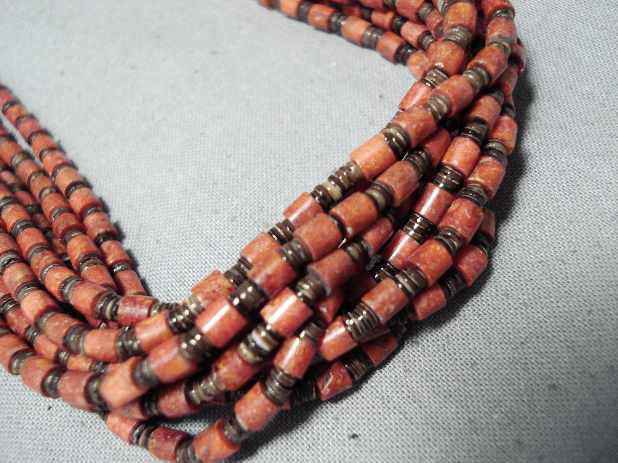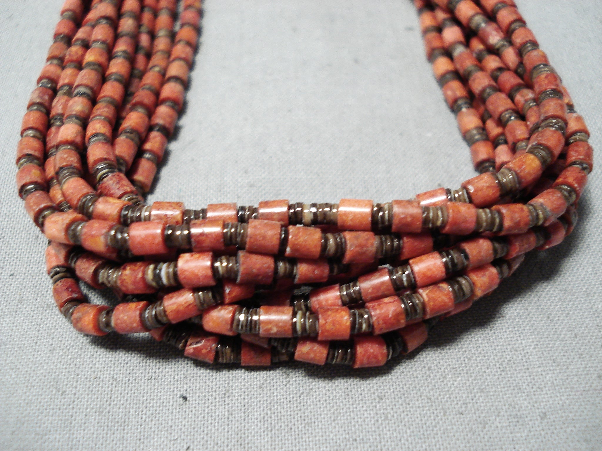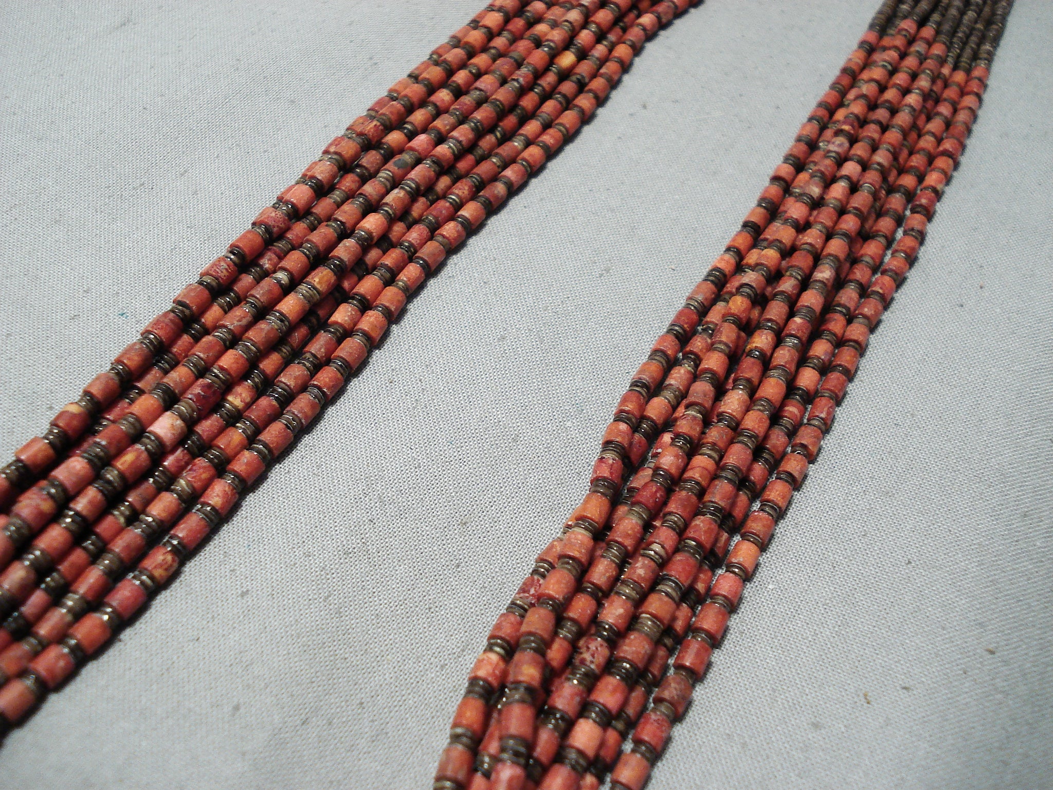 Native American Rare Authentic Santo Domingo Coriz Coral Sterling Silver Heishi Necklace