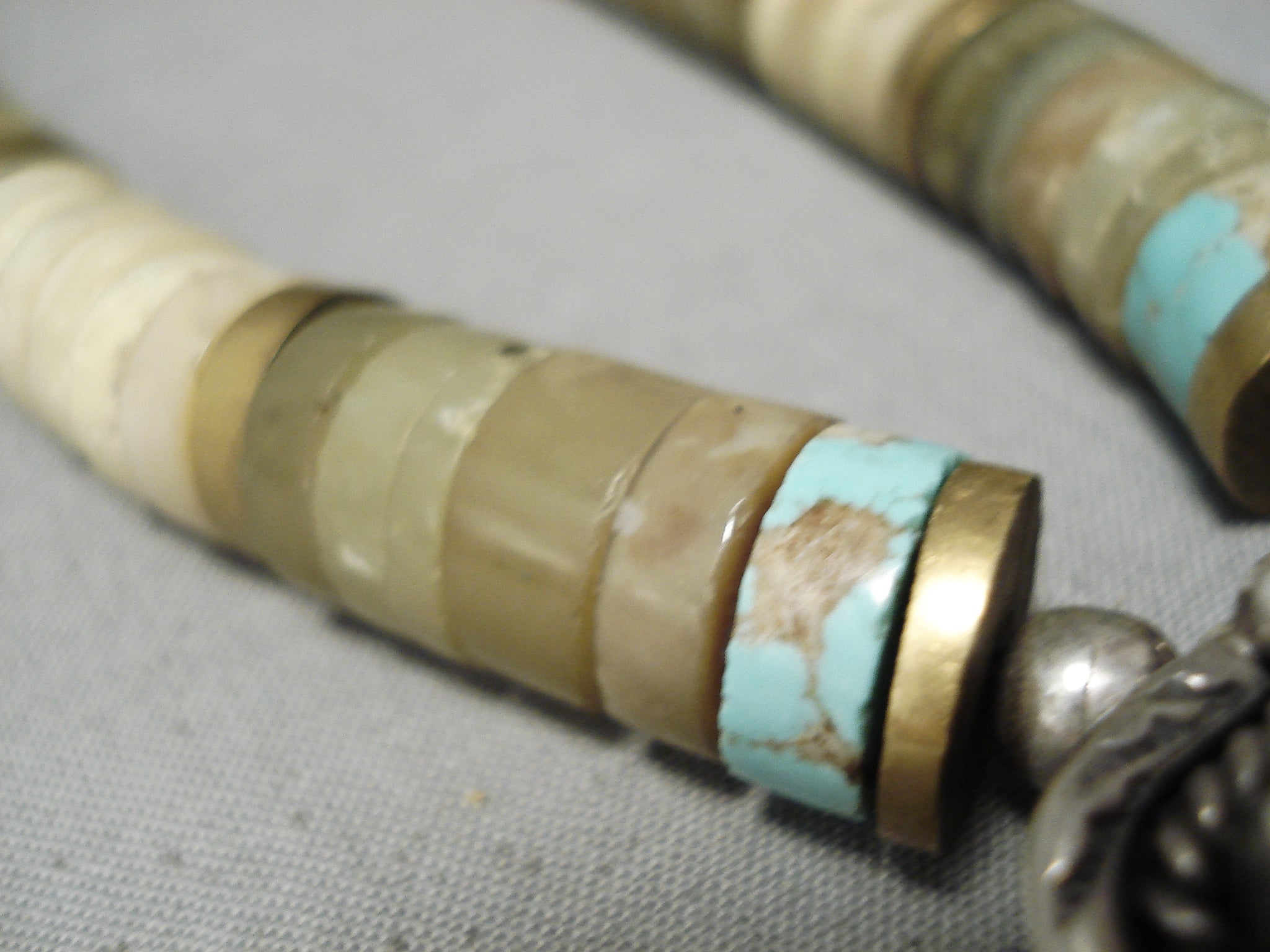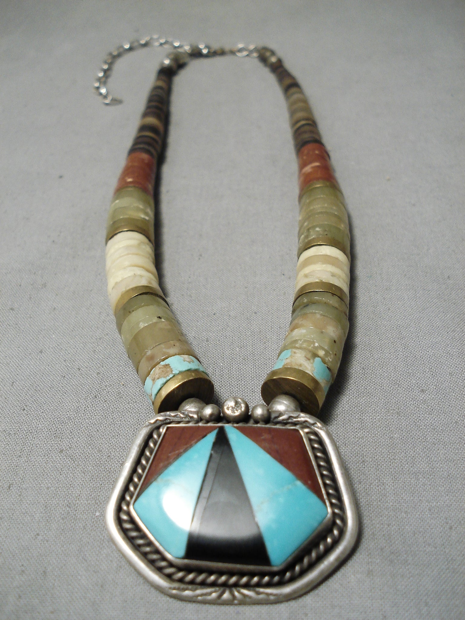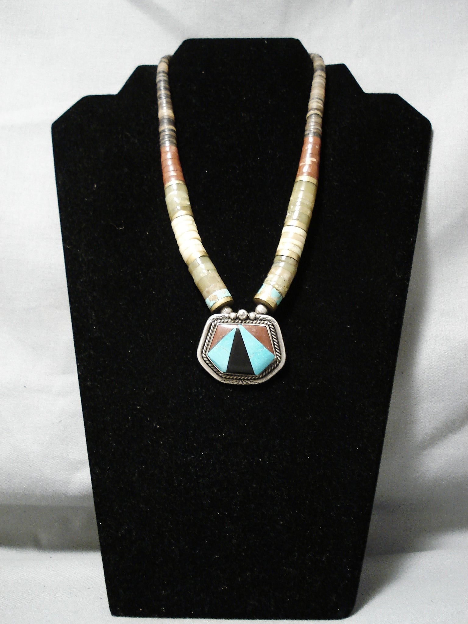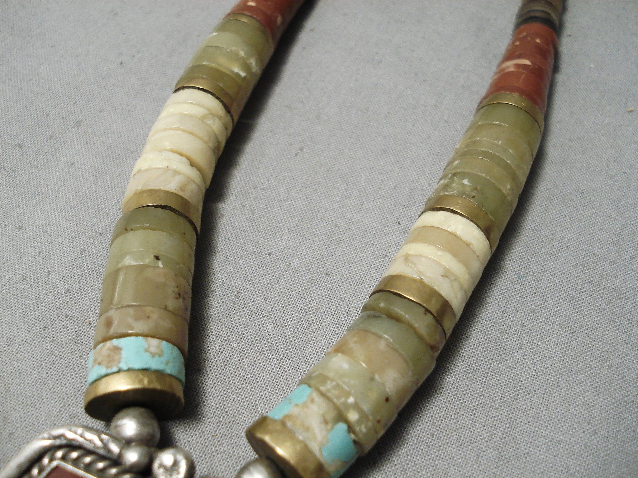 Native American Rare Authentic Vintage Santo Domingo Turquoise Heishi Sterling Silver Necklace