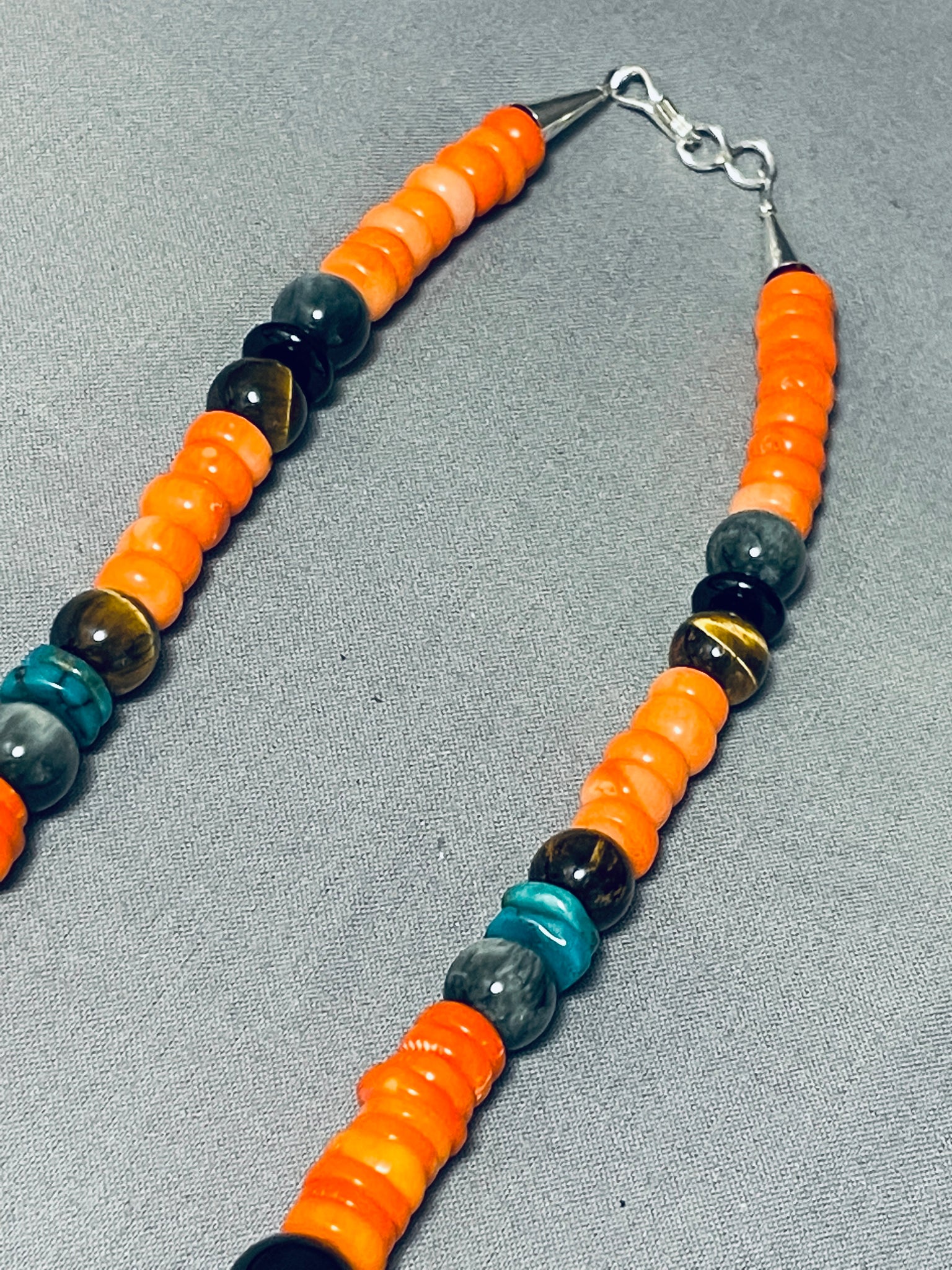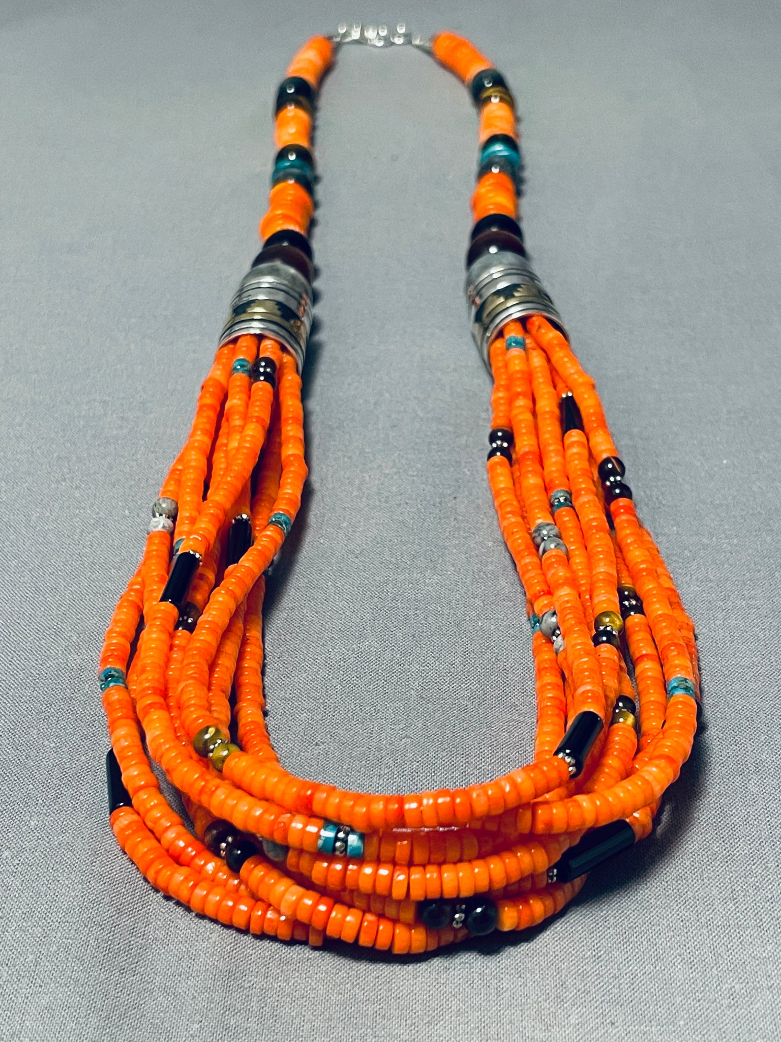 Native American Rare Orange Coral Authentic Singer Turquoise Sterling Silver Necklace