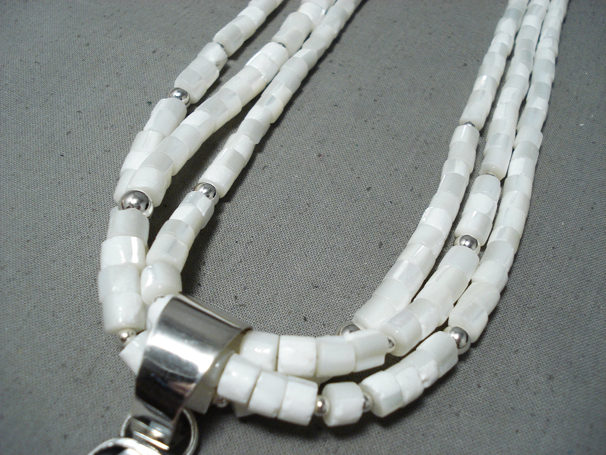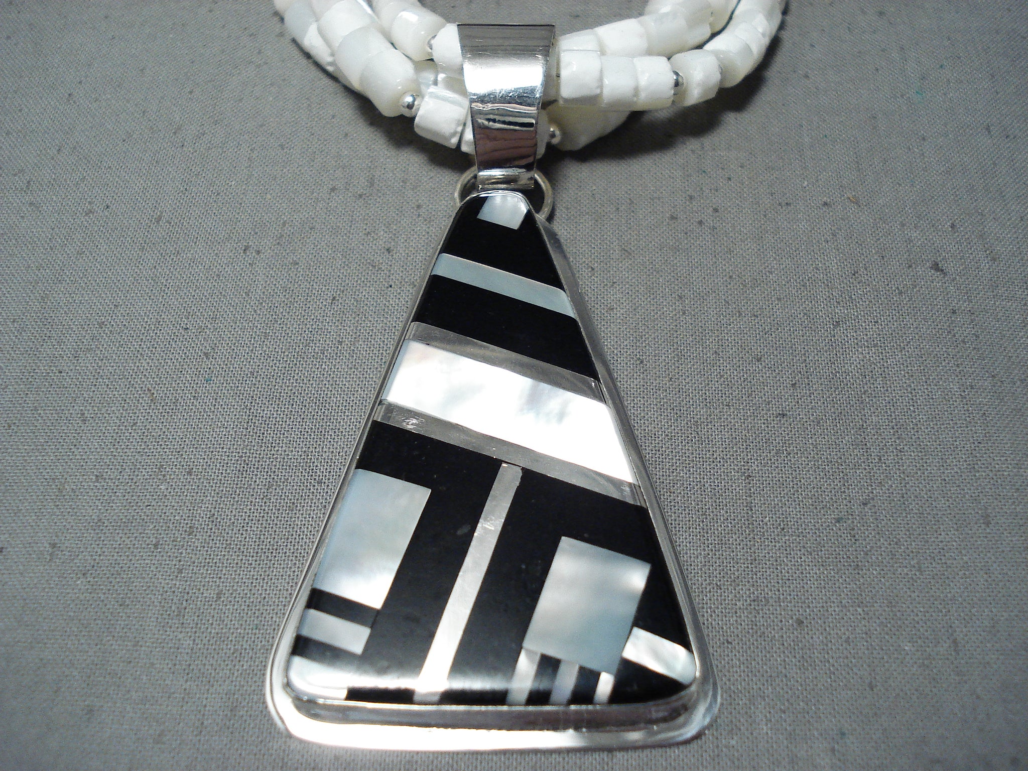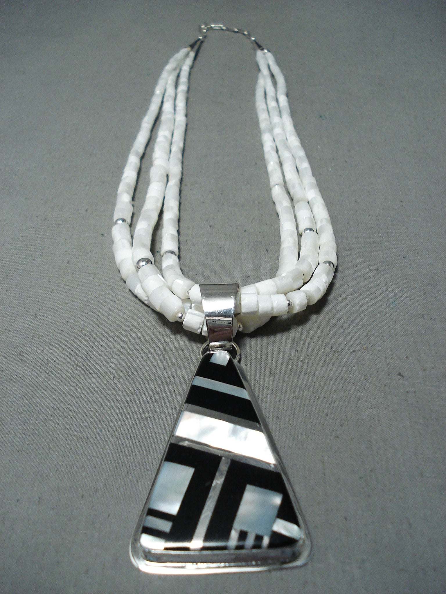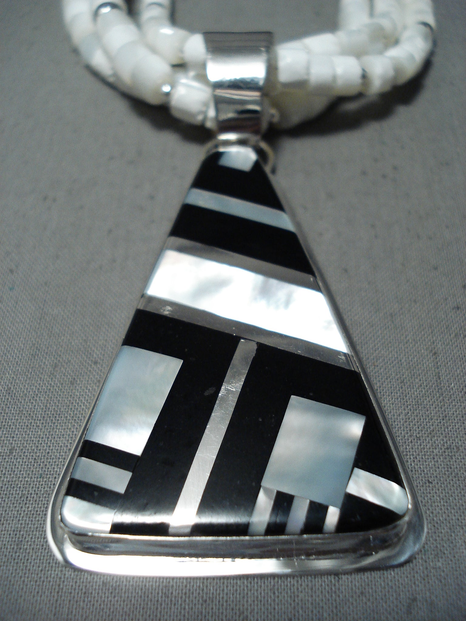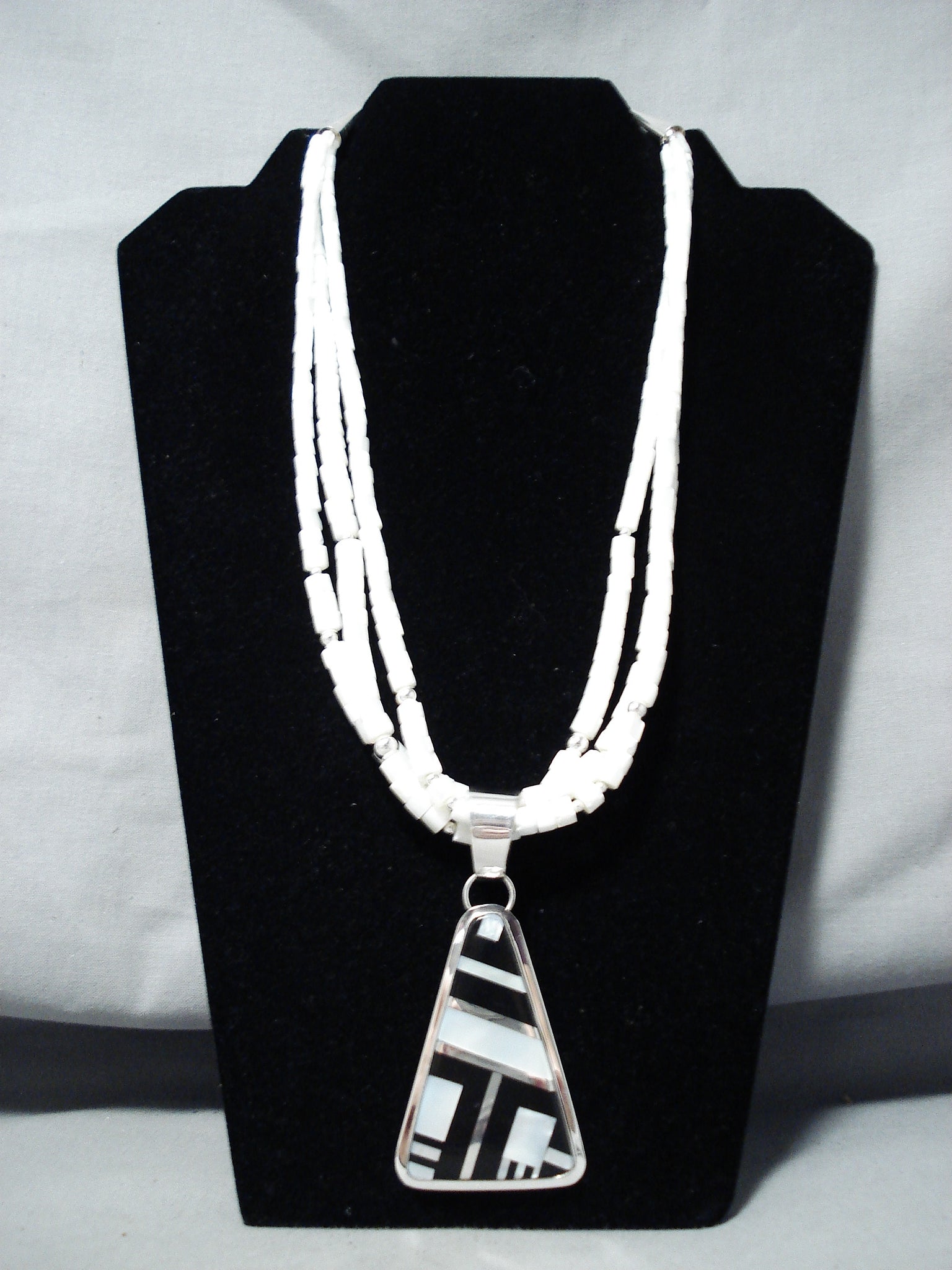 Native American Rare Santo Domingo Black & White Sterling Silver Necklace