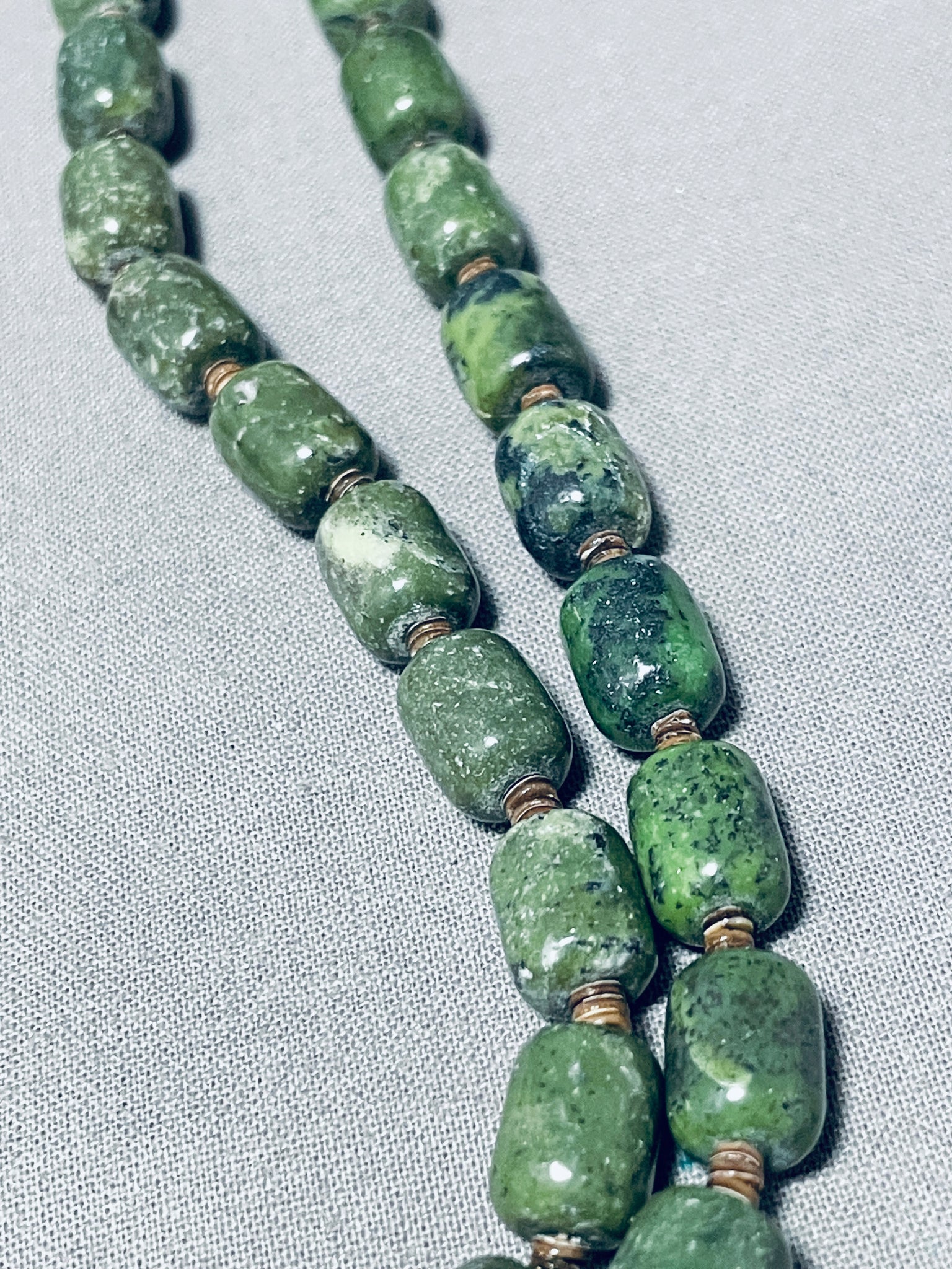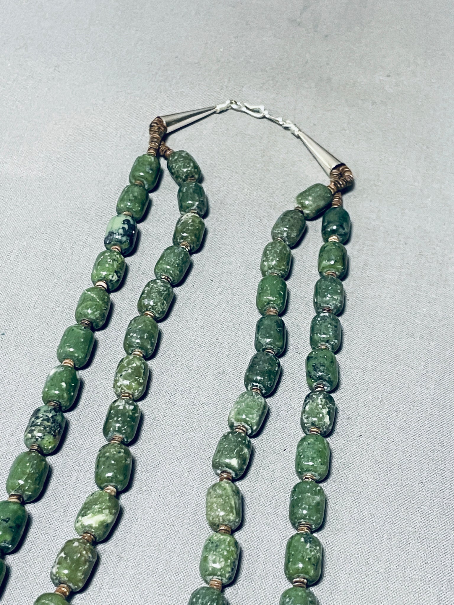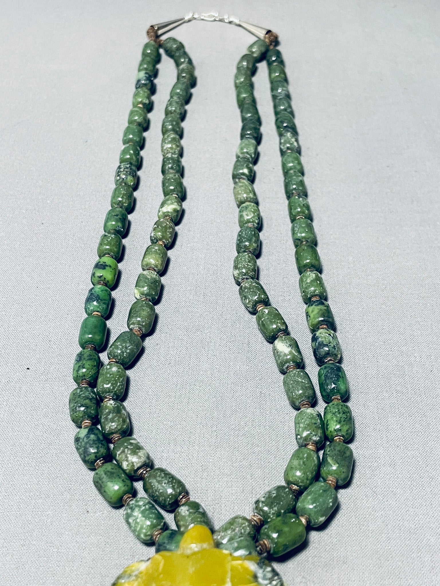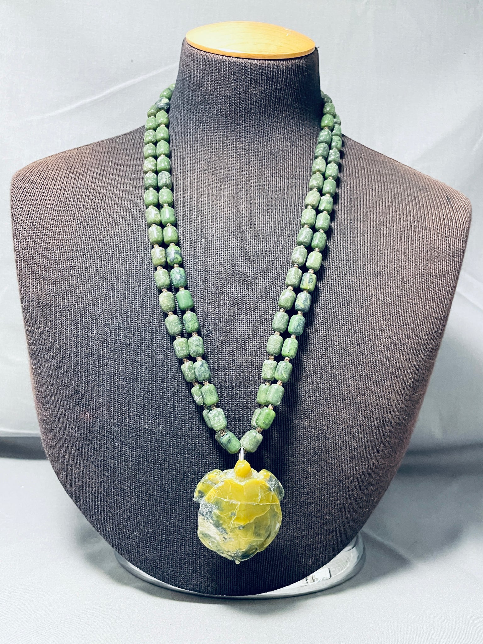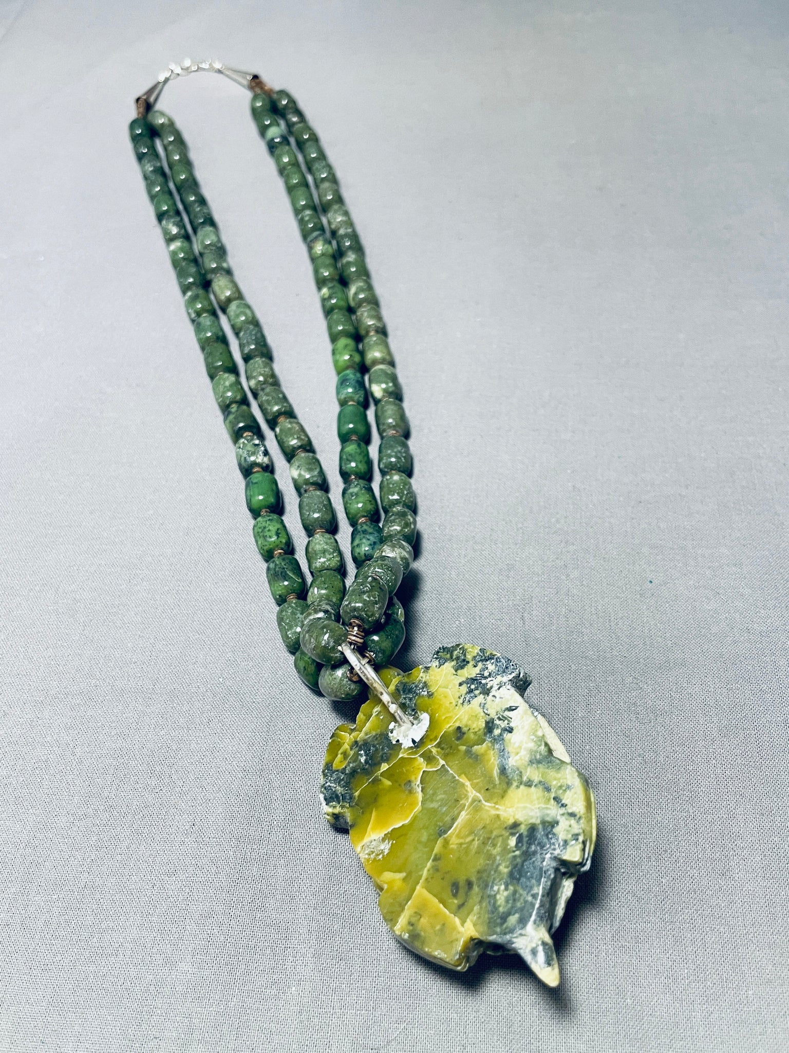 Native American Rare Santo Domingo Signed Green Turquoise Turtle Sterling Silver Necklace