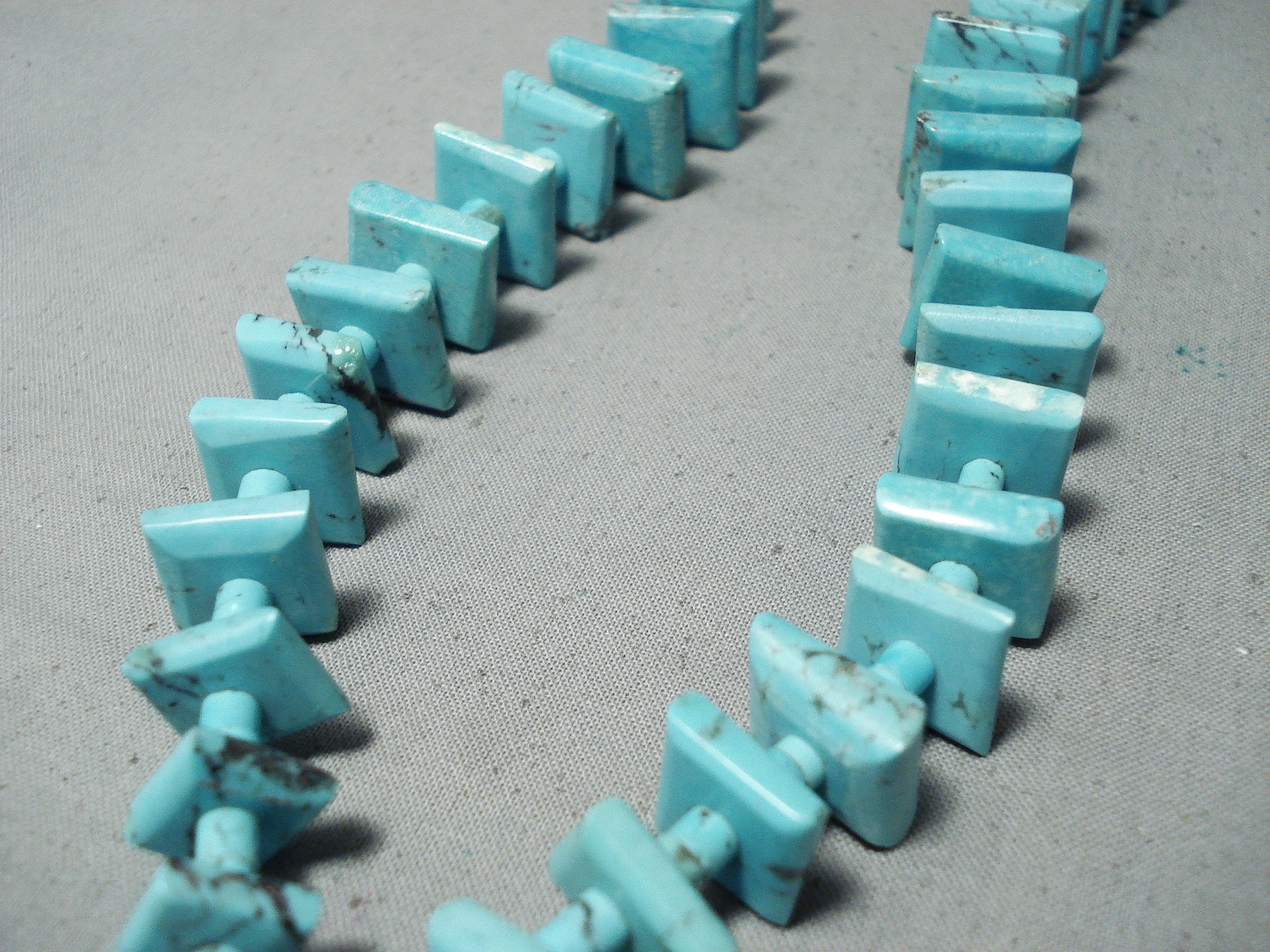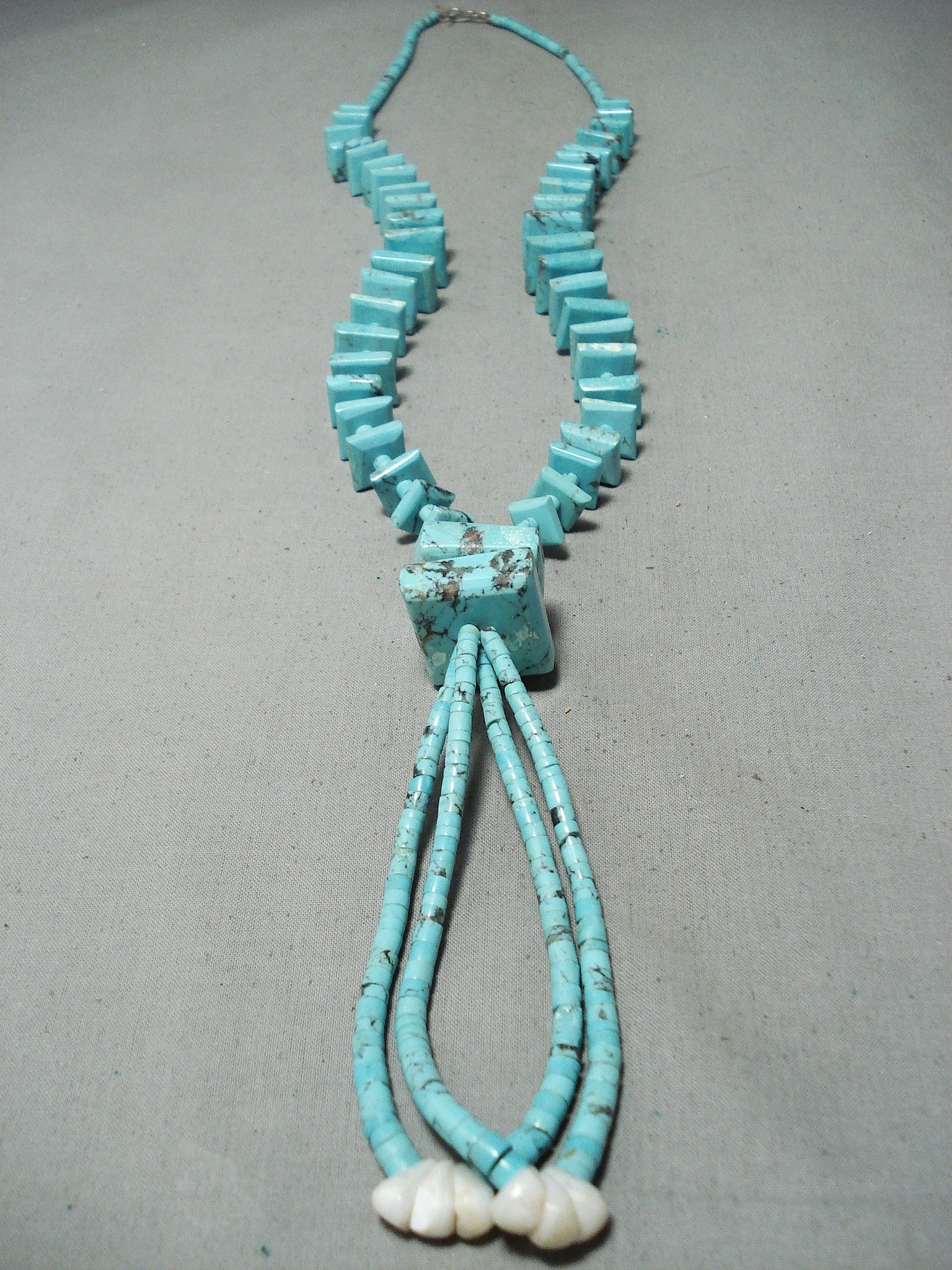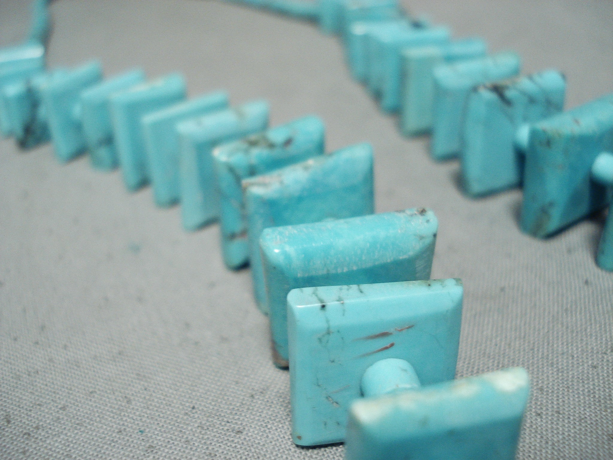 Native American Rare Vintage Santo Domingo Squared Turquoise Sterling Silver Necklace