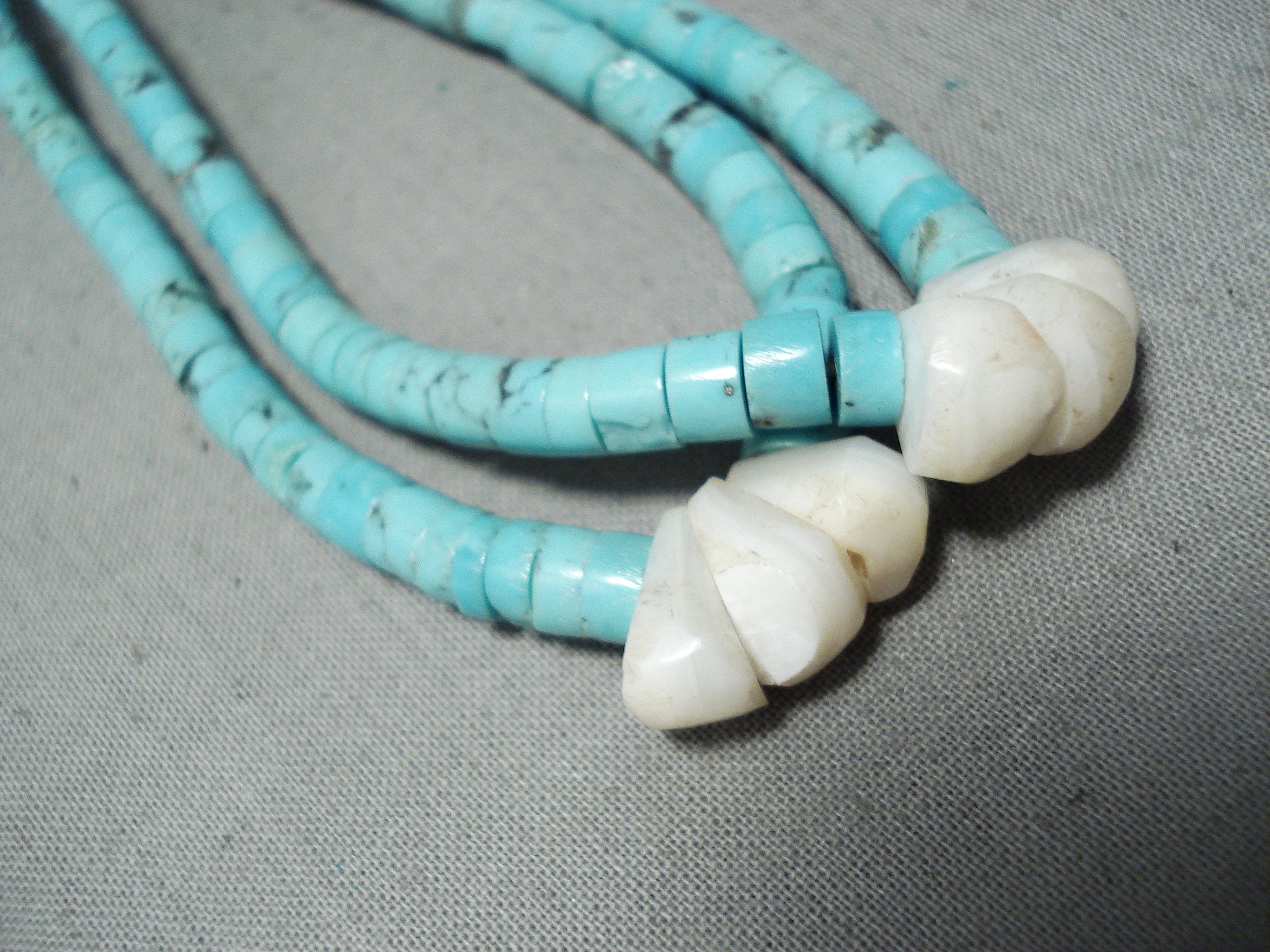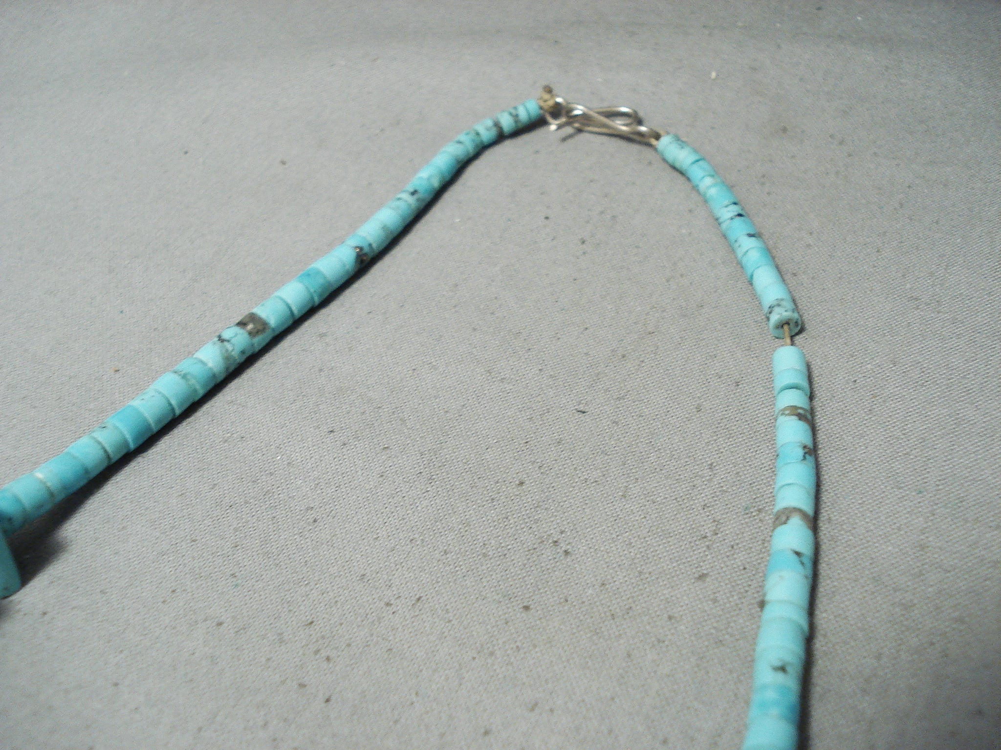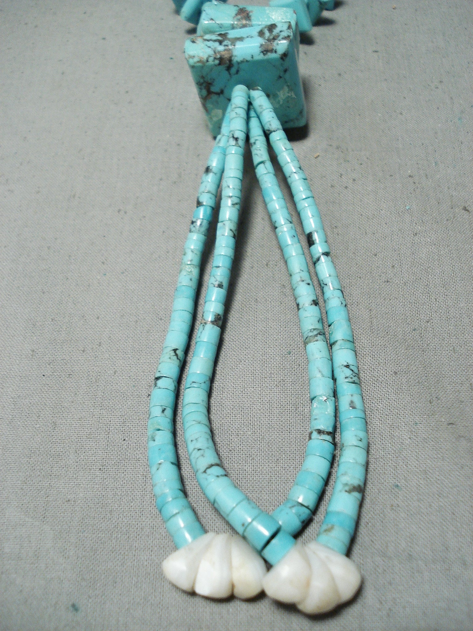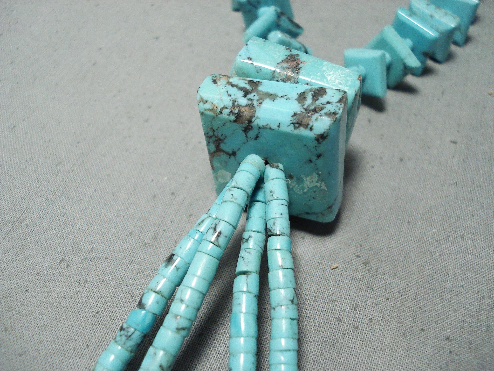 Native American Rare Vintage Santo Domingo Squared Turquoise Sterling Silver Necklace