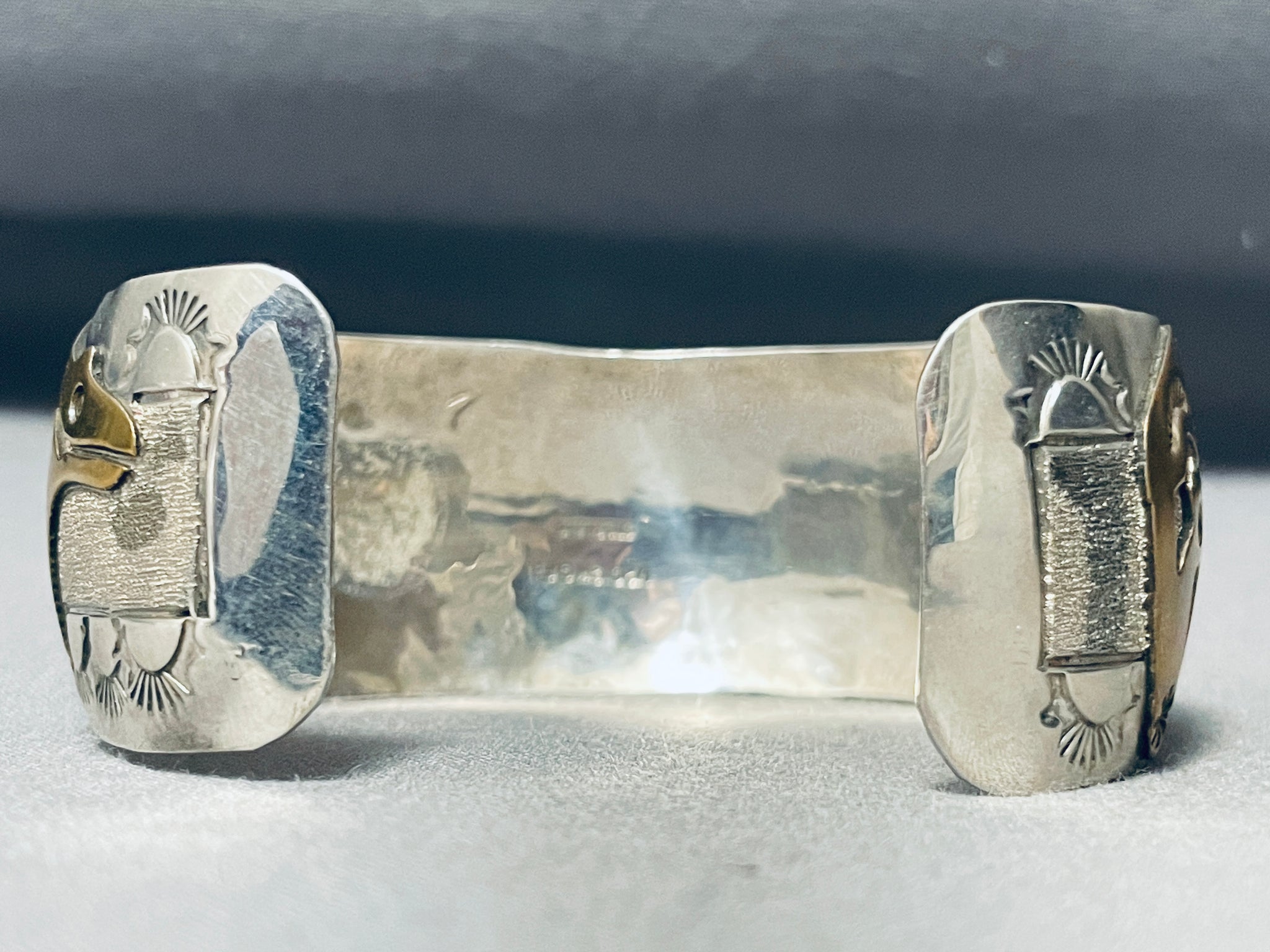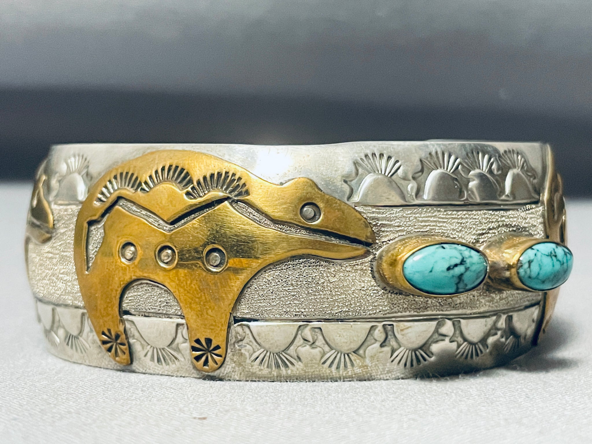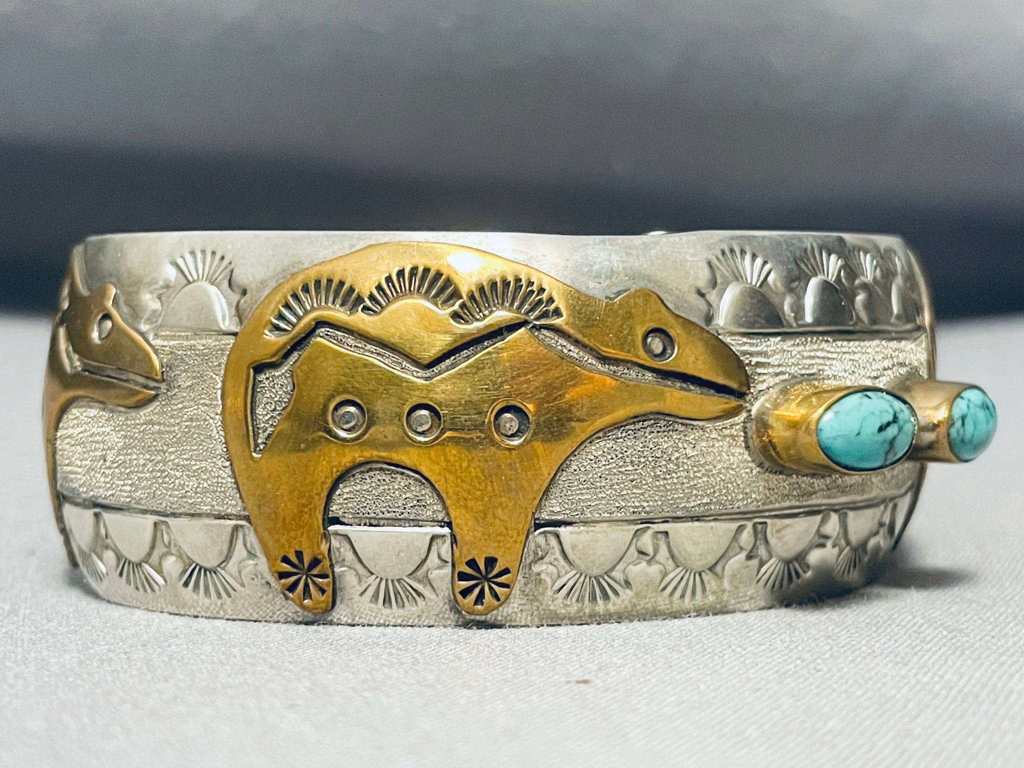Native American Signed Turquoise Bear Sterling Silver Brass Bear Bracelet