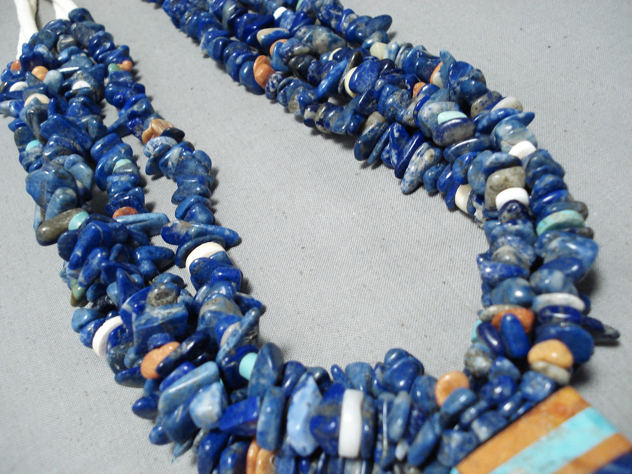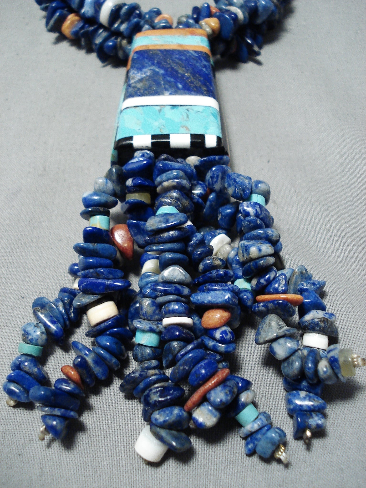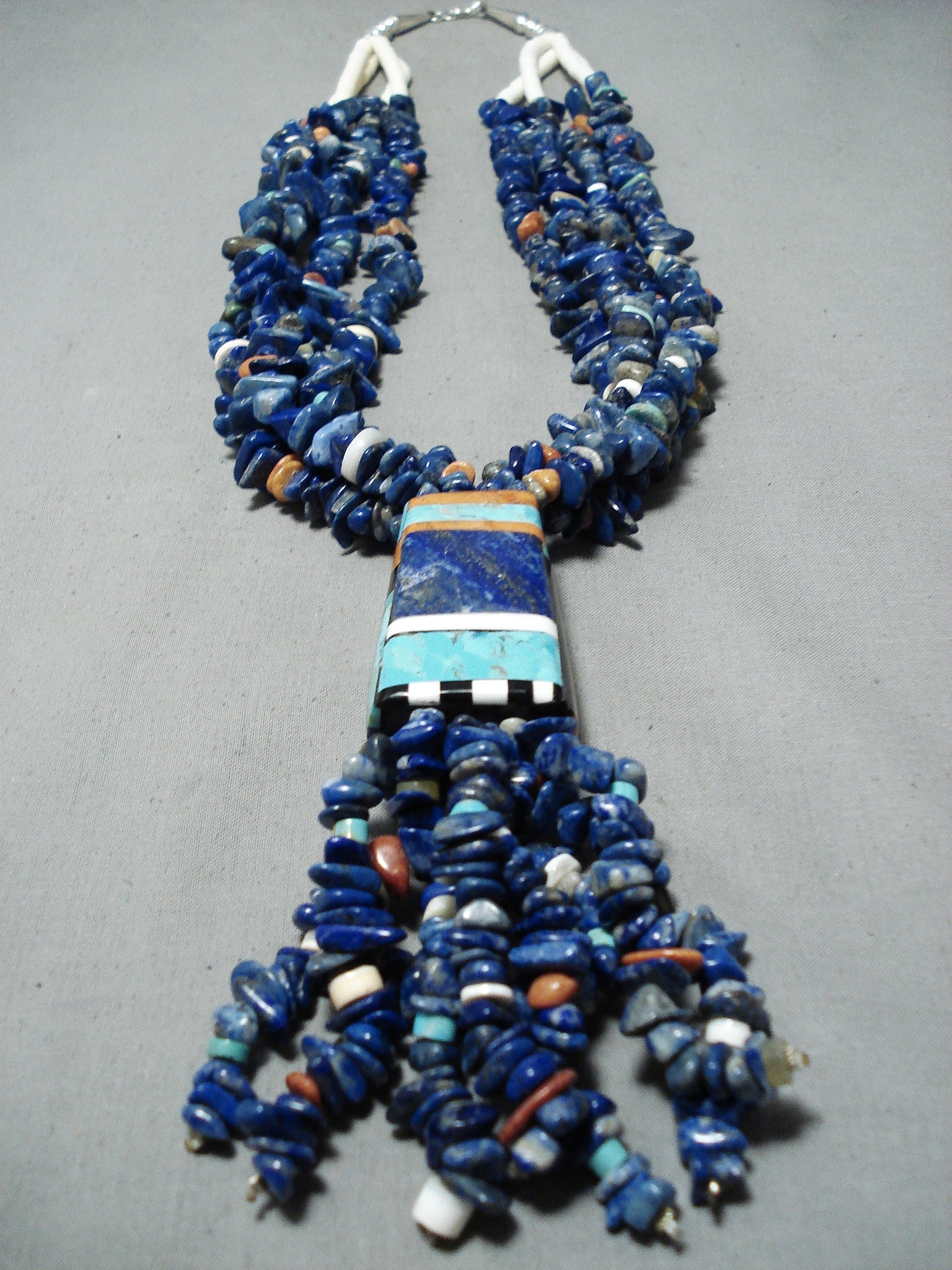 Native American Spectacular Santo Domingo Lapis Sterling Silver Necklace Old