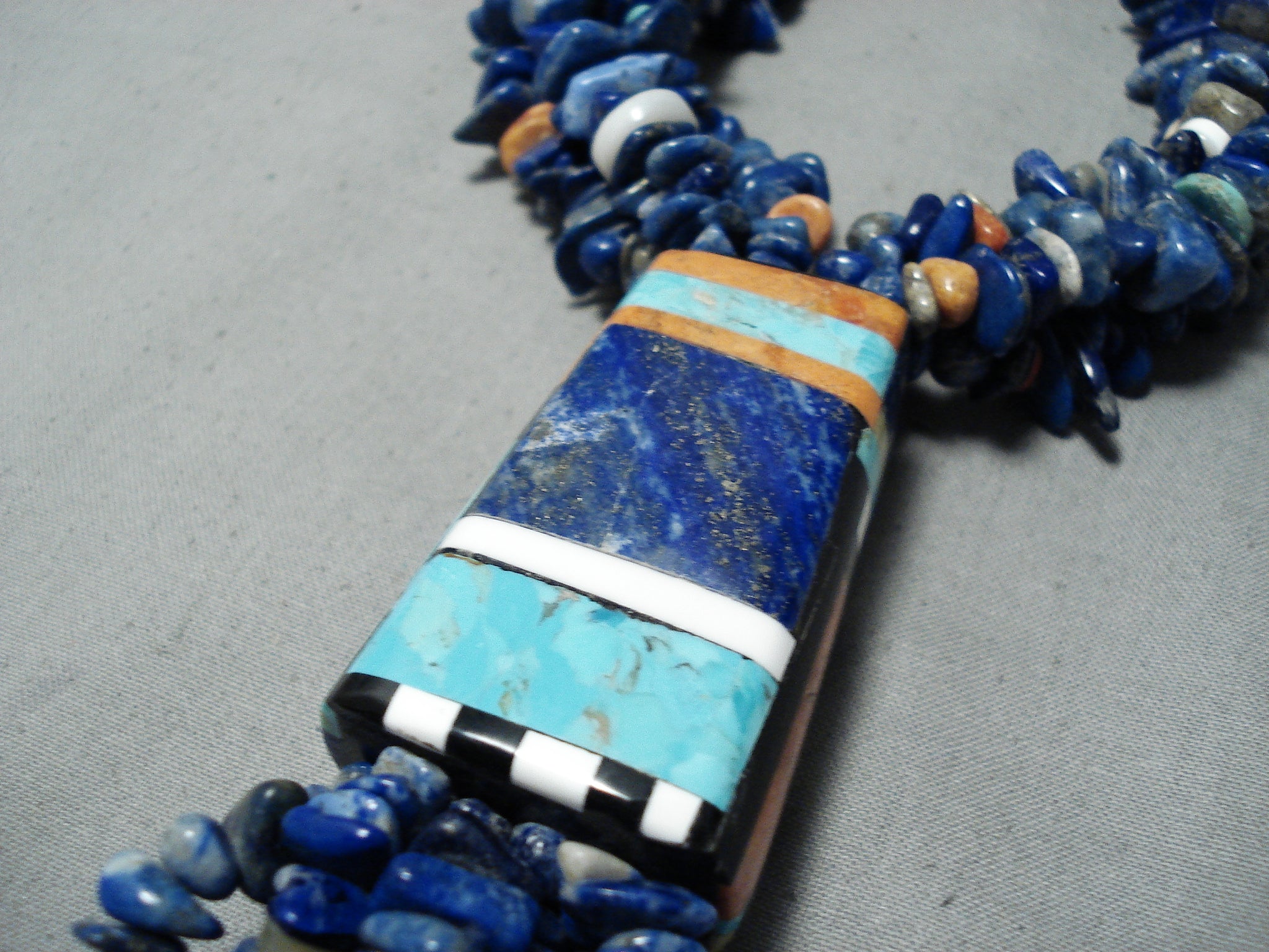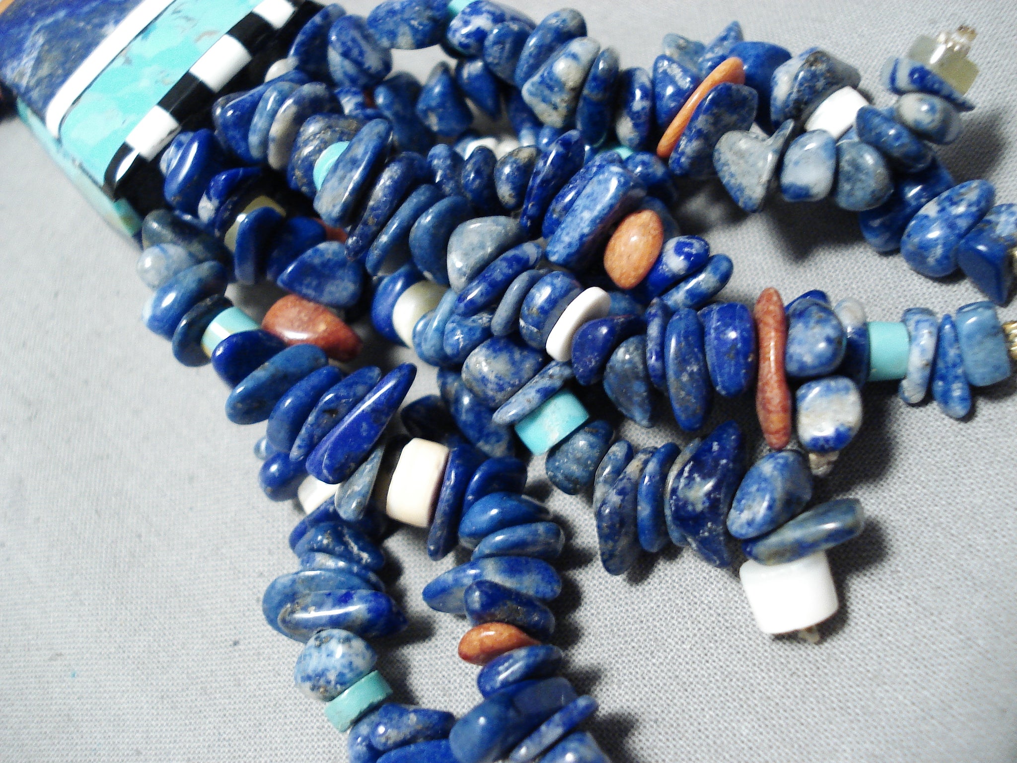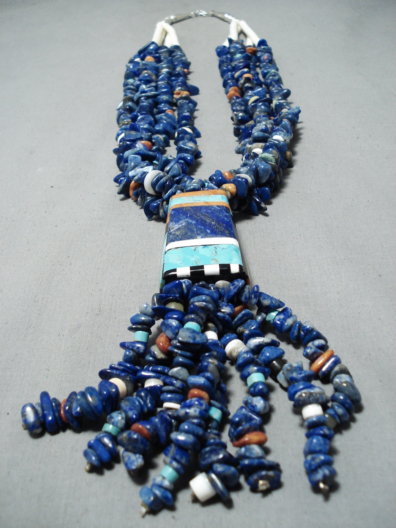 Native American Spectacular Santo Domingo Lapis Sterling Silver Necklace Old
