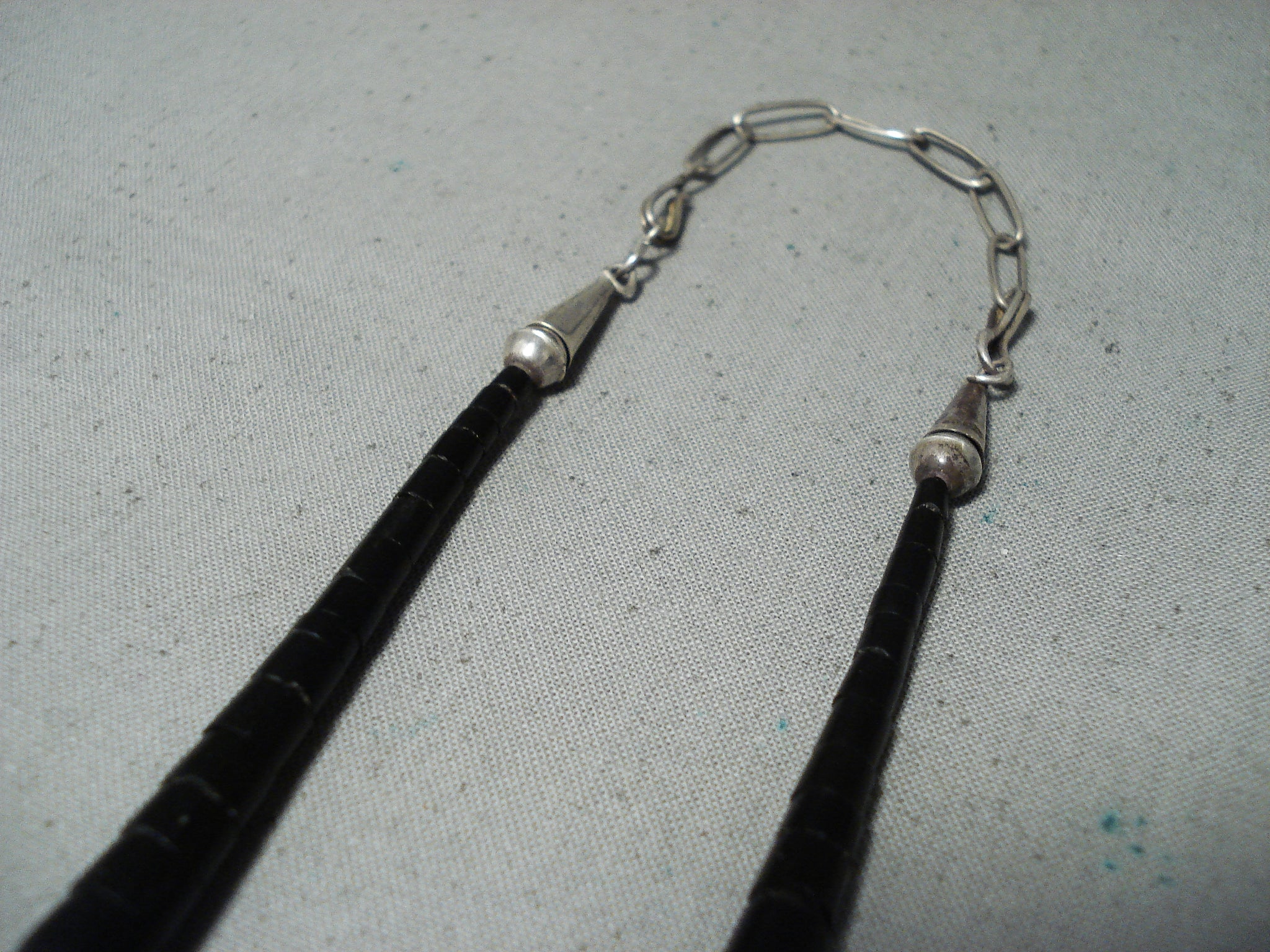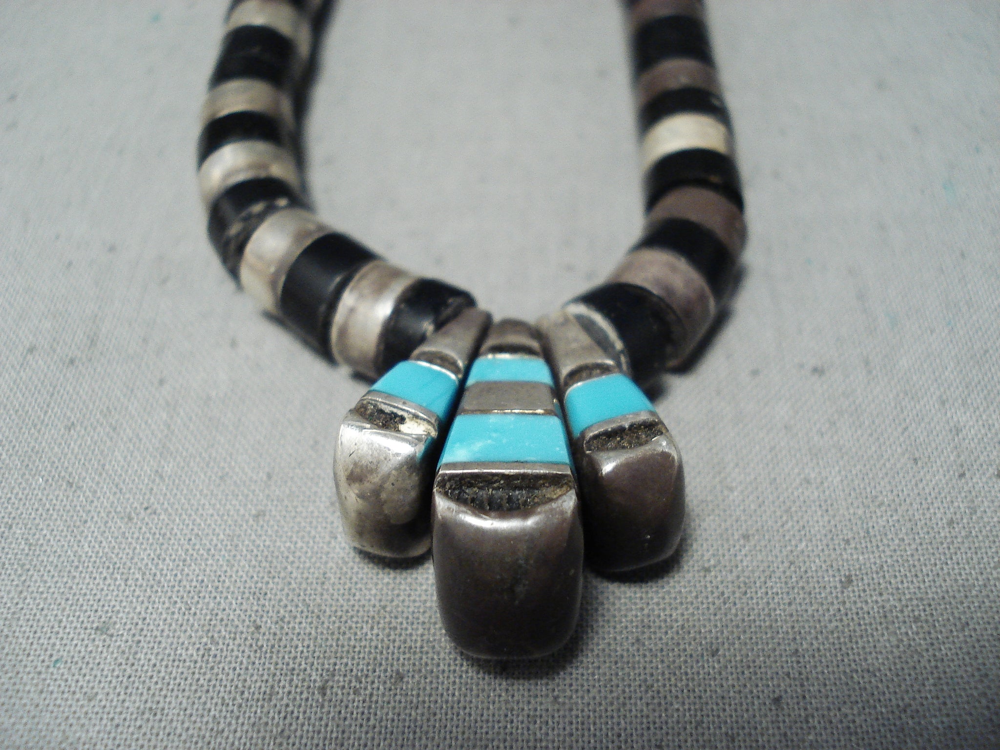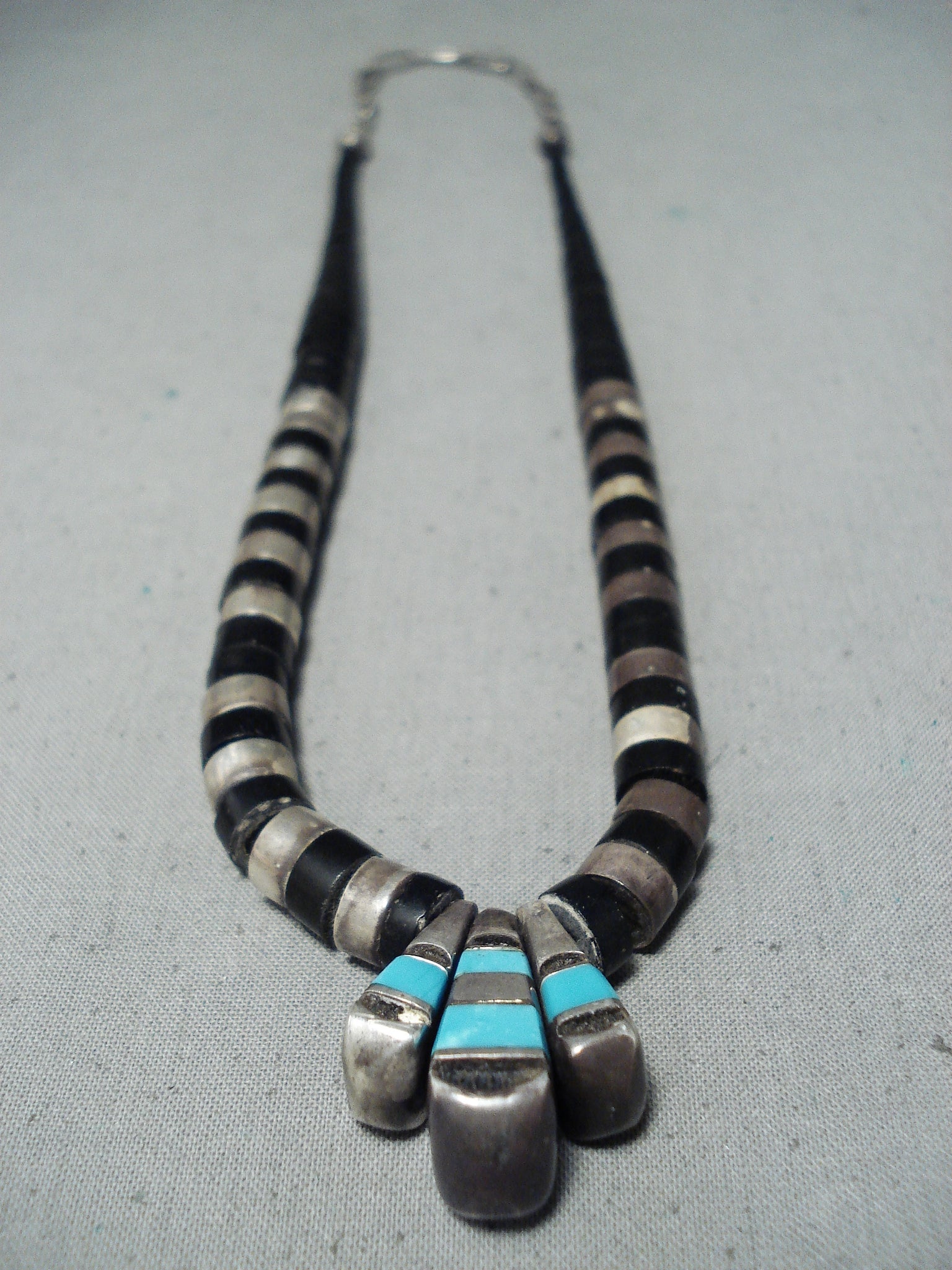 Native American Spectacular Vintage Santo Domingo Turquoise Jet Sterling Silver Necklace