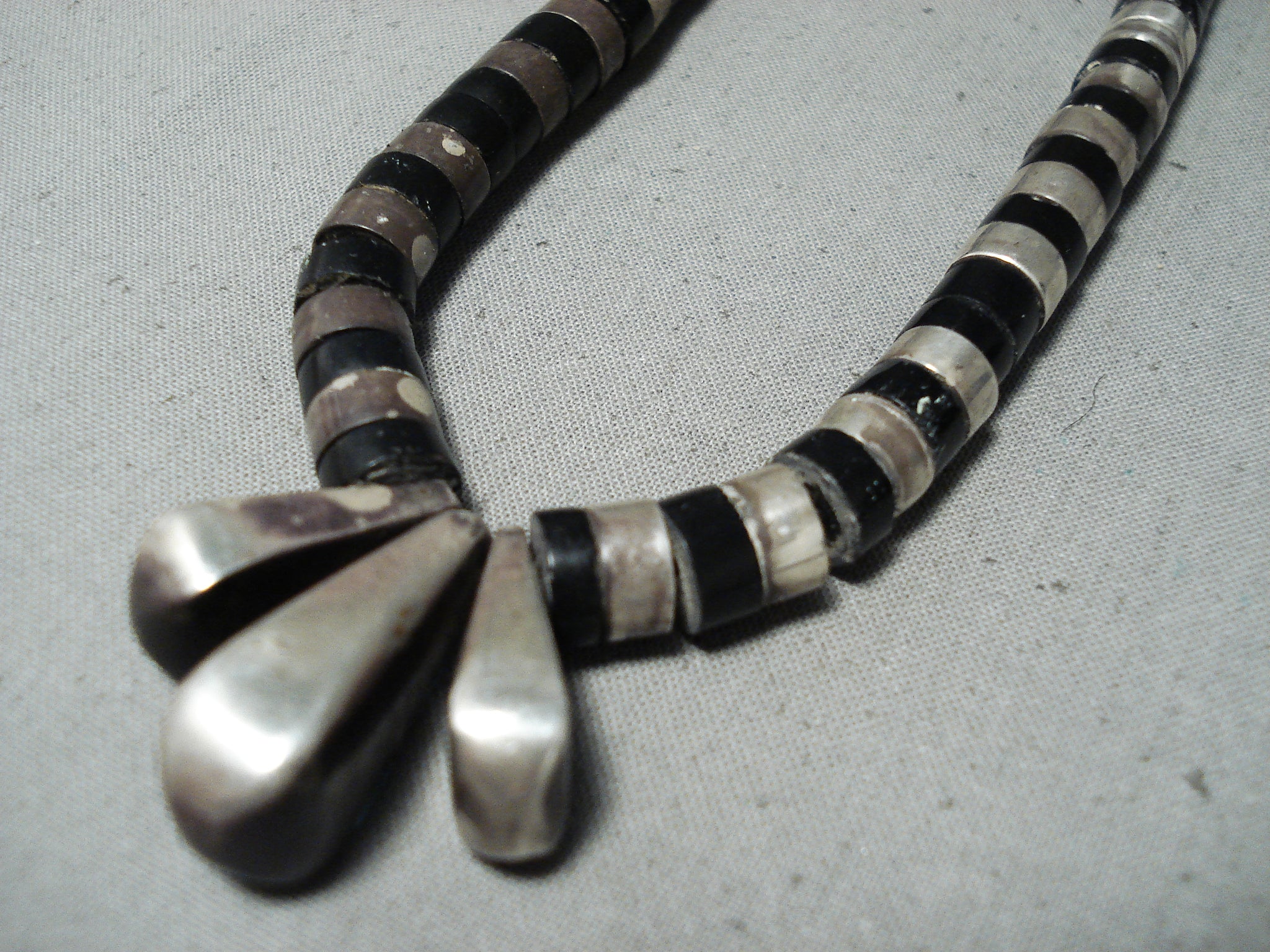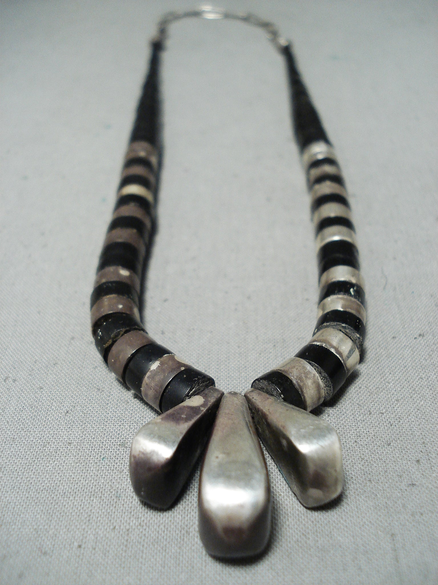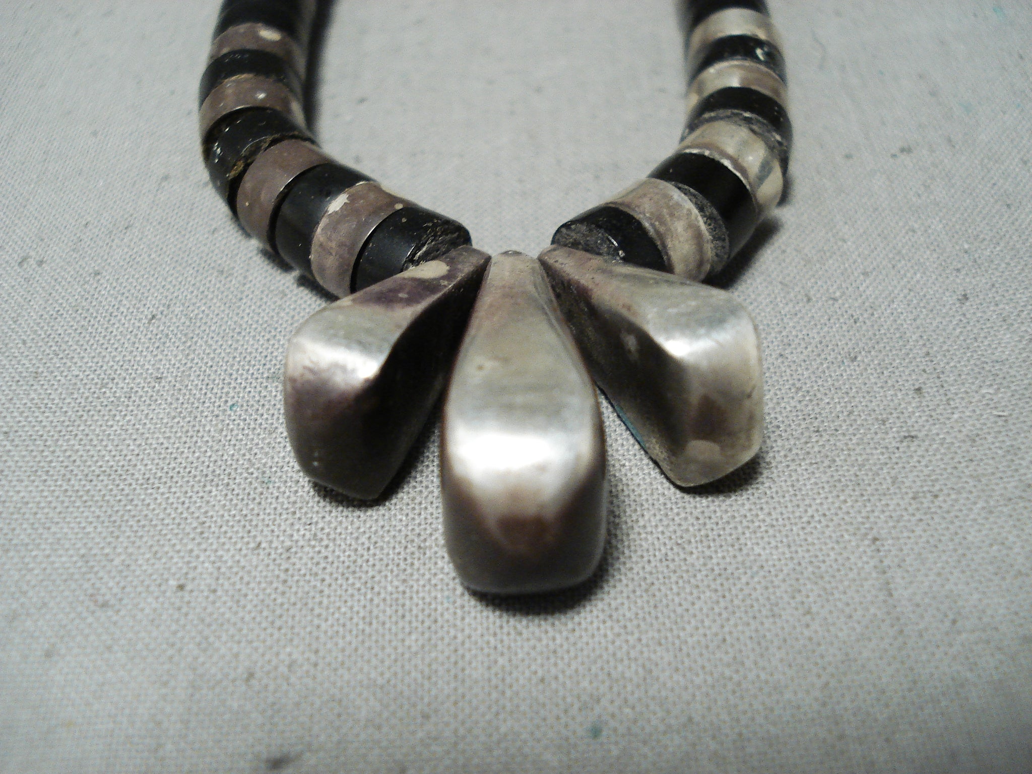Native American Spectacular Vintage Santo Domingo Turquoise Jet Sterling Silver Necklace