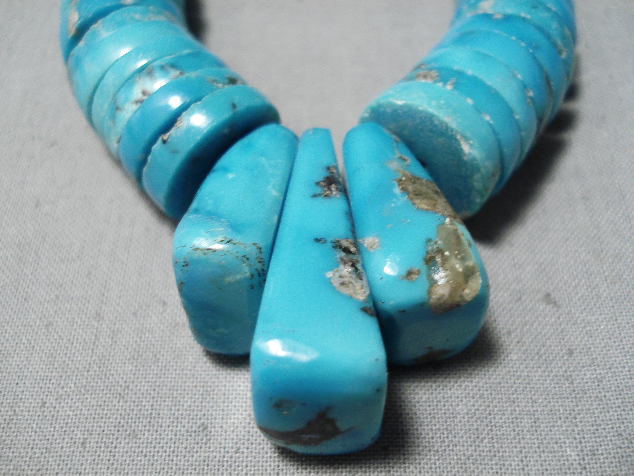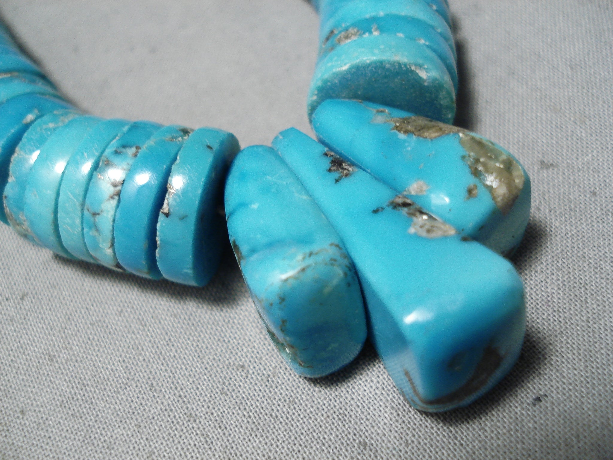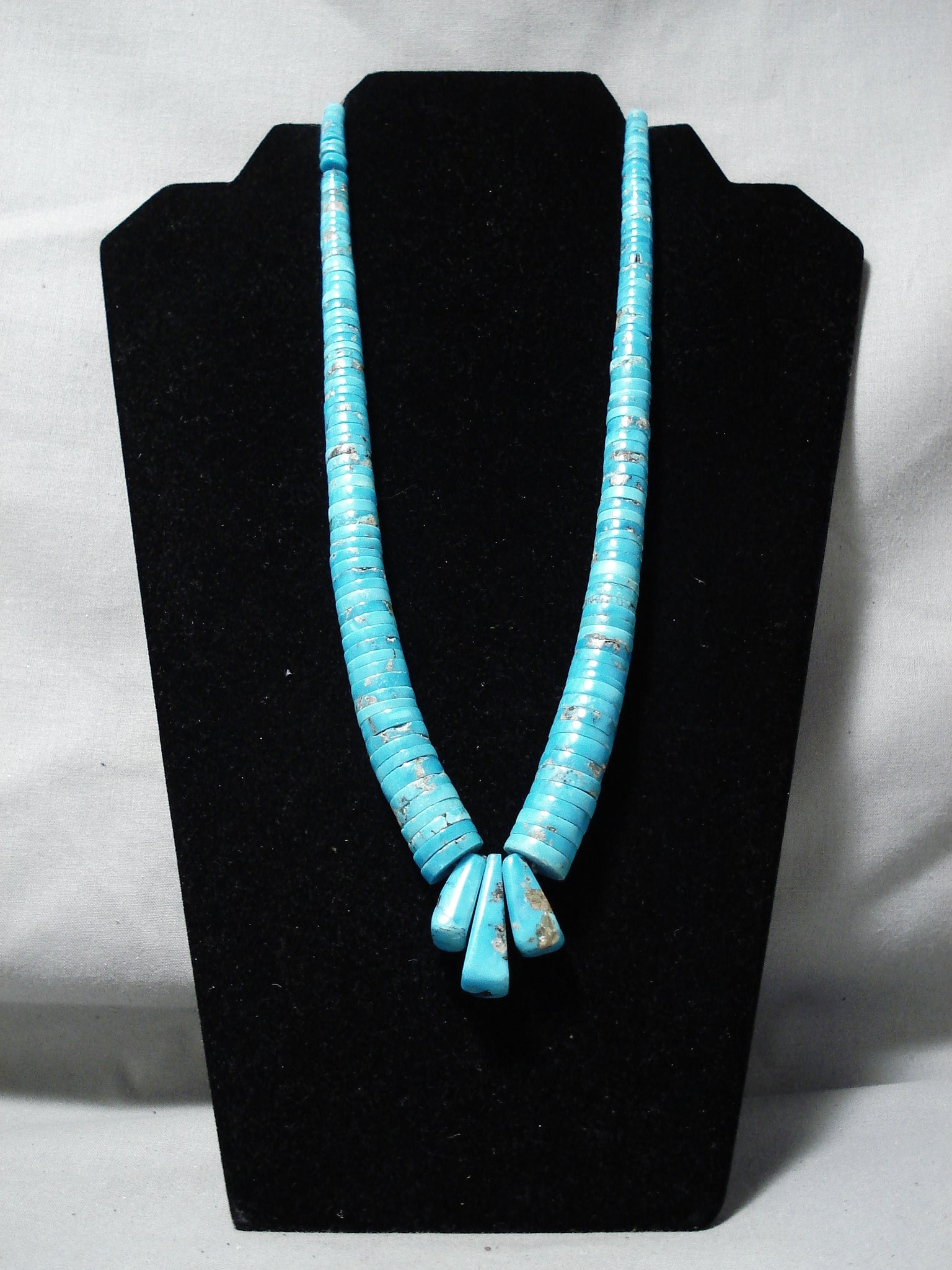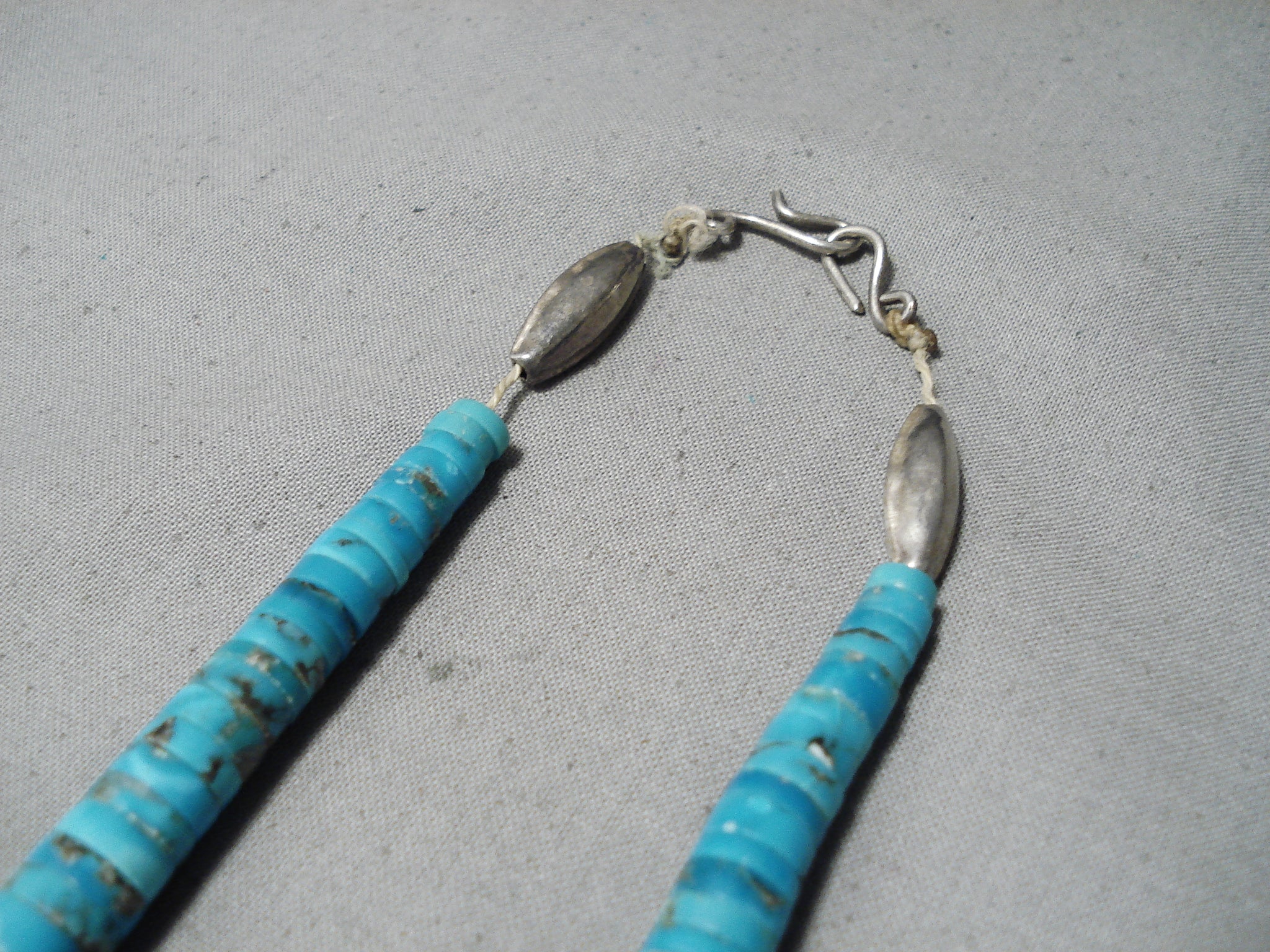 Native American Striking Vintage Santo Domingo Turquoise Sterling Silver Necklace Old