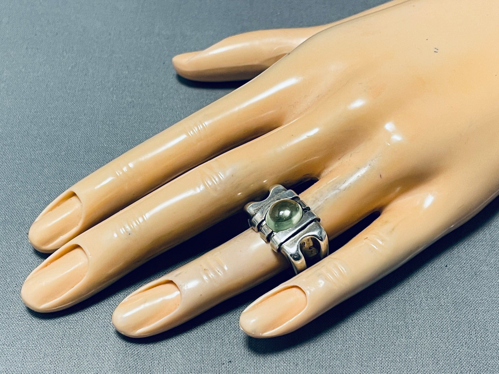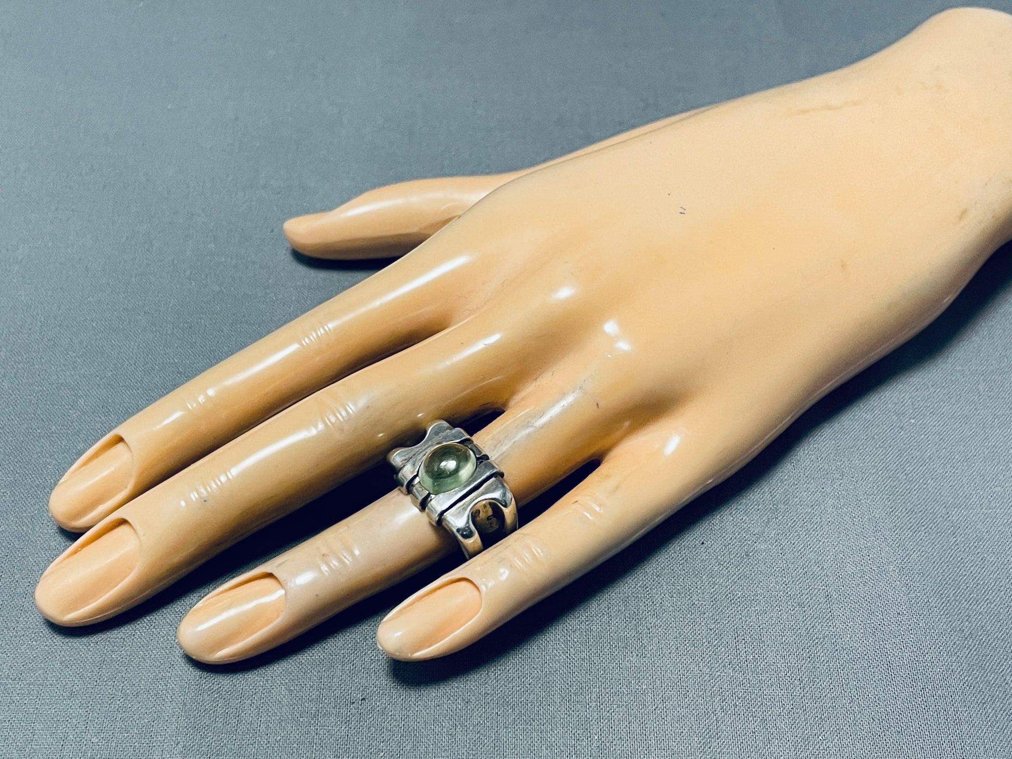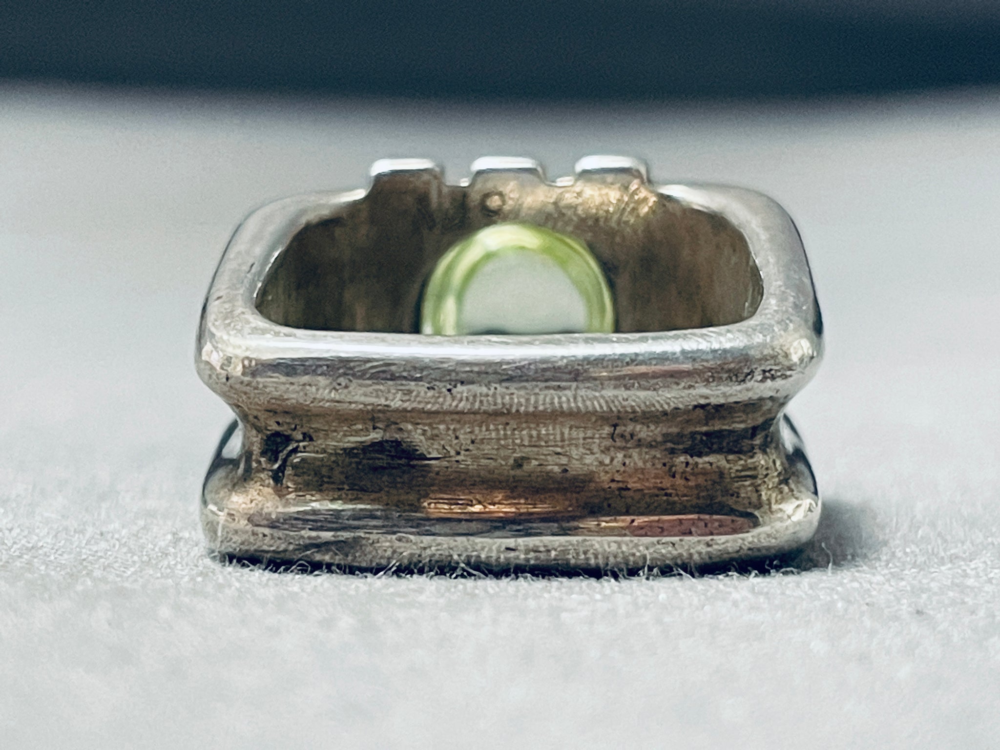 Native American Stunning Vintage Apache Peridot Sterling Silver Thick Heavy Ring