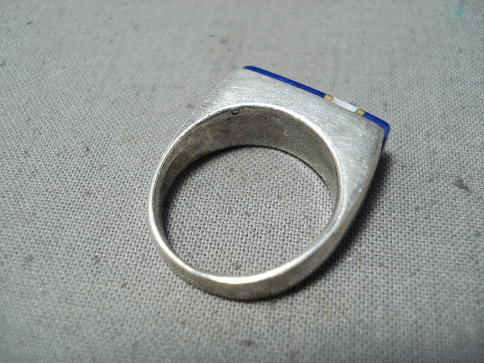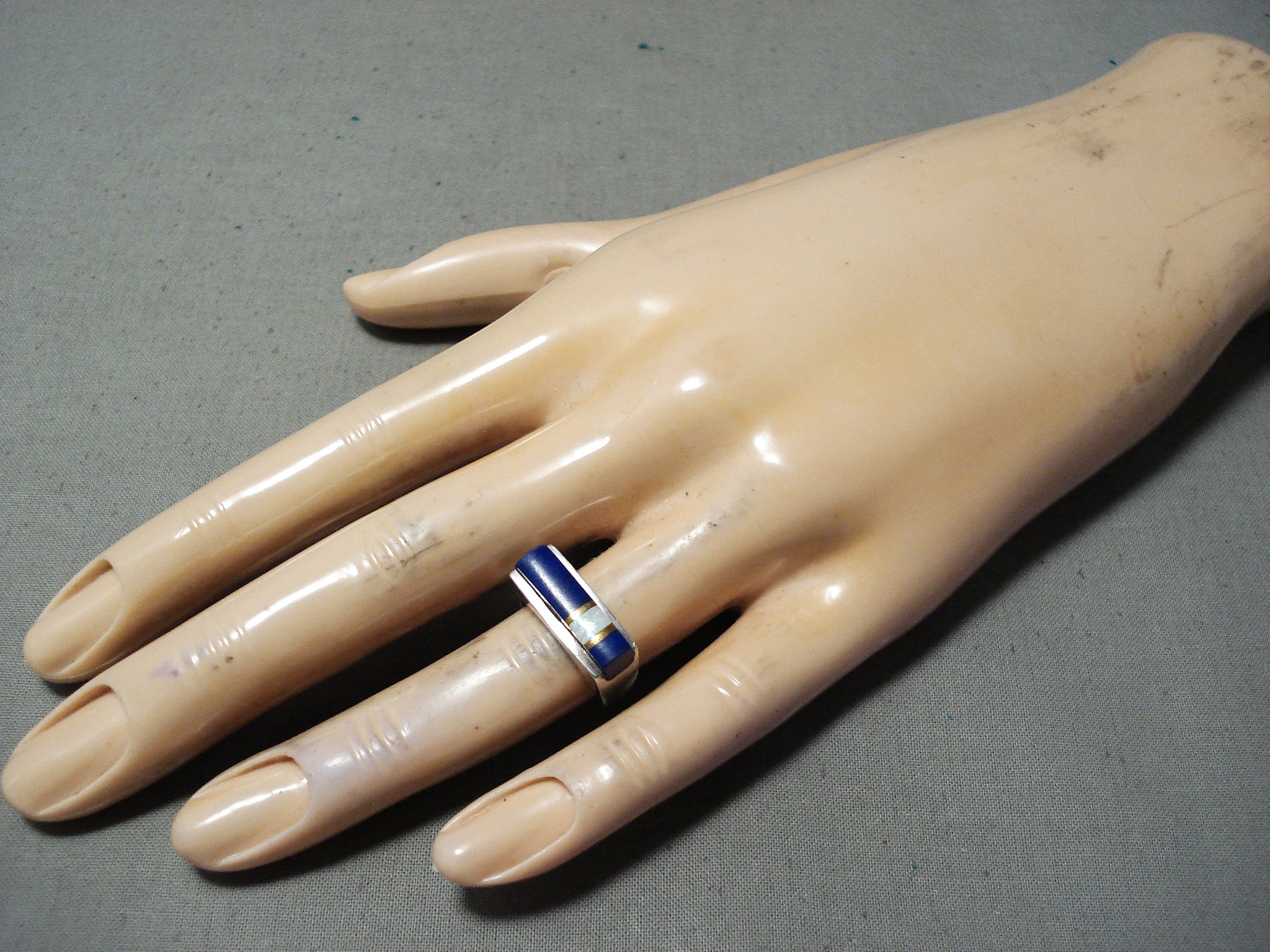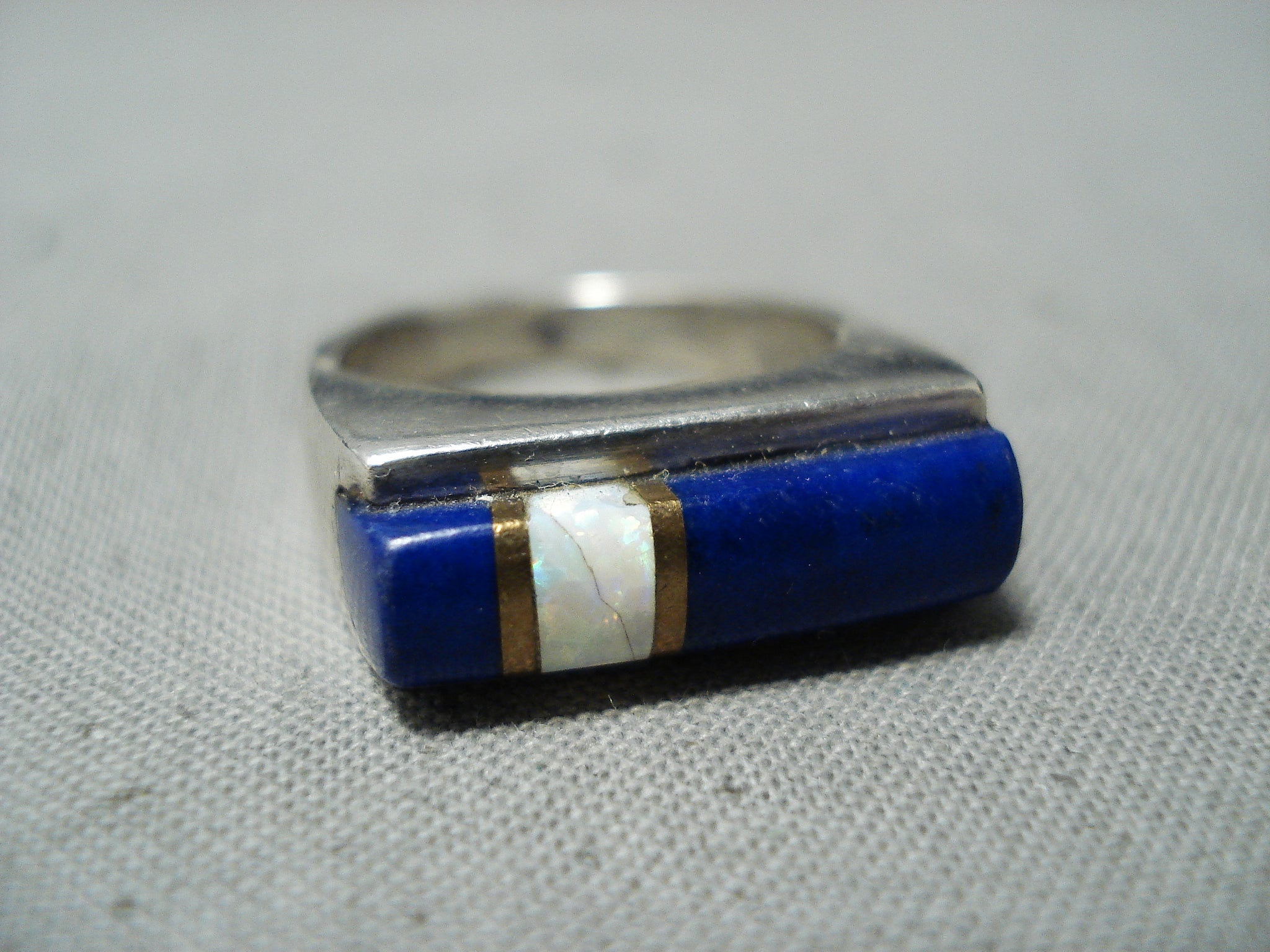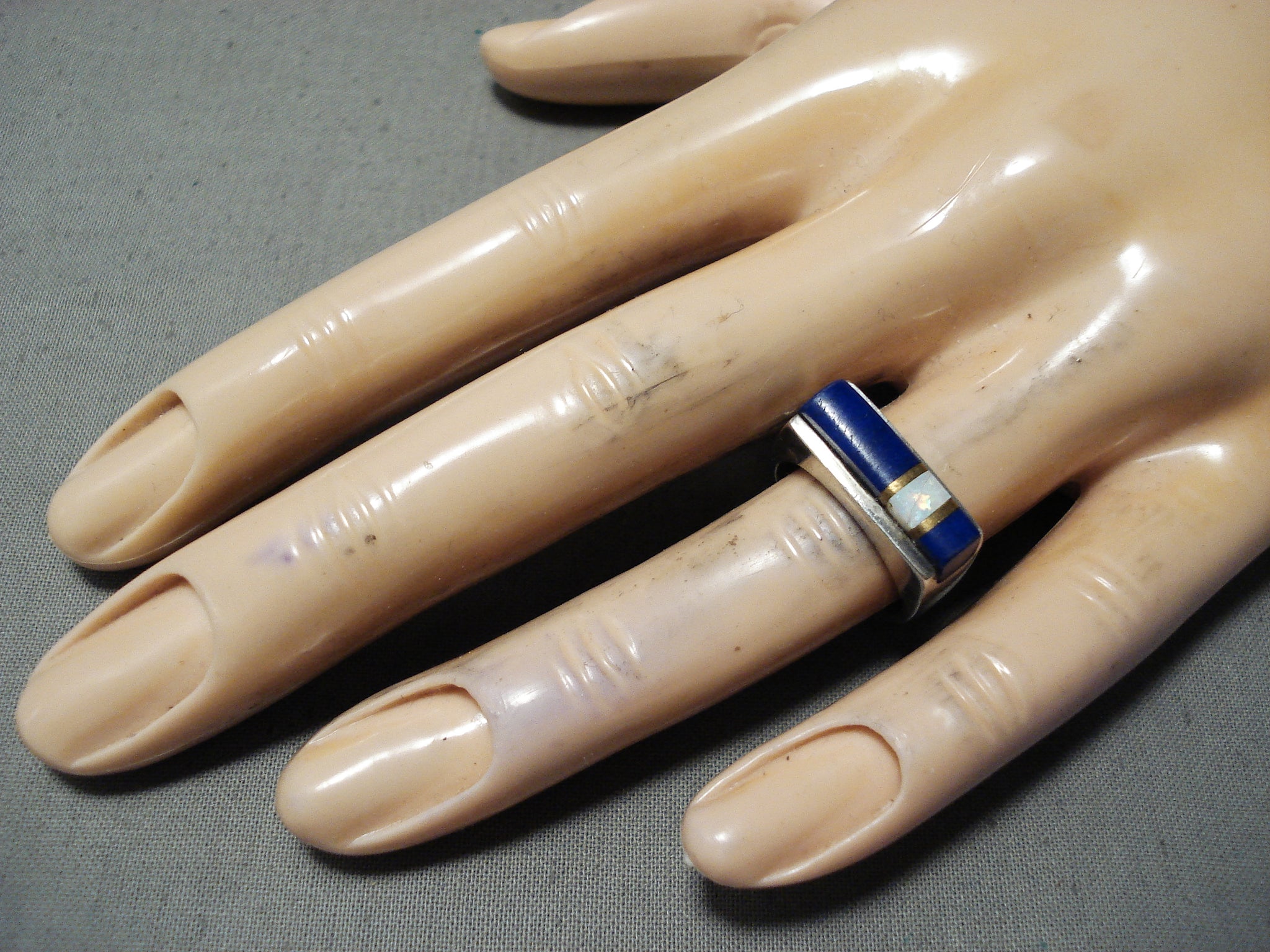 Native American Stunning Vintage Navaj Lapis Opal Sterling Silver Inlay Ring