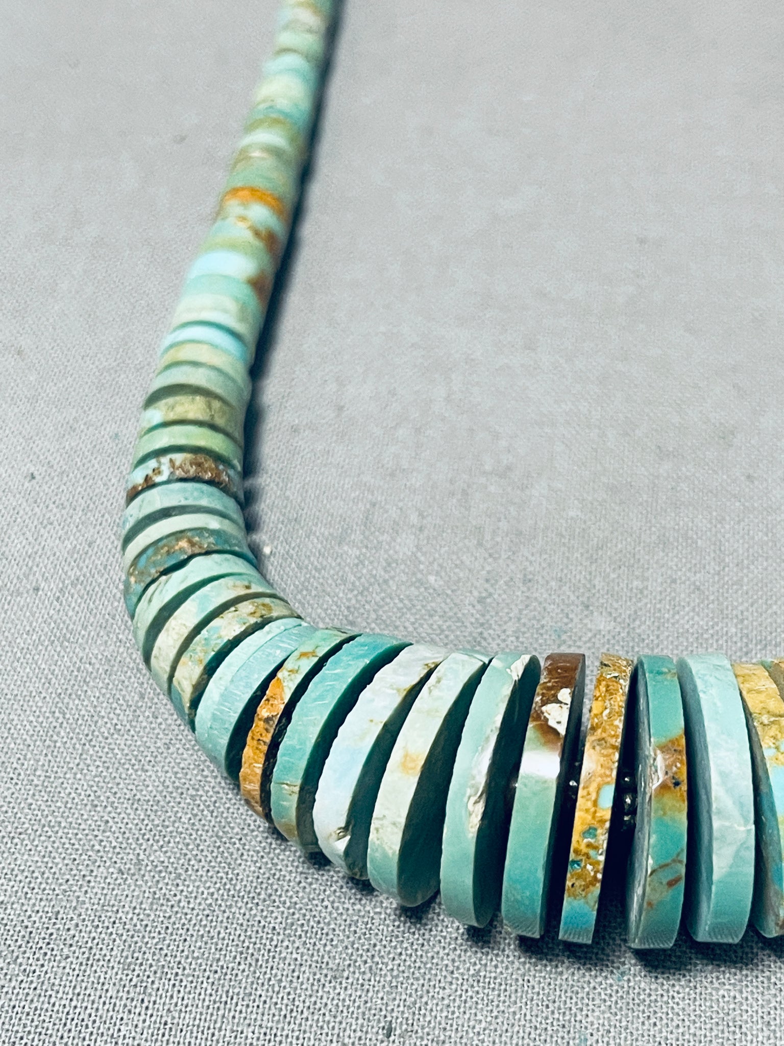 Native American Stunning Vintage Santo Domingo Handcut Turquoise Heishi Necklace