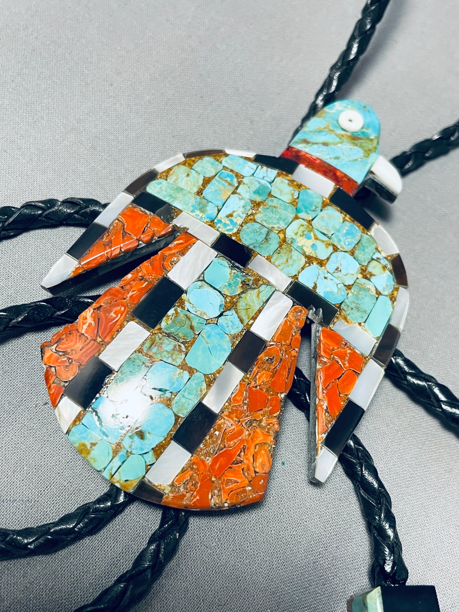 Native American Superior Santo Domingo Turquoise Sterling Silver Bolo