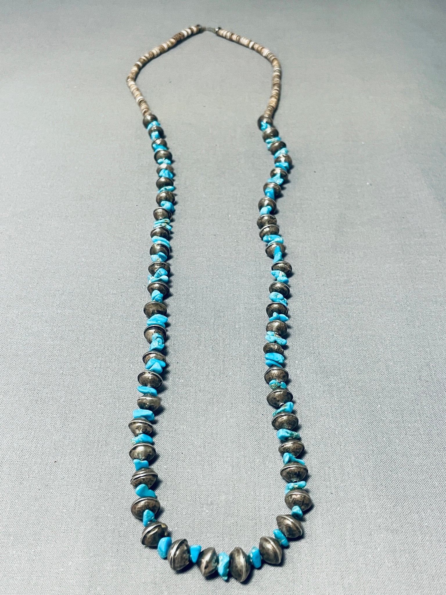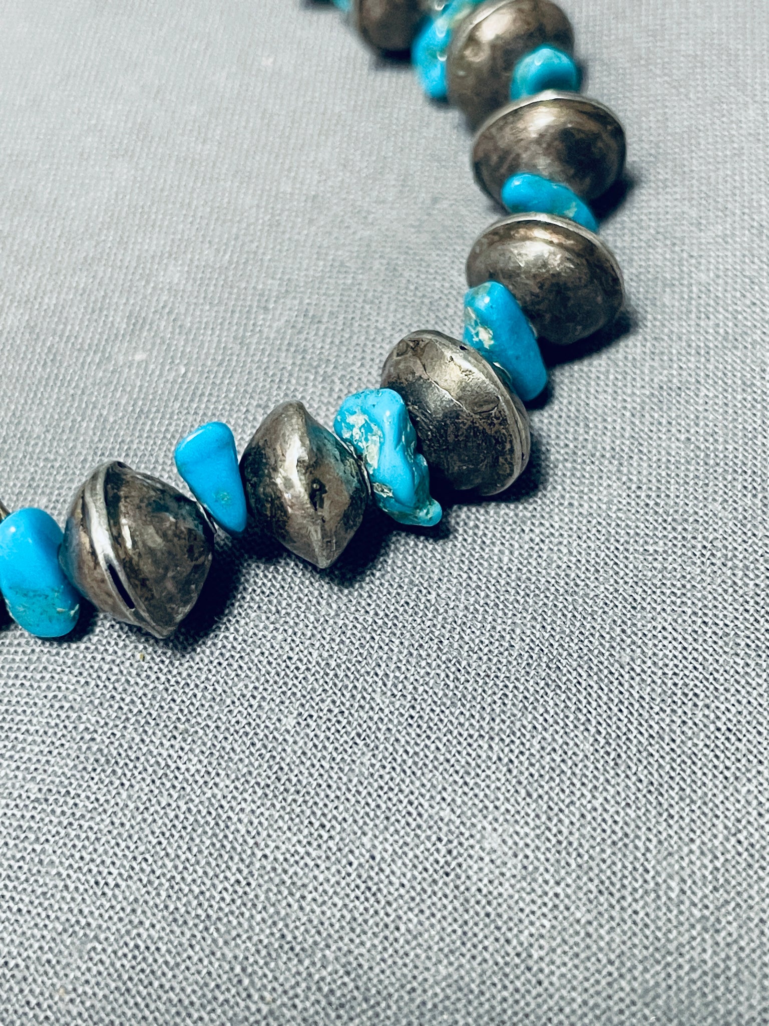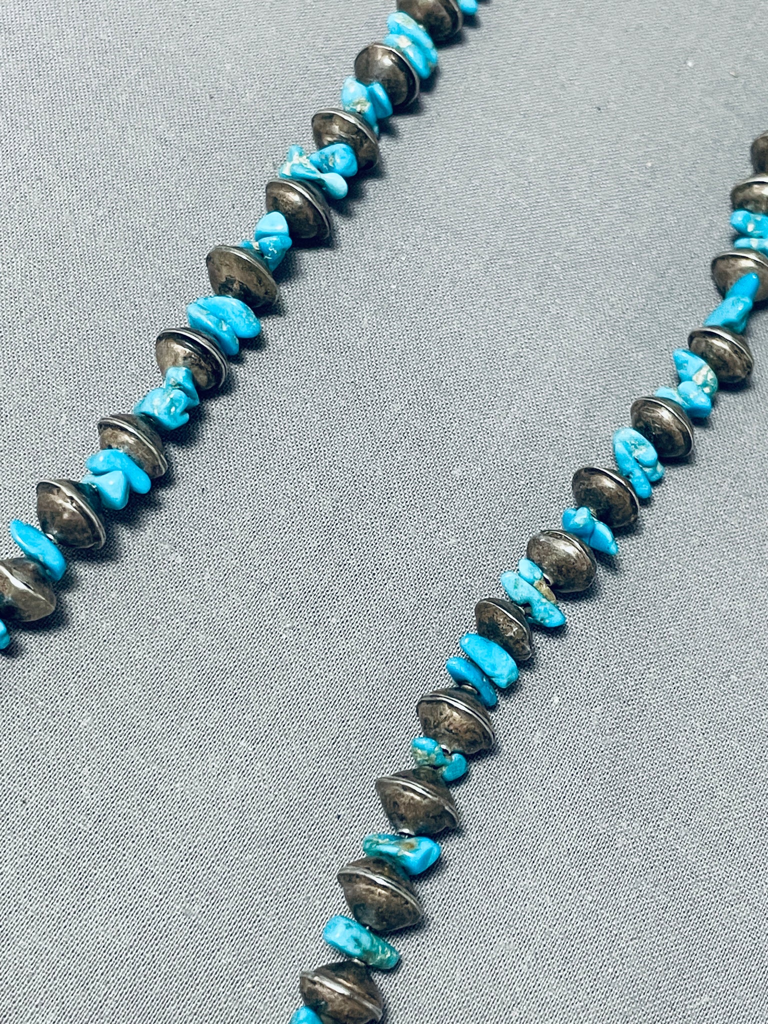 Native American Traditional Vintage Santo Domingo Old Kingman Turquoise Sterling Silver Necklace
