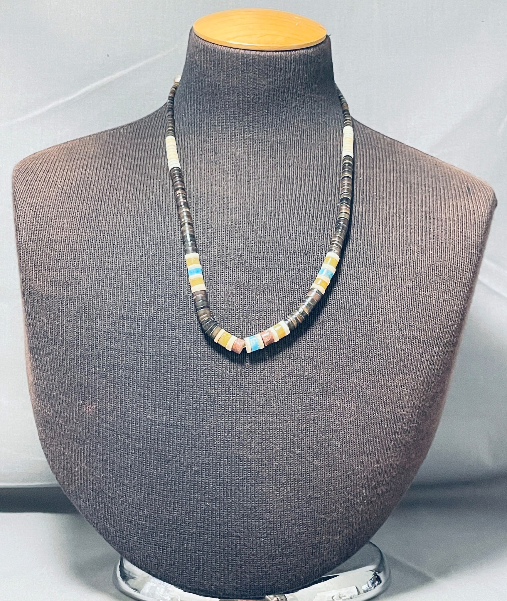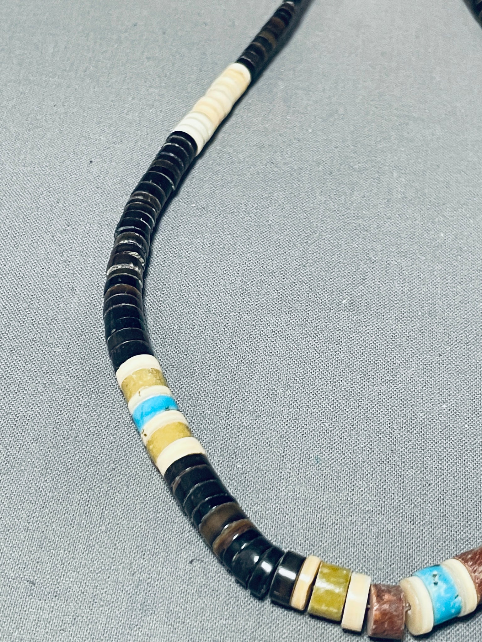 Native American Traditional Vintage Santo Domingo Turquoise Pipestone Sterling Silver Necklace