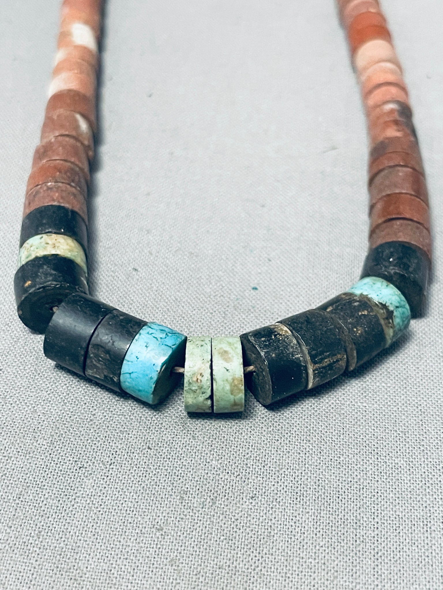 Native American Traditional Vintage Santo Domingo Turquoise Pipestone Sterling Silver Necklace