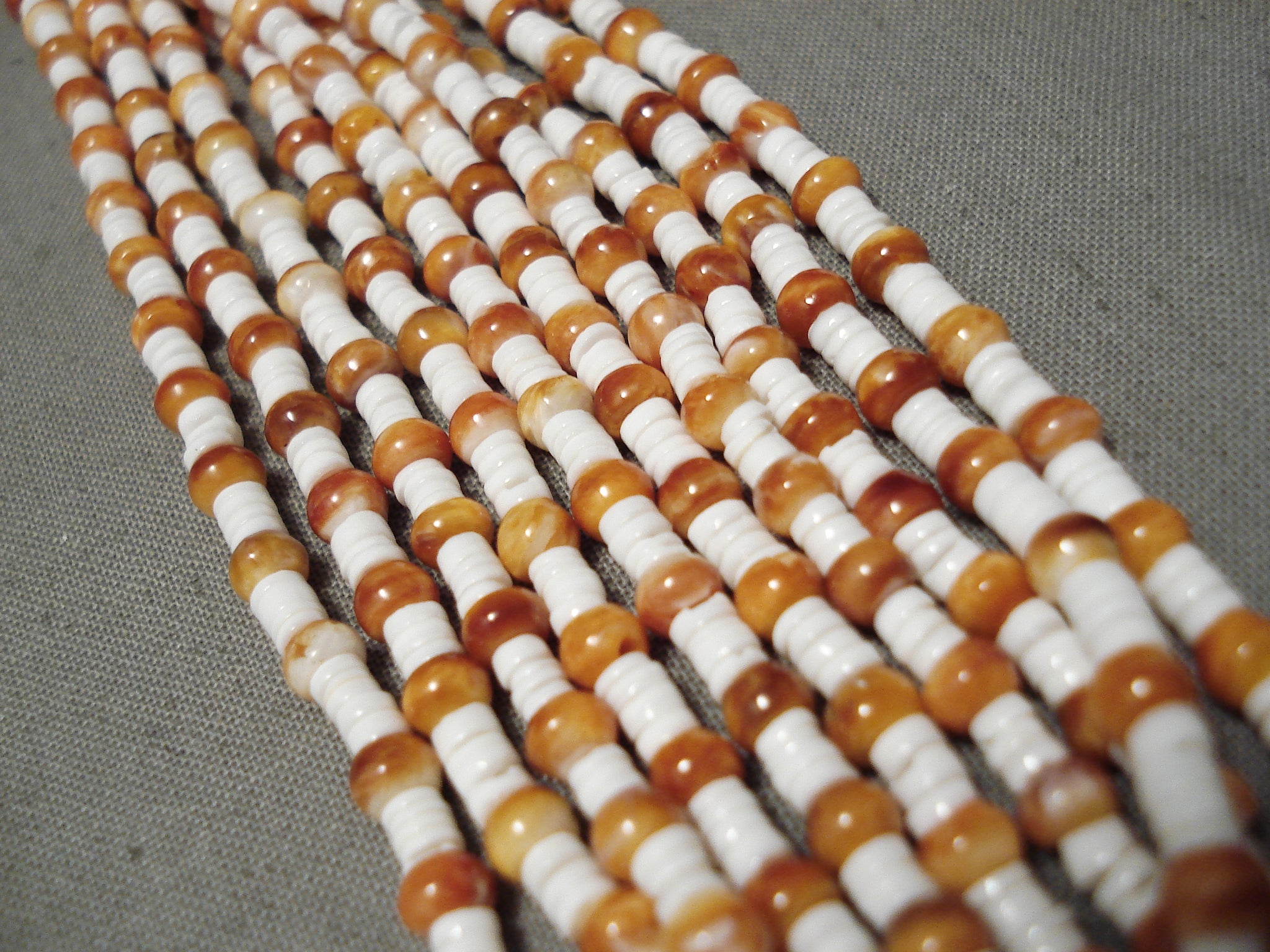 Native American Tremendous Rare Santo Domingo Coral White Shell Sterling Silver Necklace
