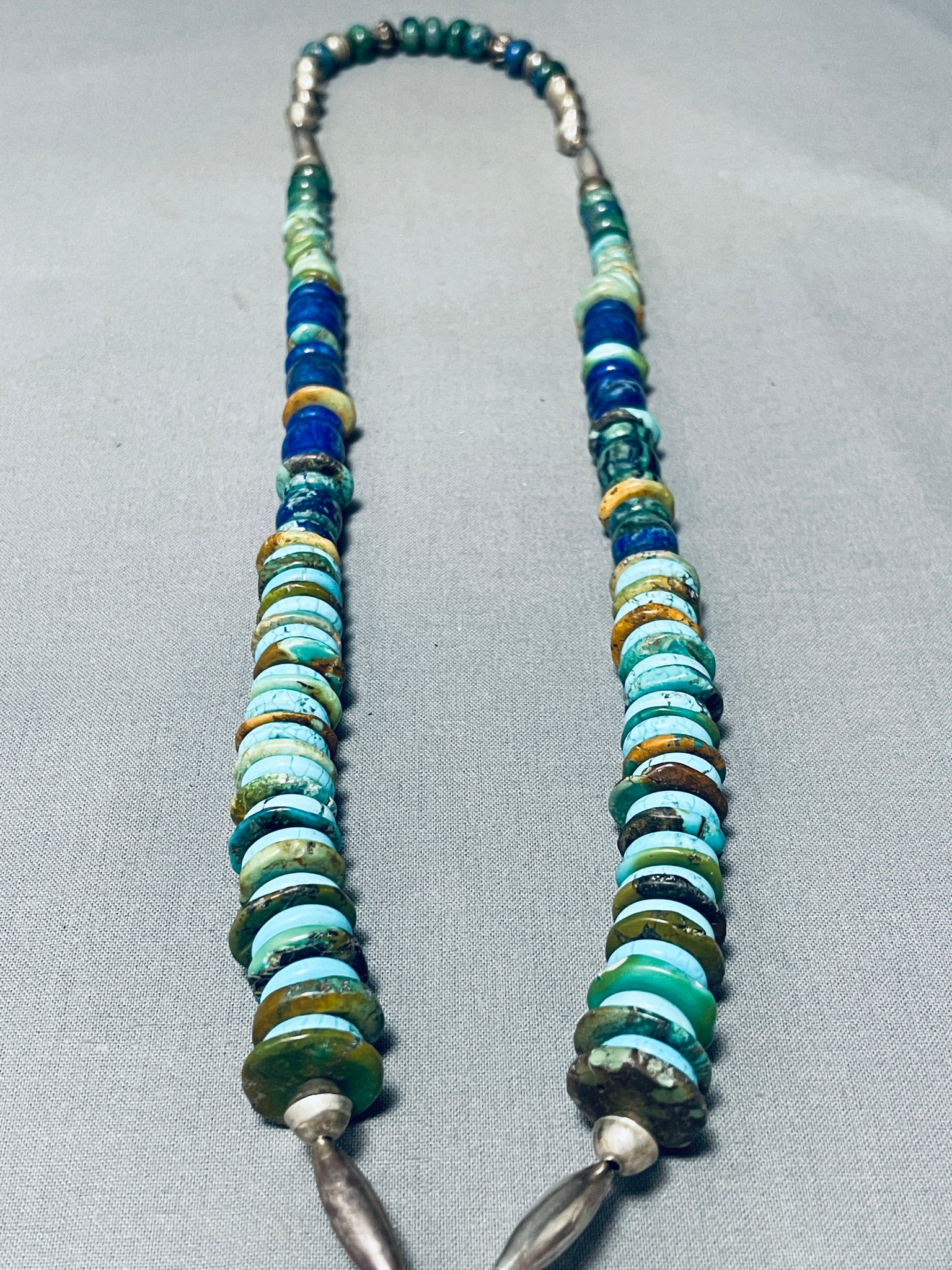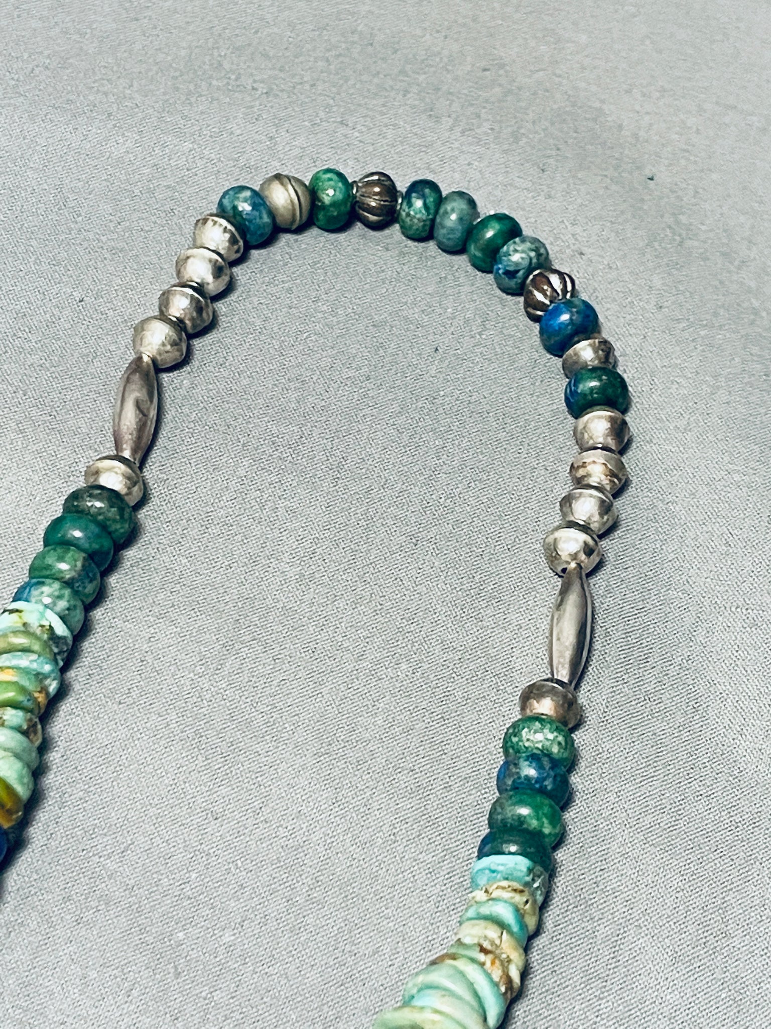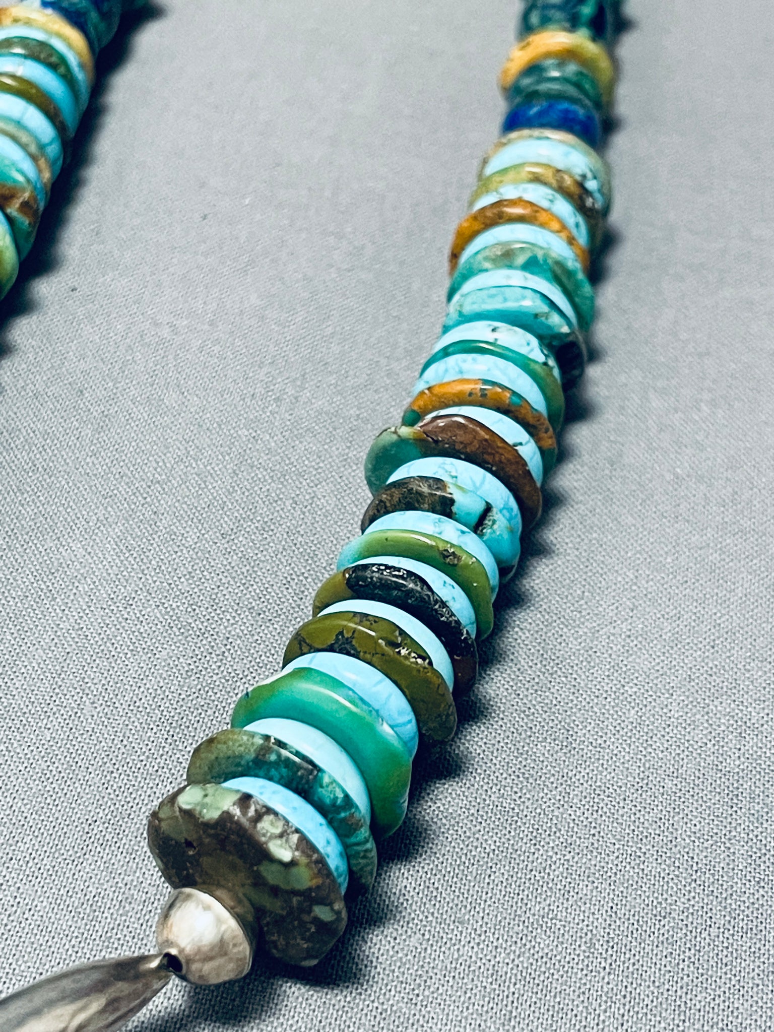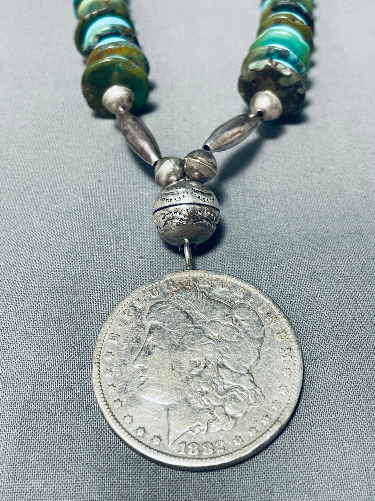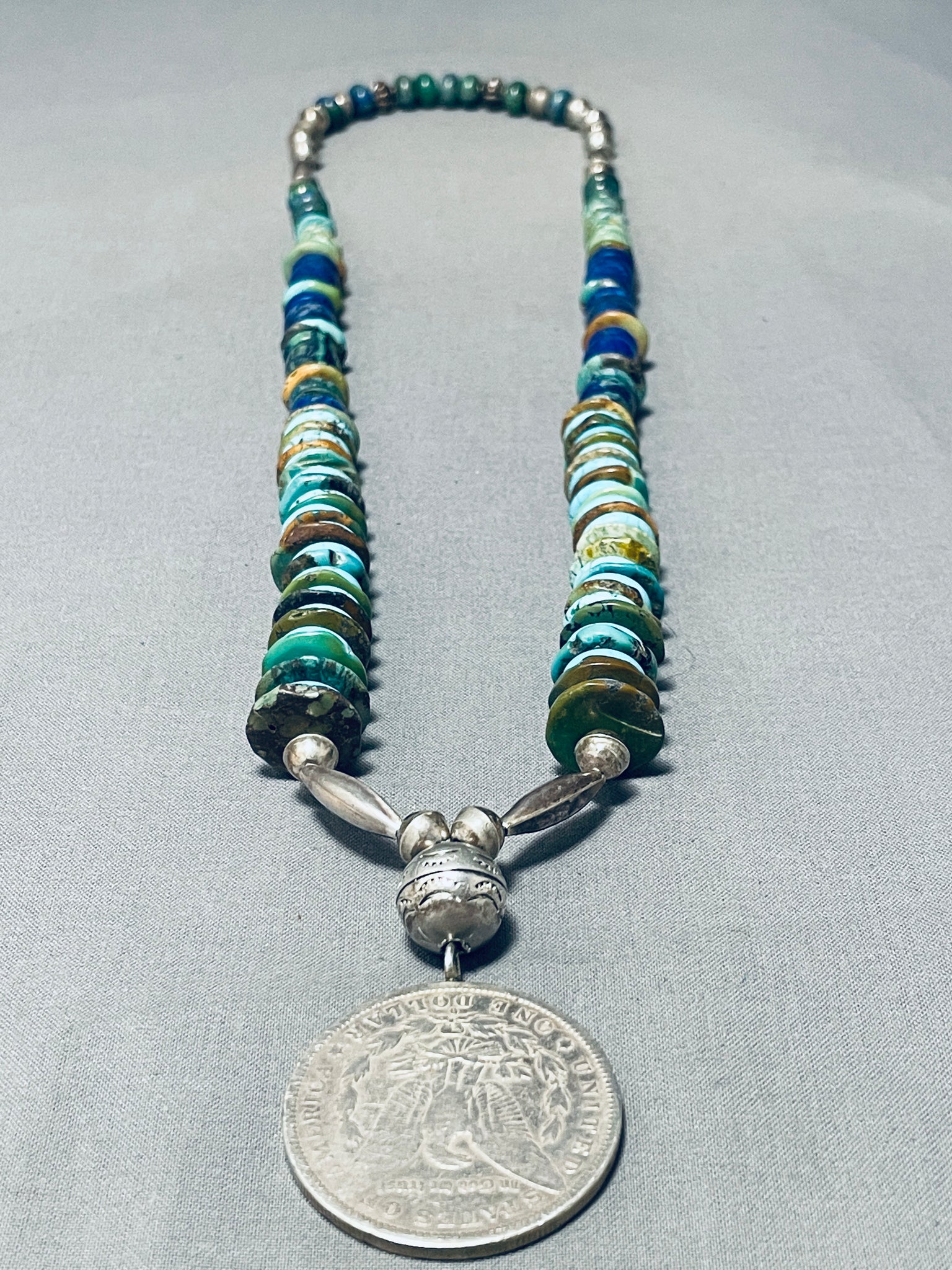 Native American Unique Vintage Navajo Turquoise Sterling Silver Coin Necklace