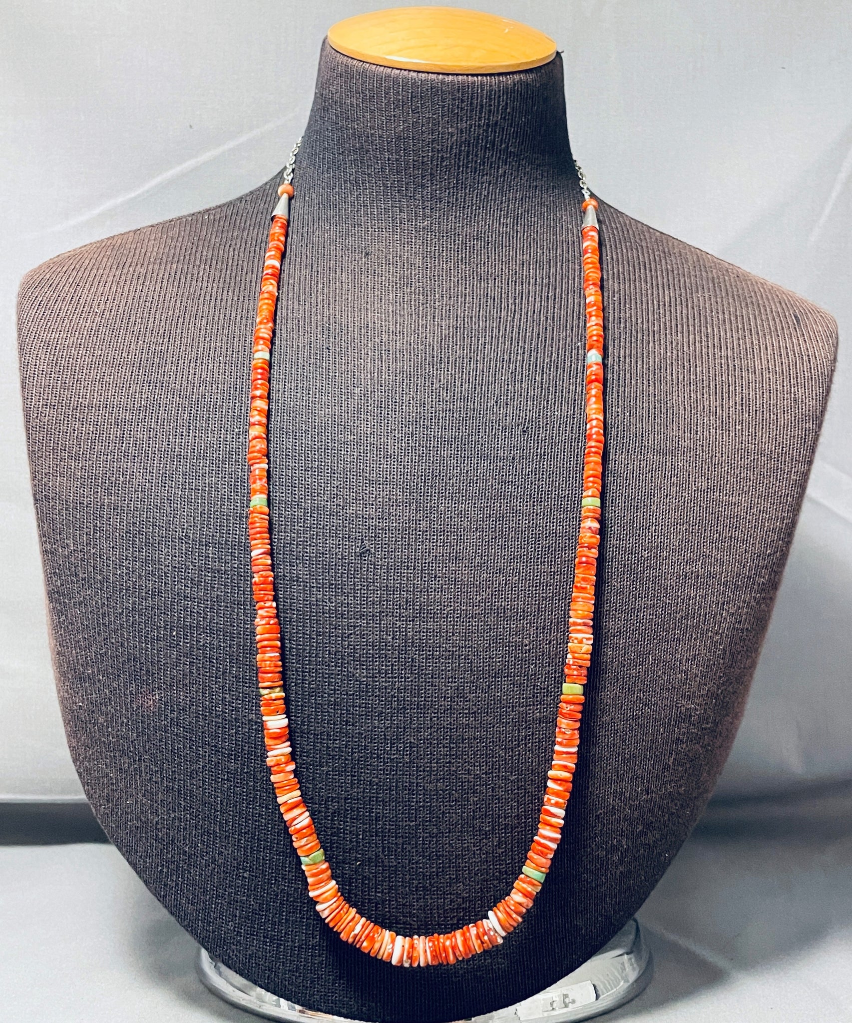 Native American Very Long Rare Vintage Santo Domingo Shell Turquoise Sterling Silver Necklace