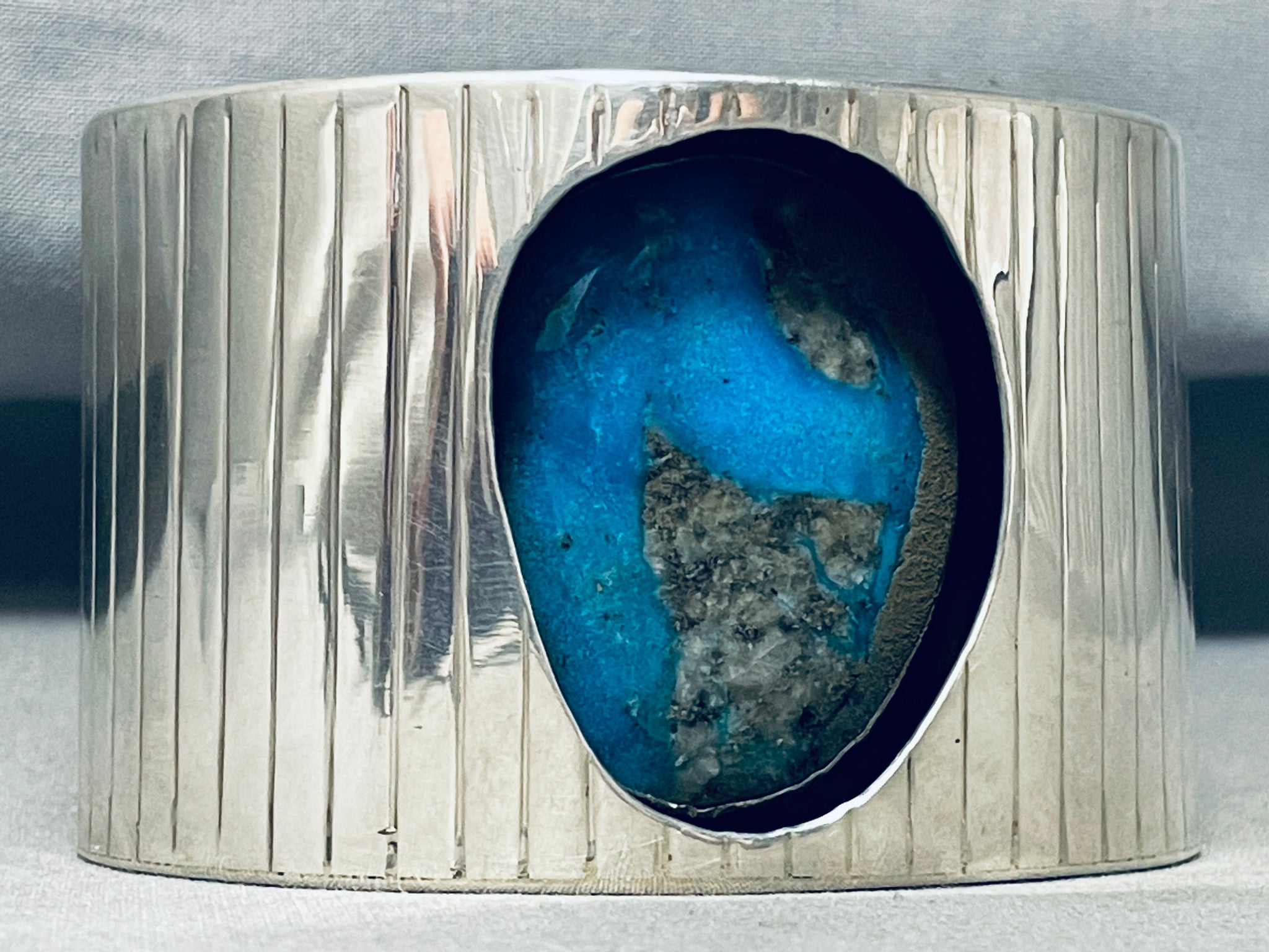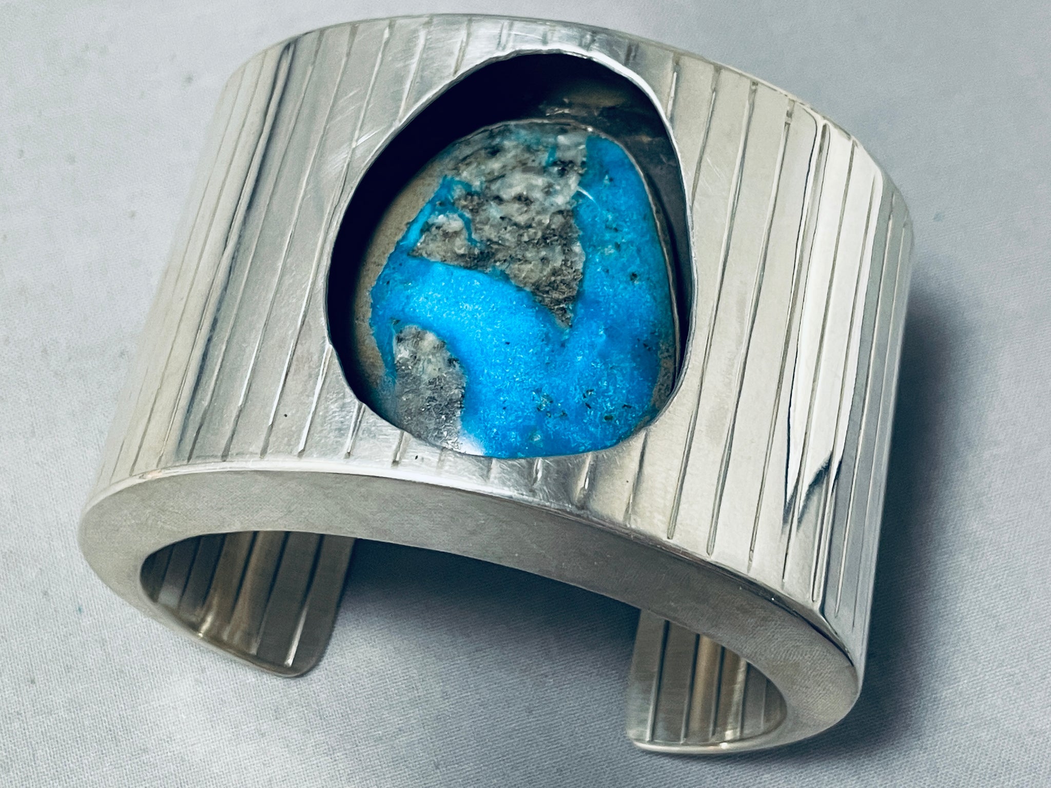 Native American Very Rare Recessed Morenci Turquoise Sterling Silver Bracelet