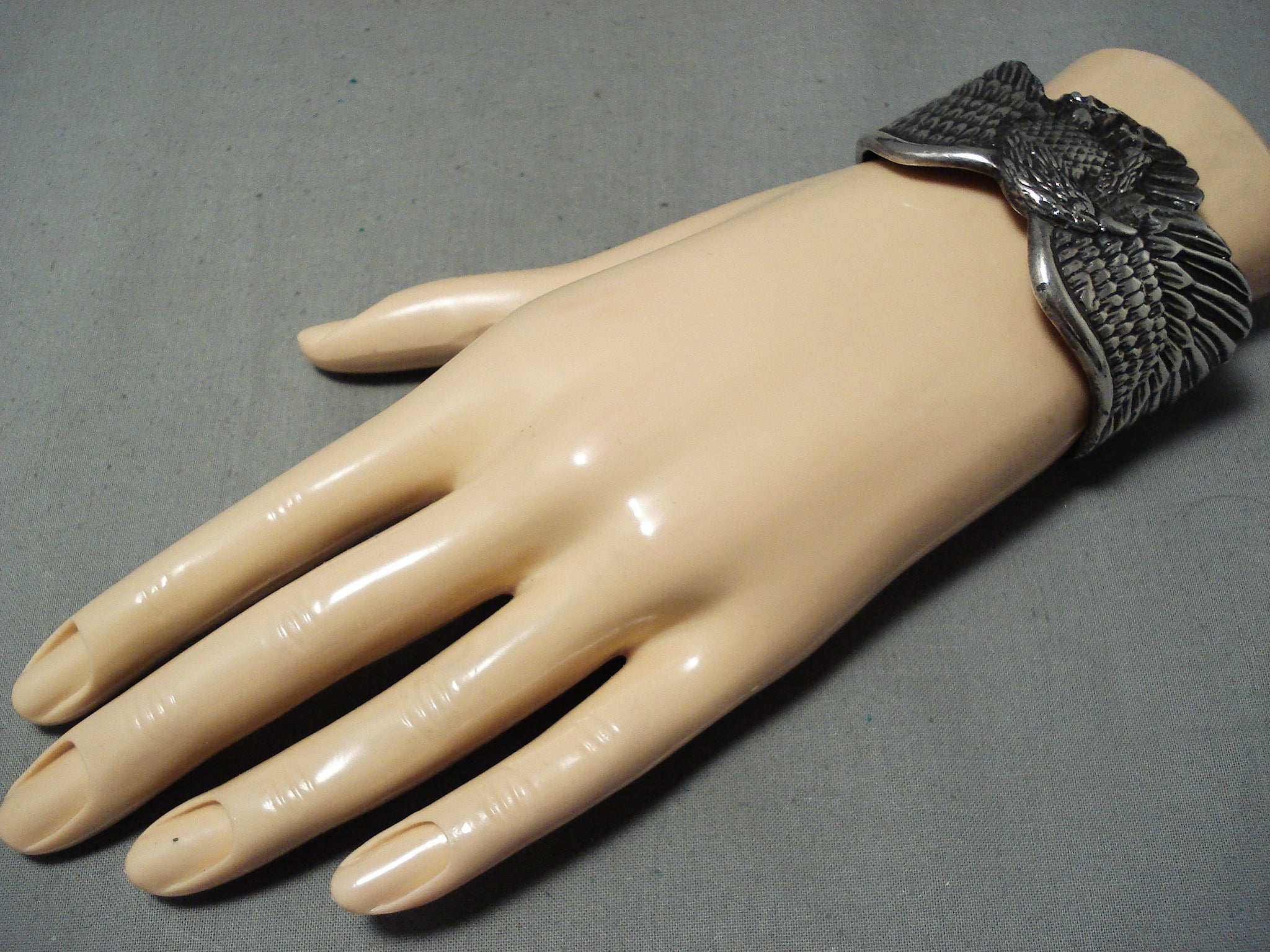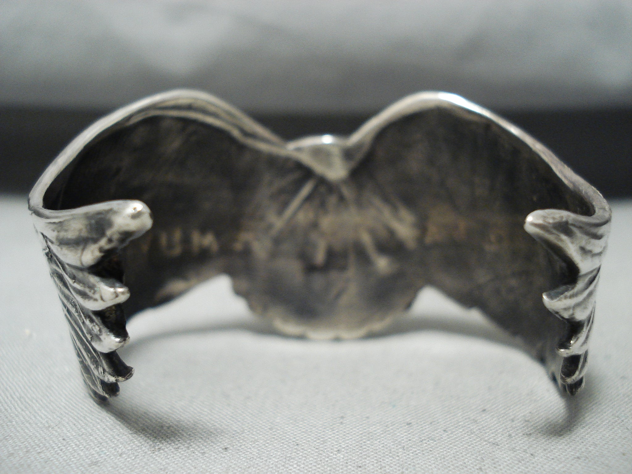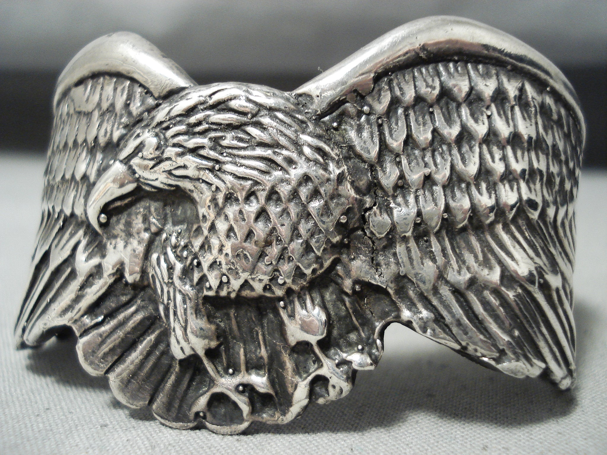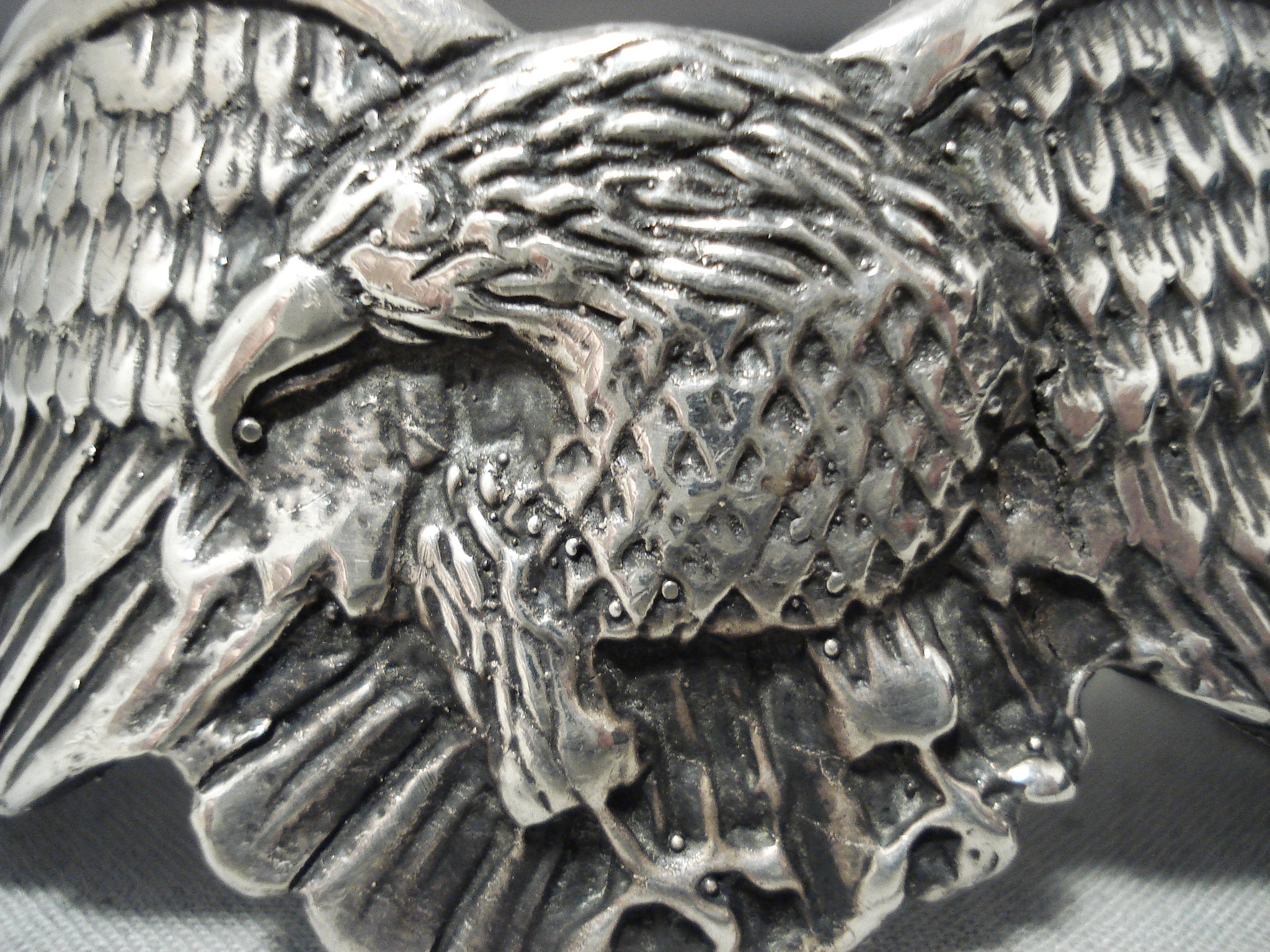 Native American Very Rare Vintage Yuma Sterling Silver Eagle Heavy Bracelet
