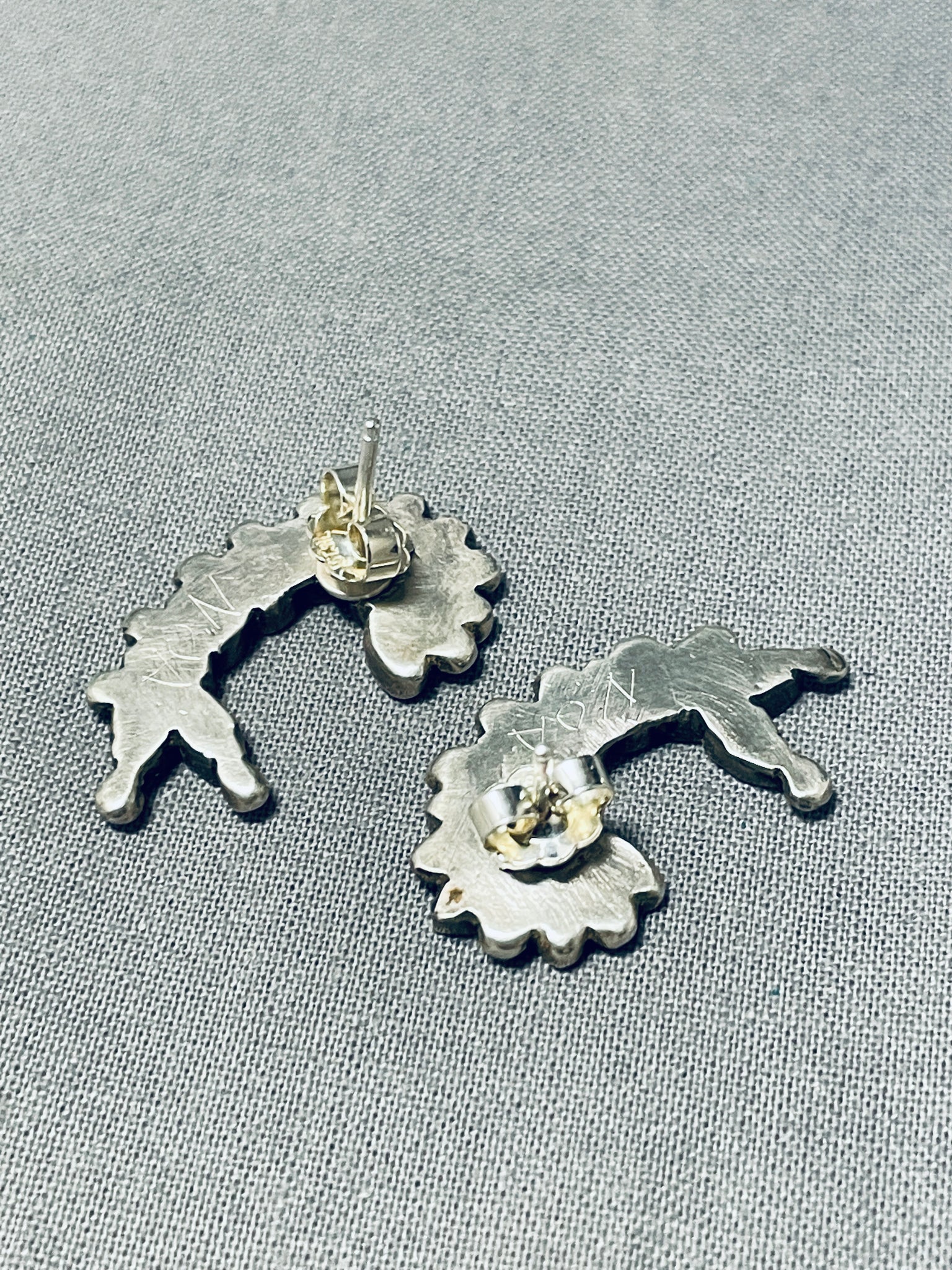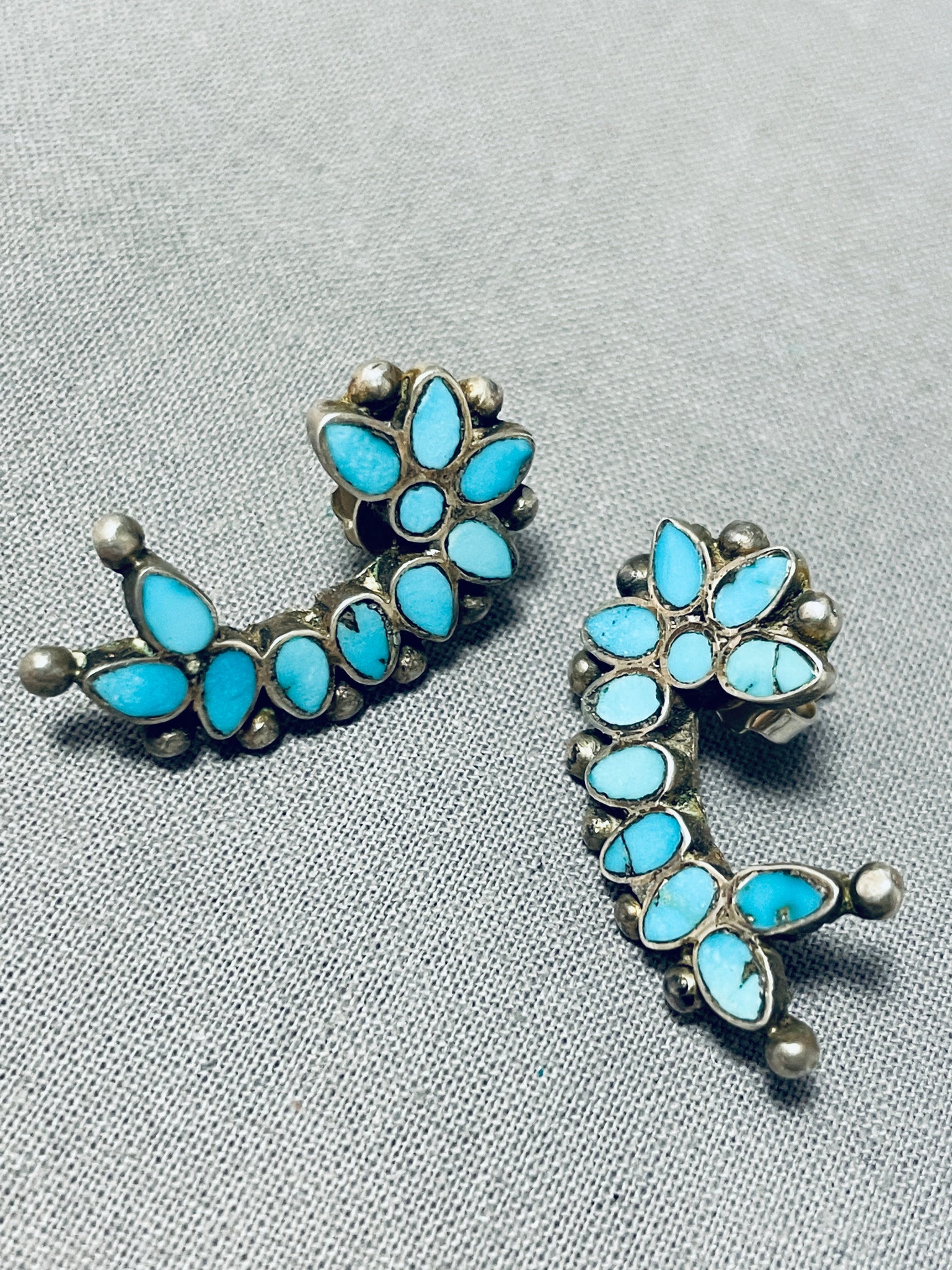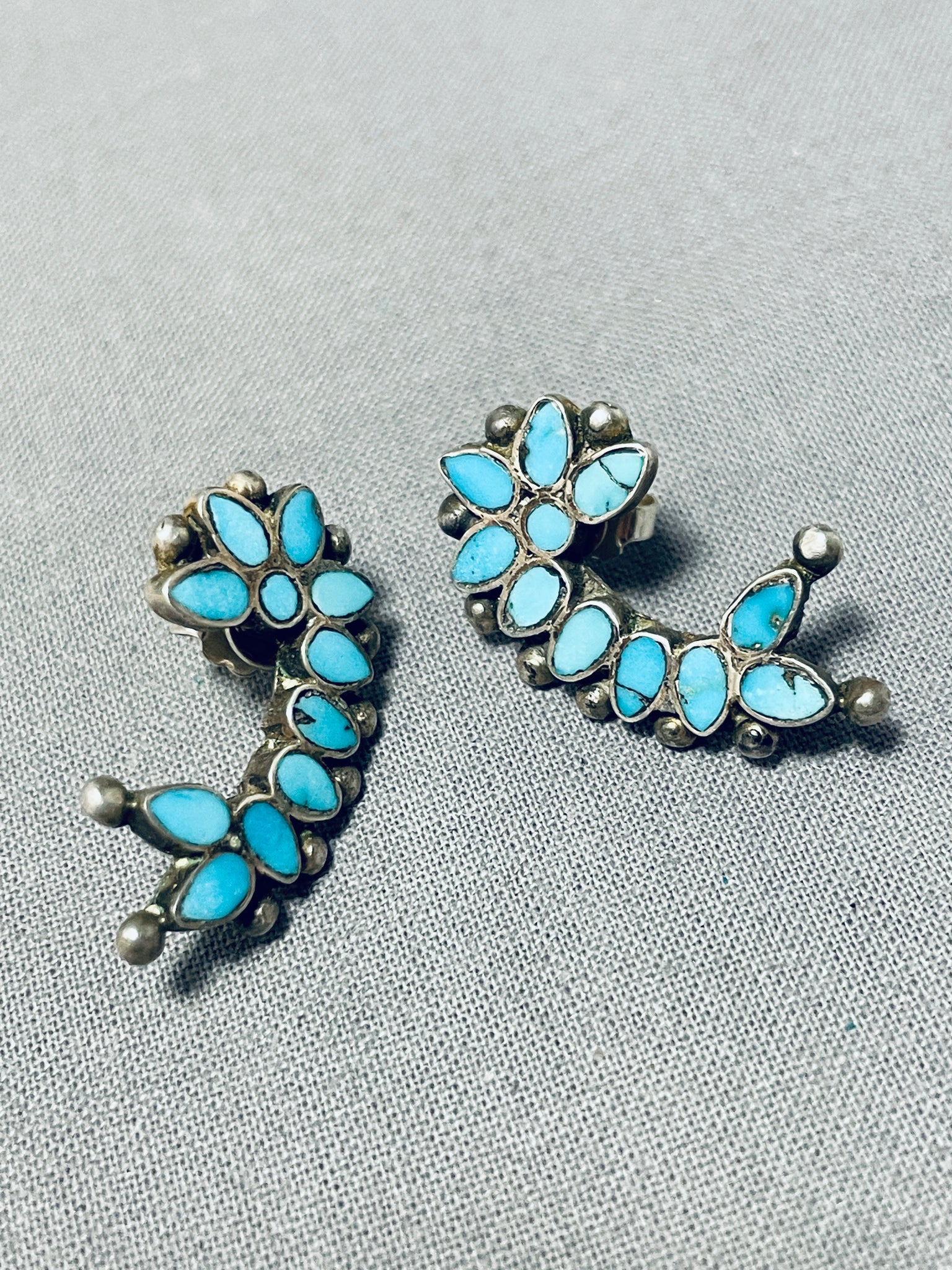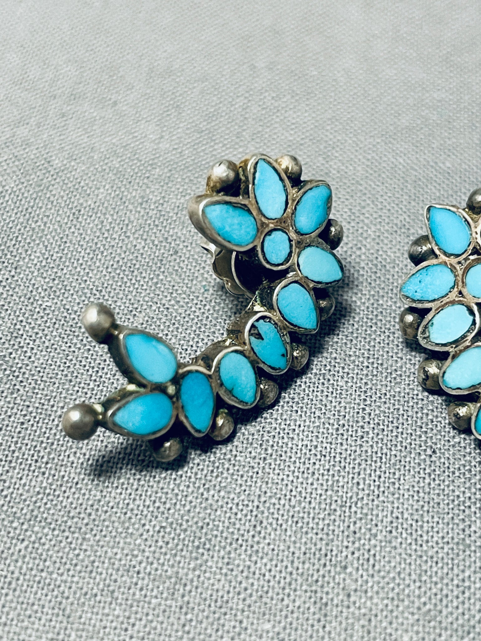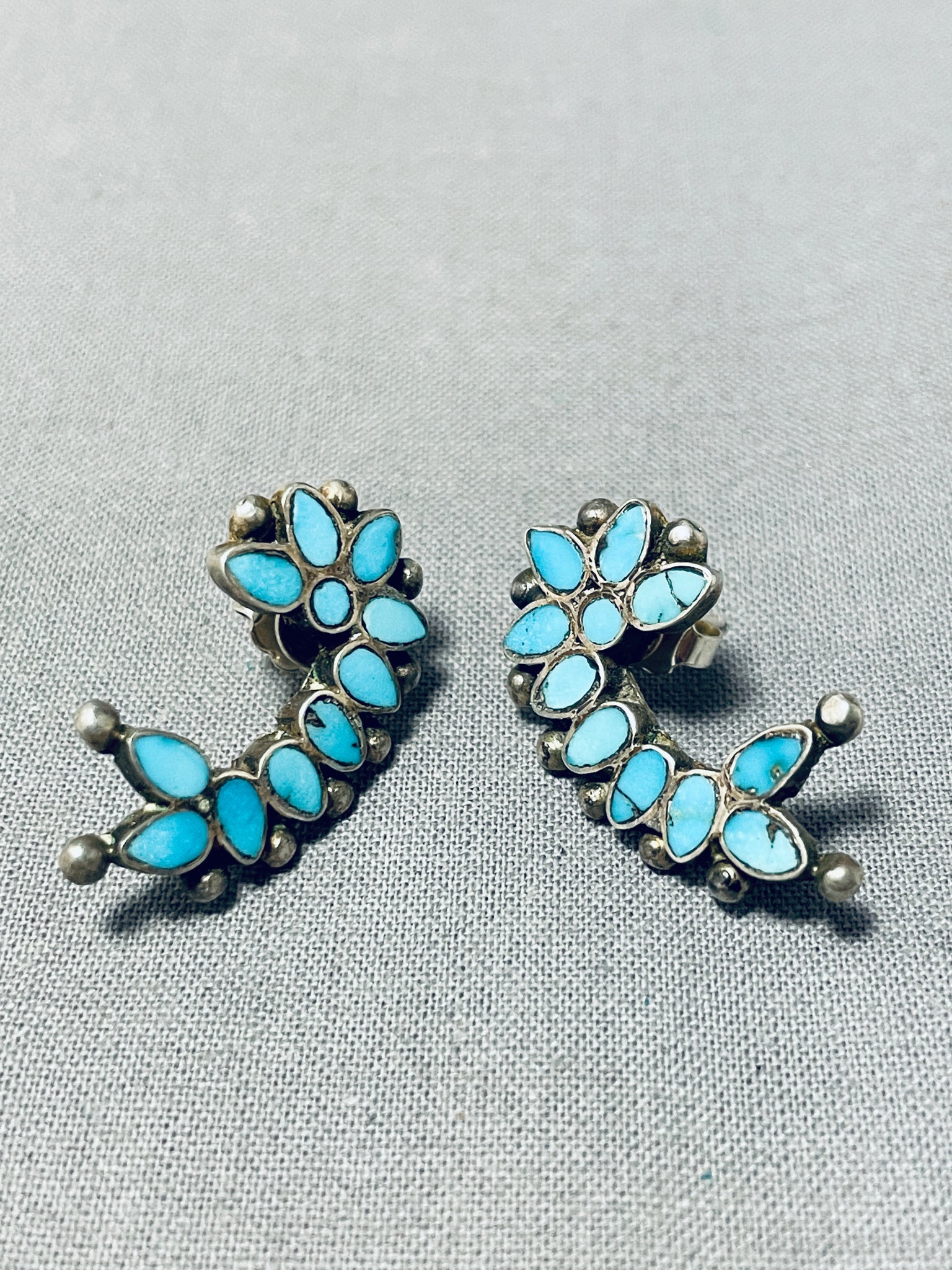Native American Very Rare Vintage Zuni Dishta Turquoise Sterling Silver Unique Earrings