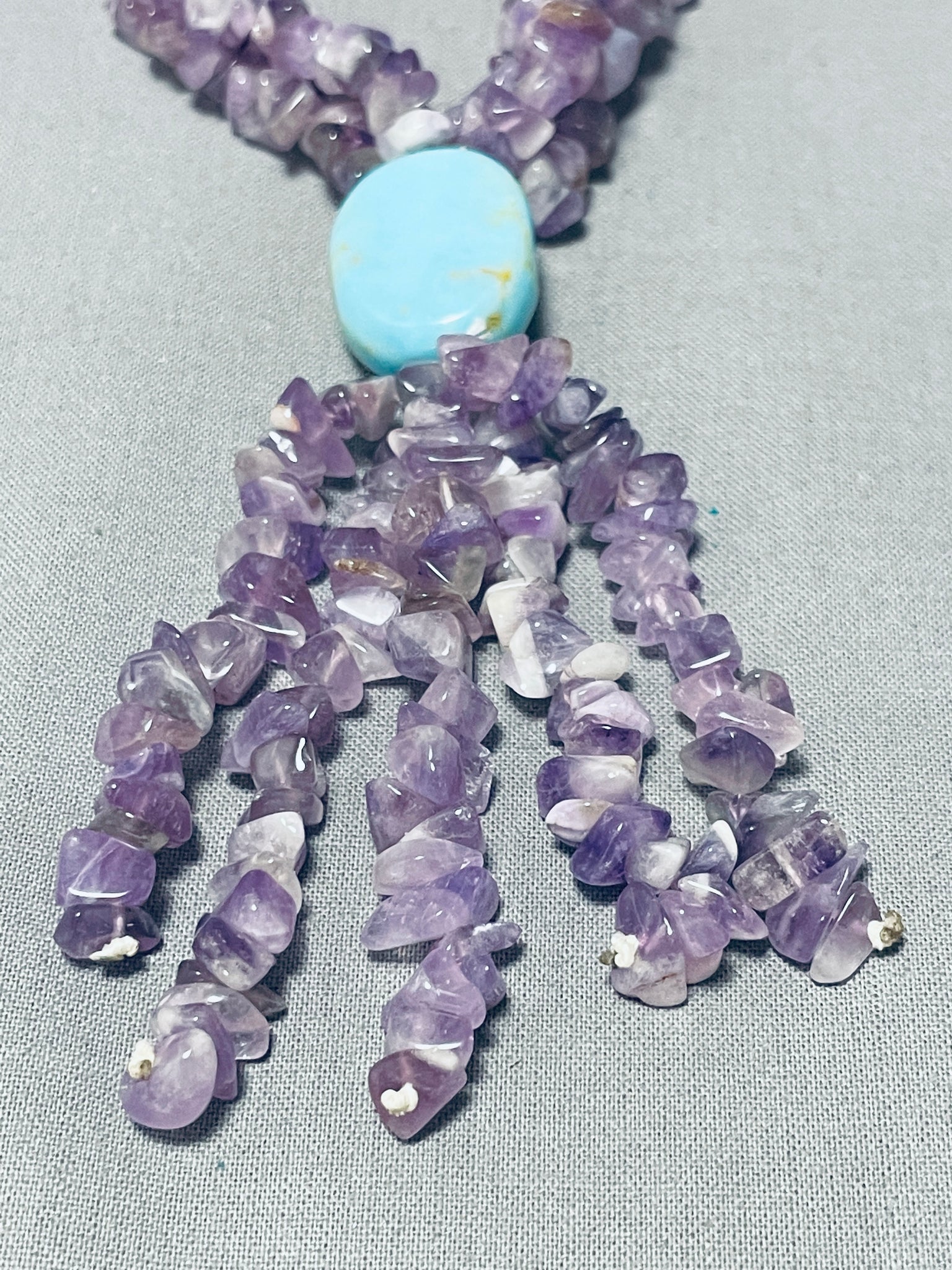 Native American Very Unique Navajo Amethyst Sterling Silver Turquoise Necklace