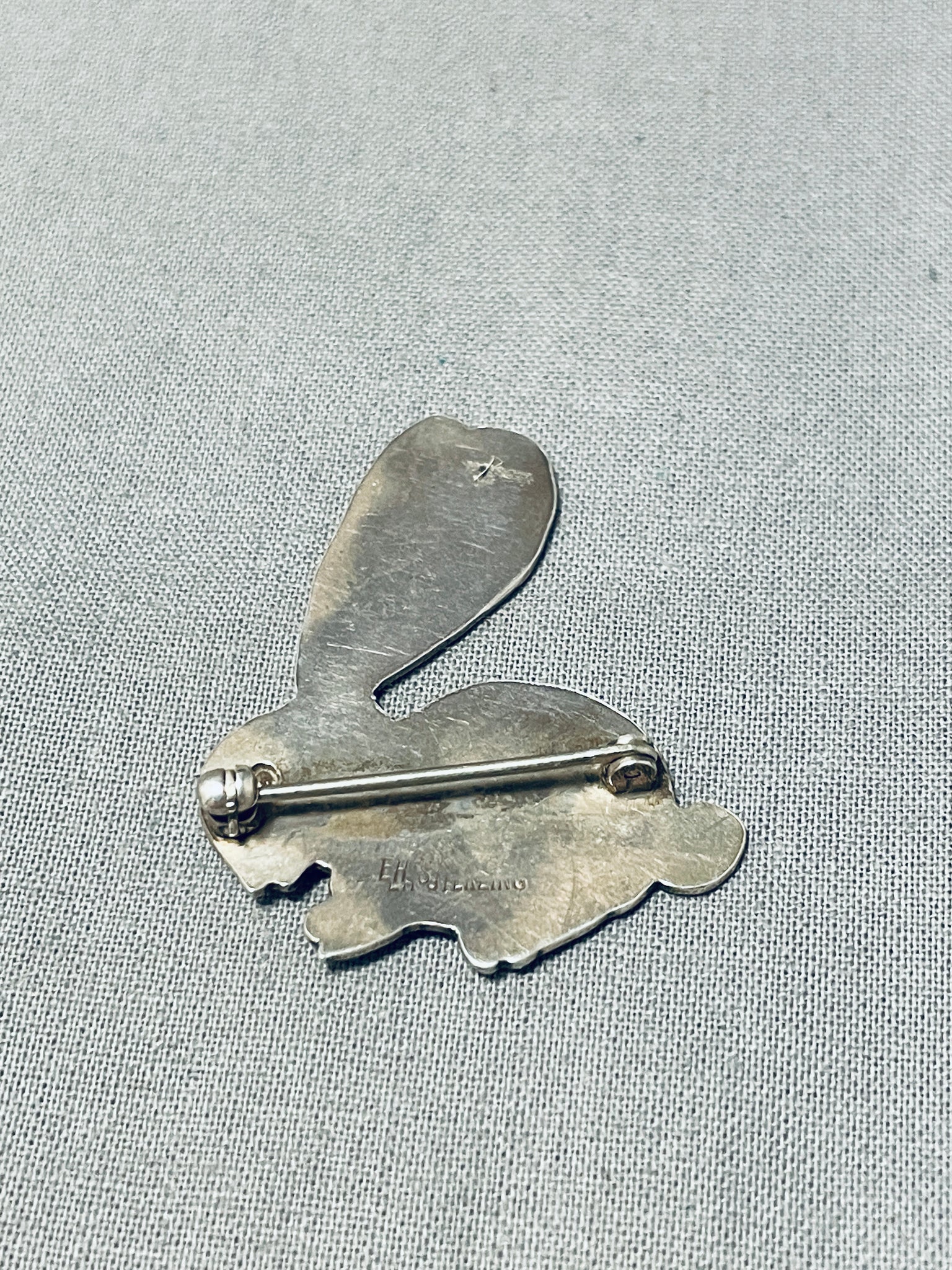 Native American Whimsicle Vintage Navajo Turquoise Sterling Silver Bunny Rabbit Pin