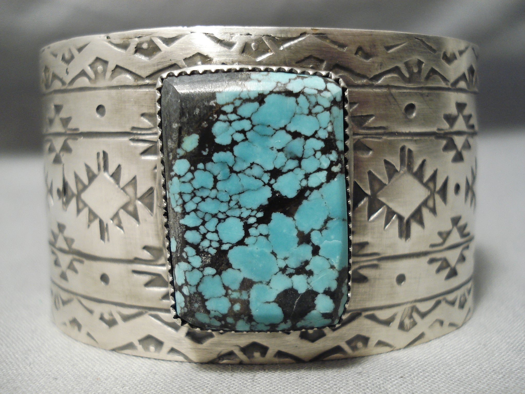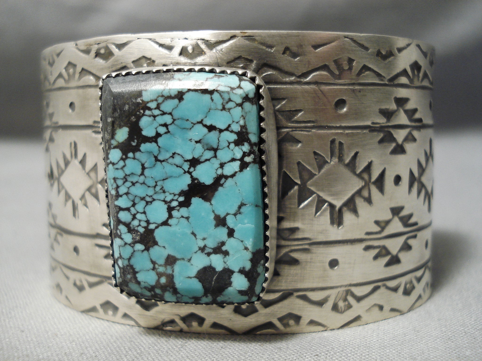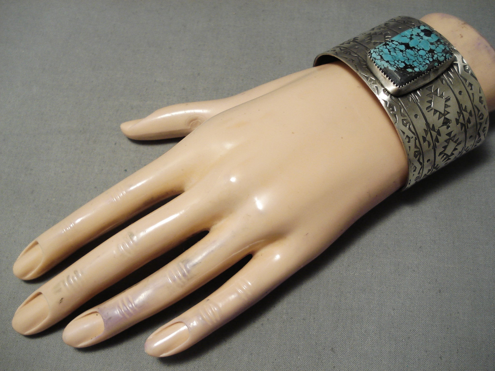 Native American Wide Huge Spiderweb Turquoise Sterling Silver Bracelet Cuff
