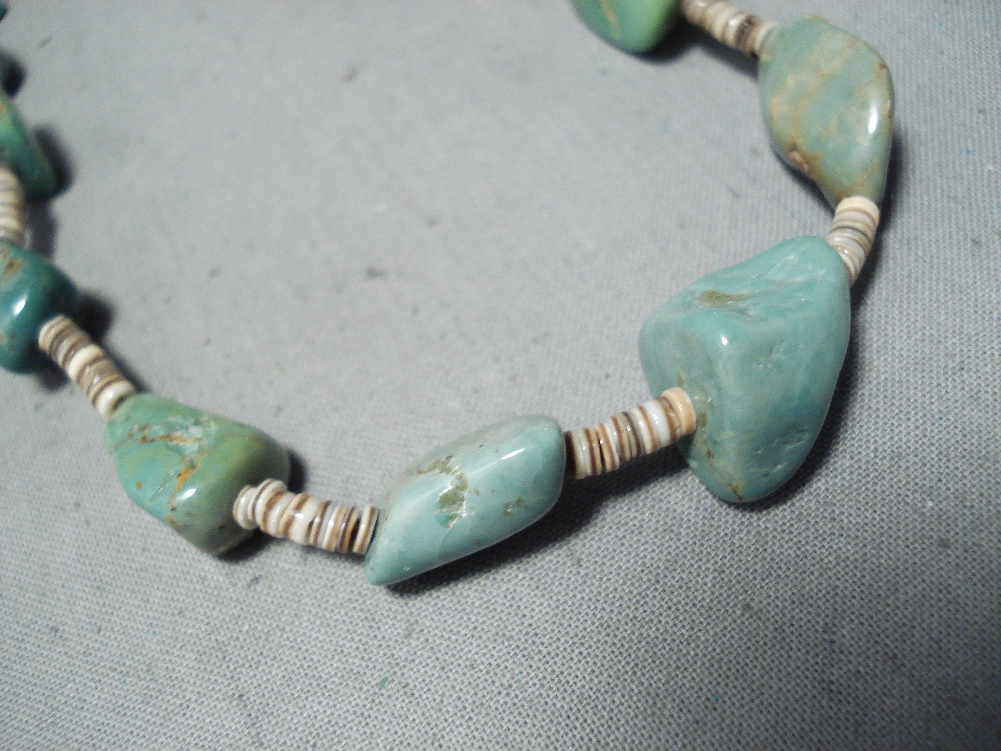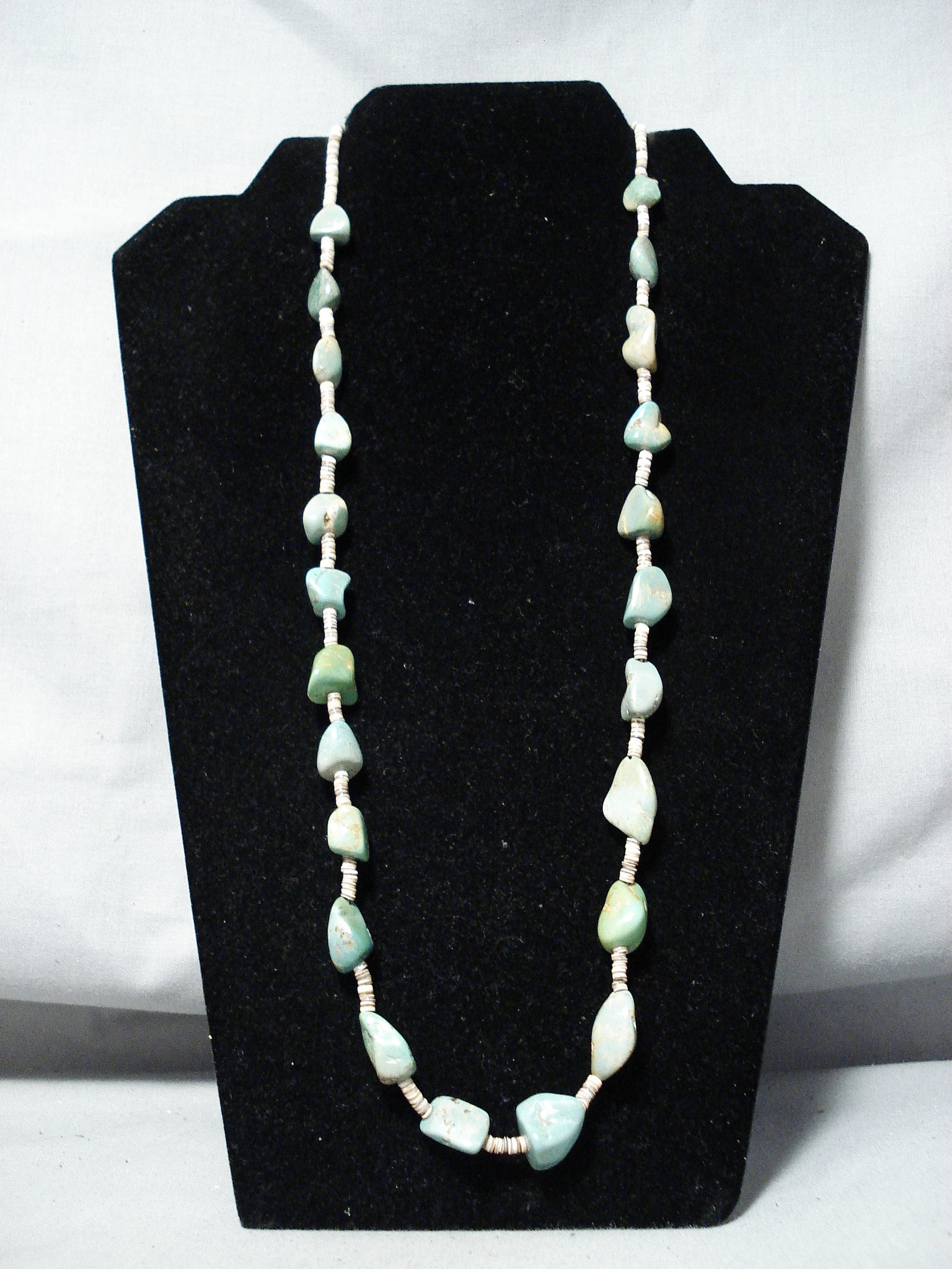 Native American Wonderful Santo Domingo Royston Turquoise Heishi Sterling Silver Necklace