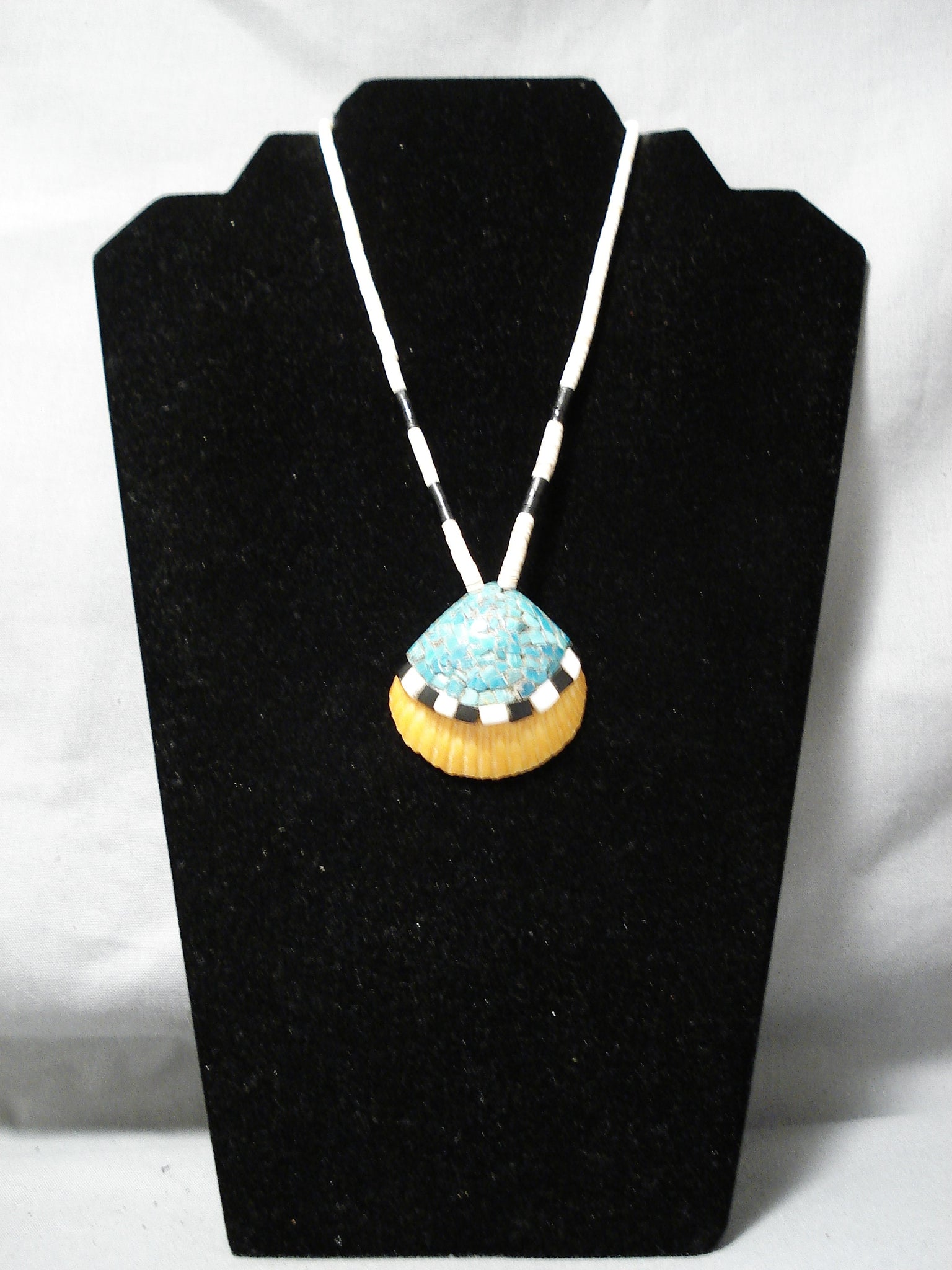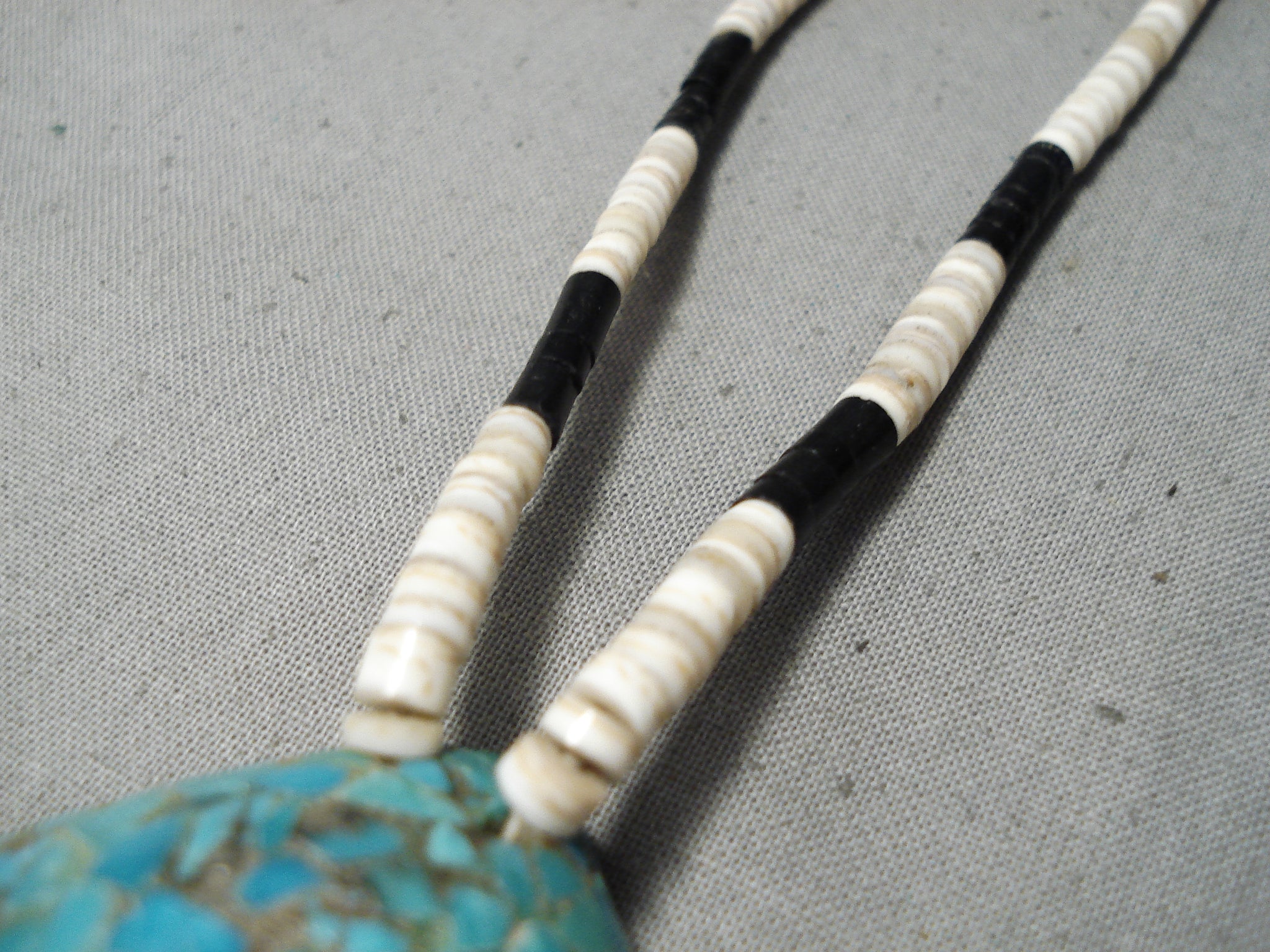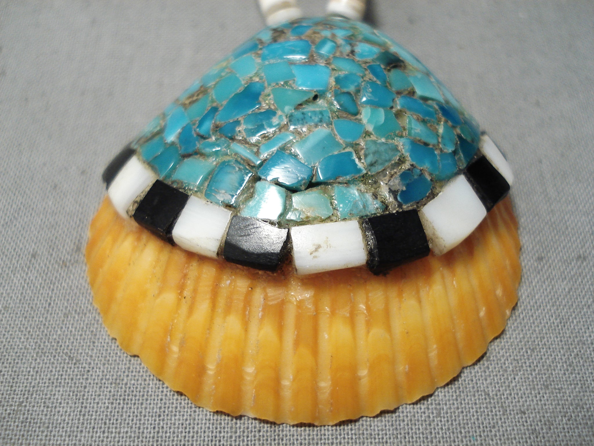 Native American Wonderful Vintage Santo Domingo Turquoise Sterling Silver Shell Necklace Old