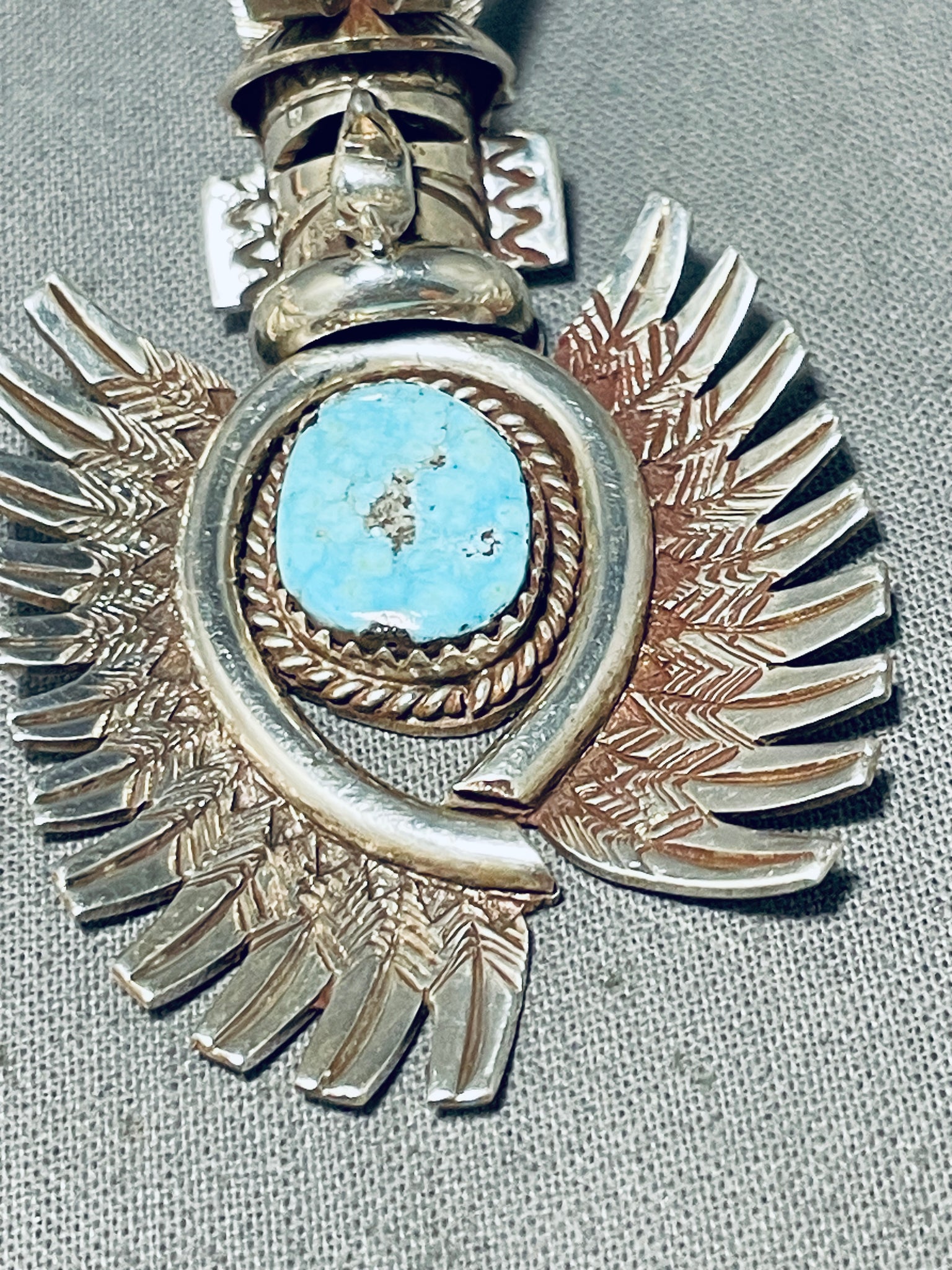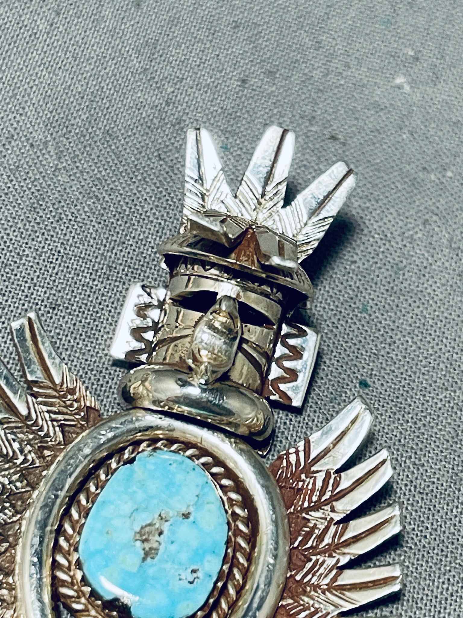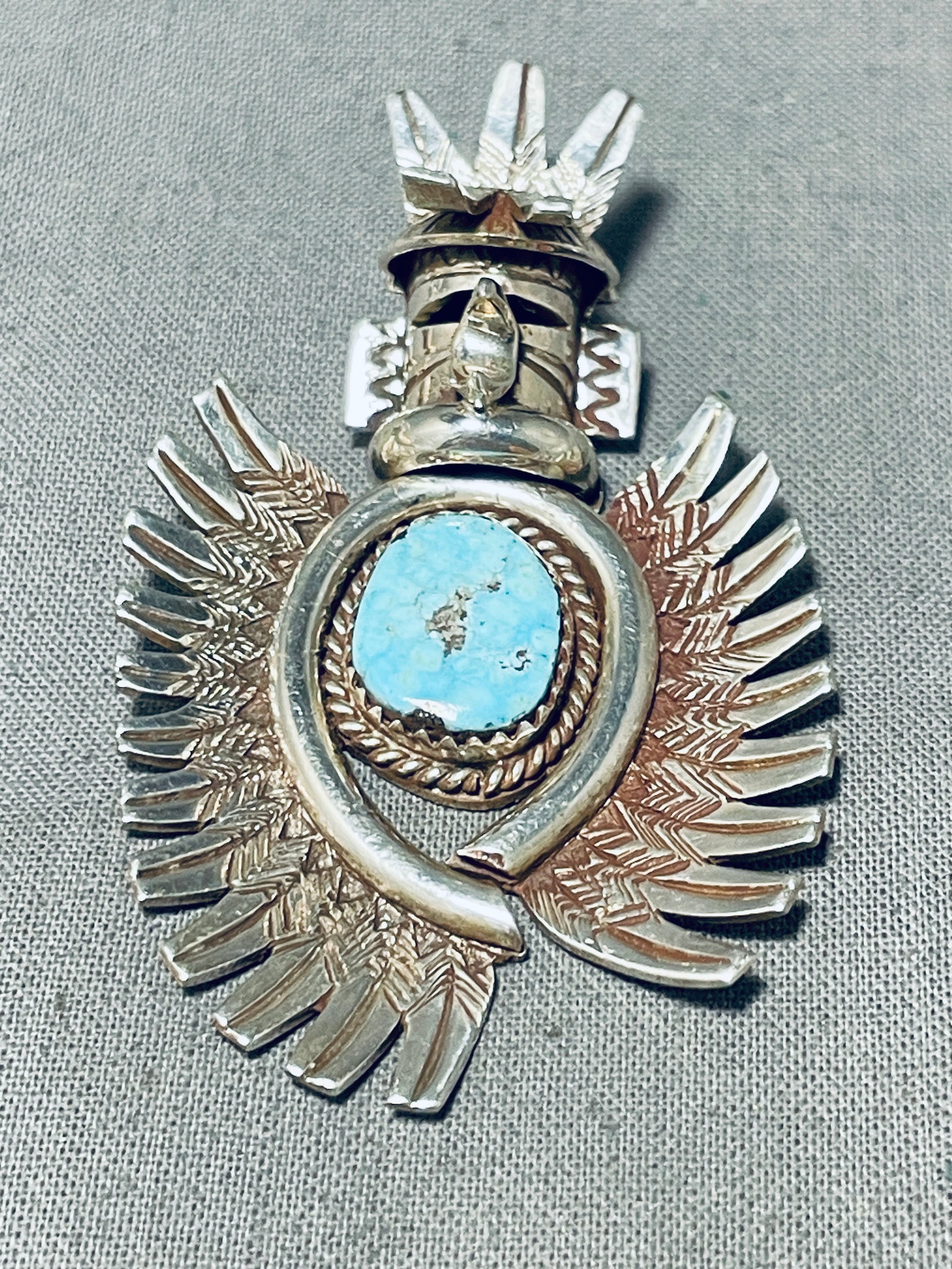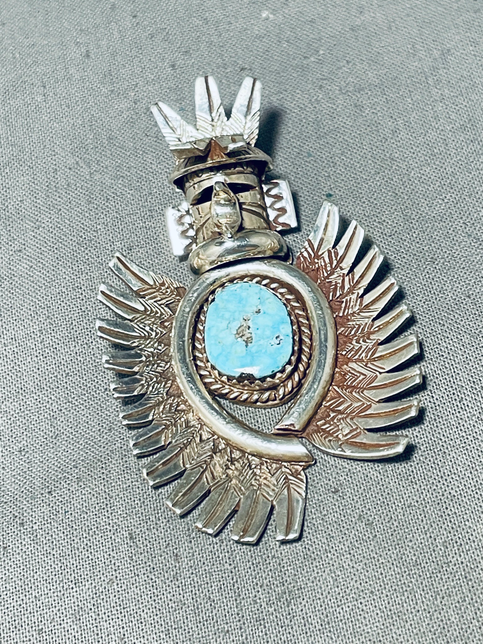 Nelson Morton Native American Navajo Morenci Turquoise Sterling Silver Swivel Kachina Pendant