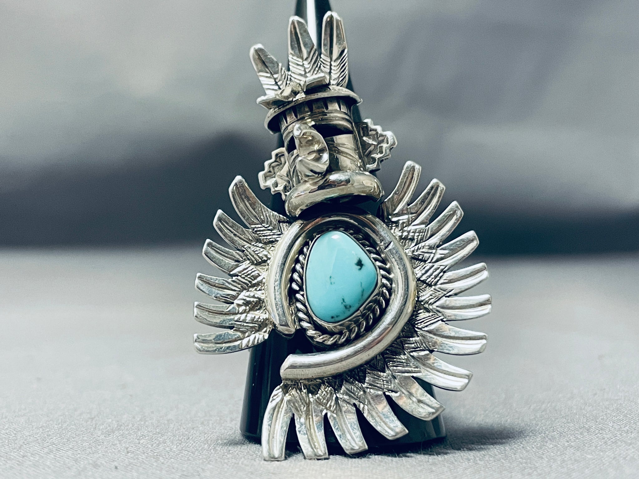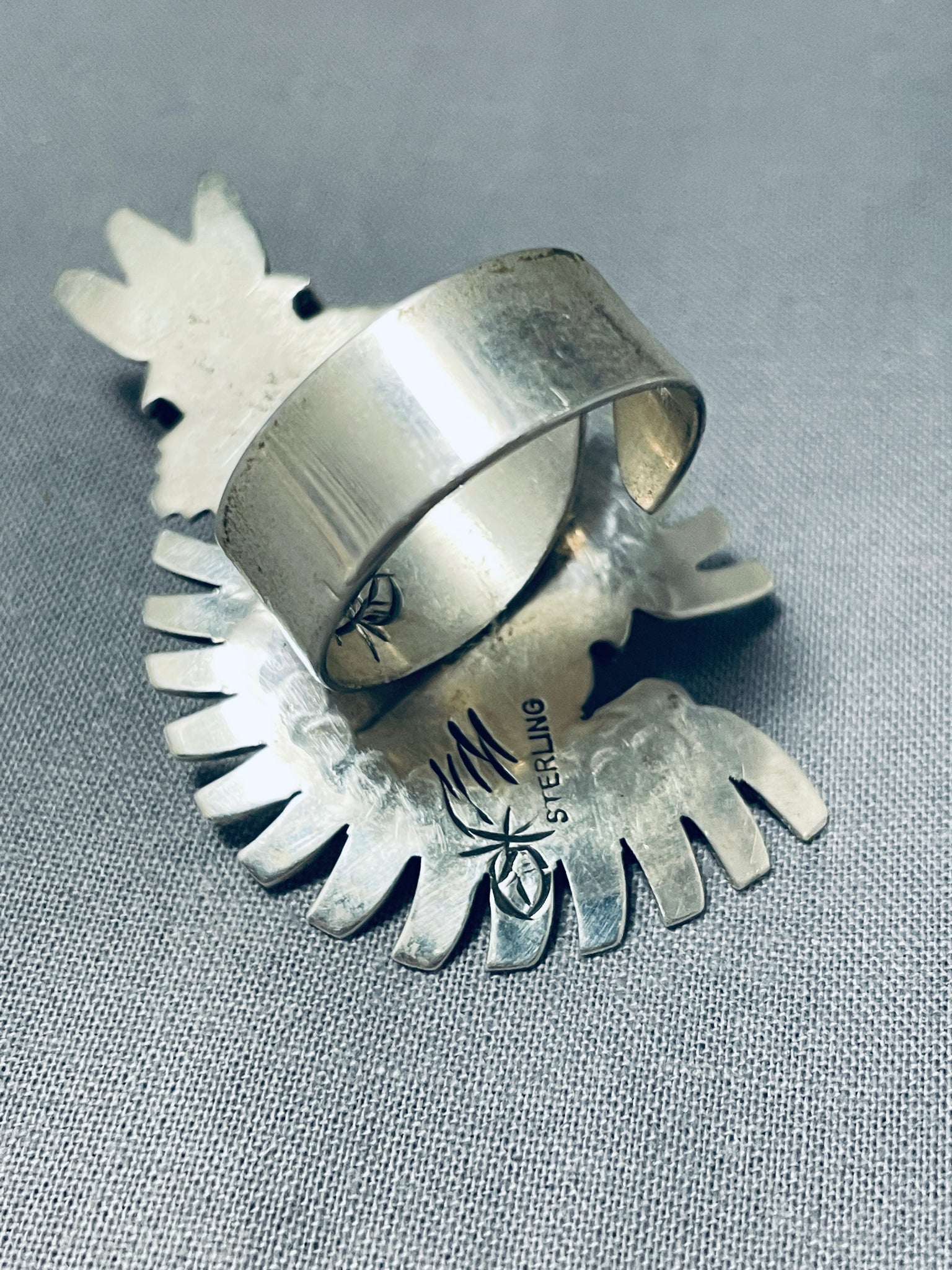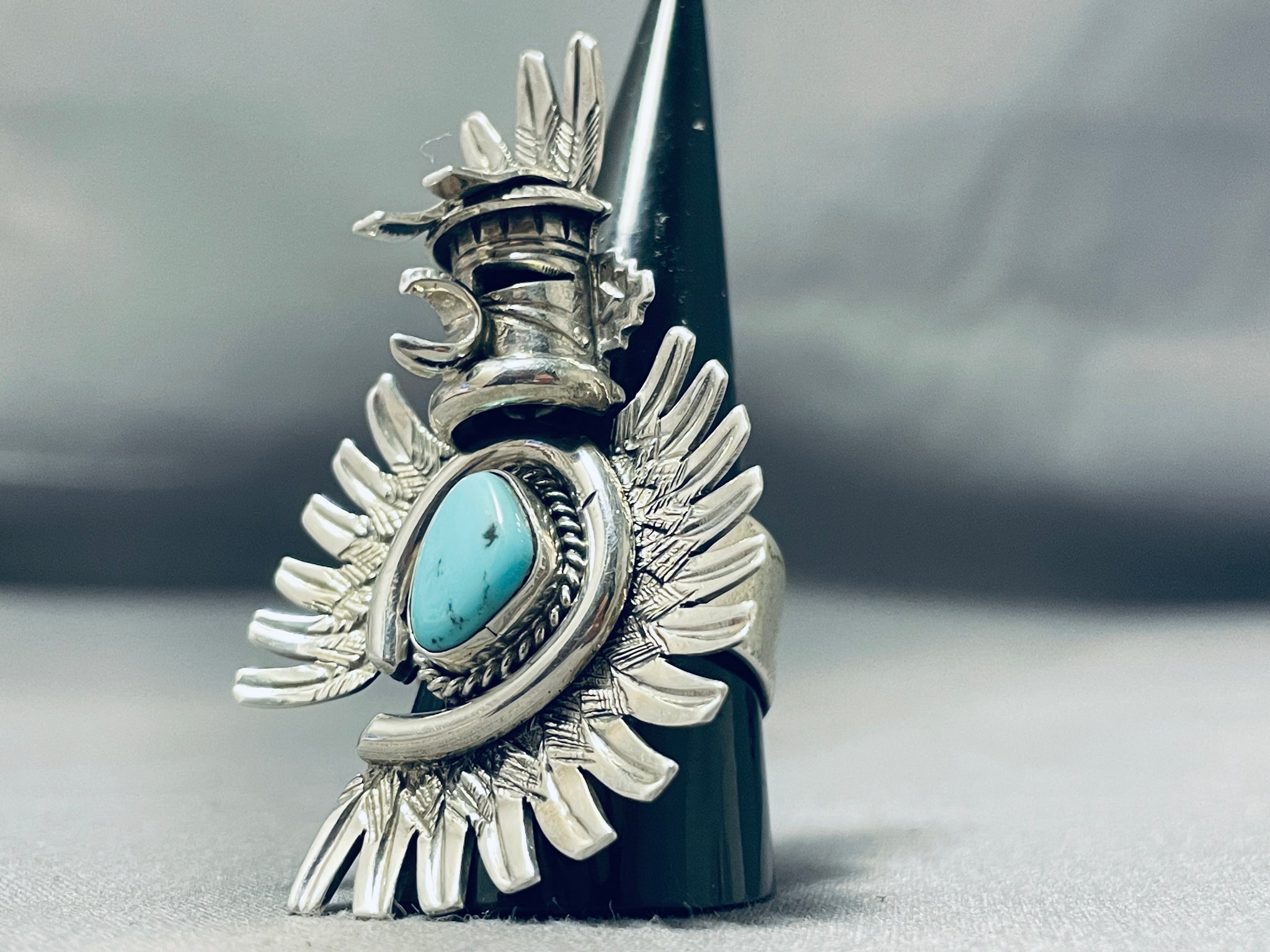 Nelson Morton Unique Native American Navajo Turquoise Sterling Silver Kachina Ring