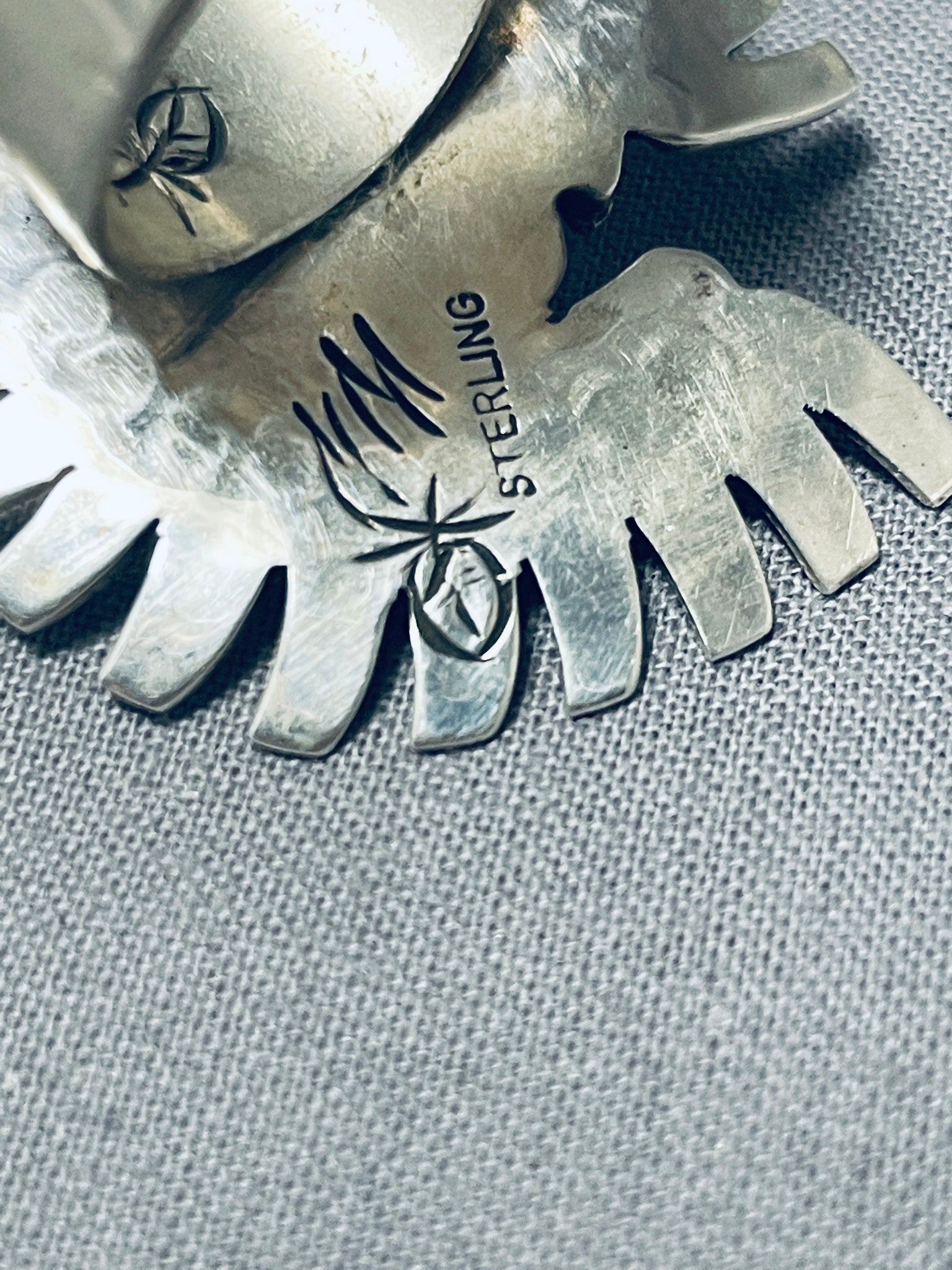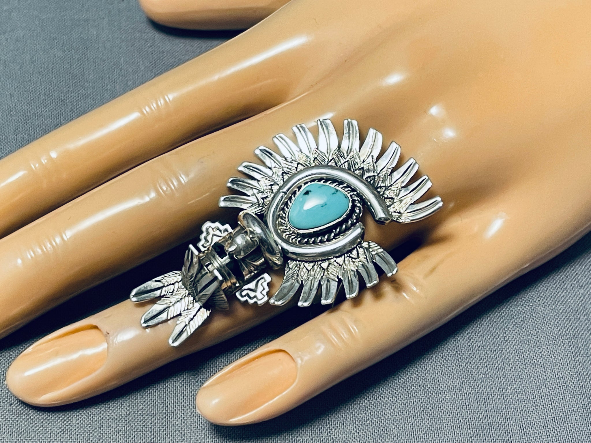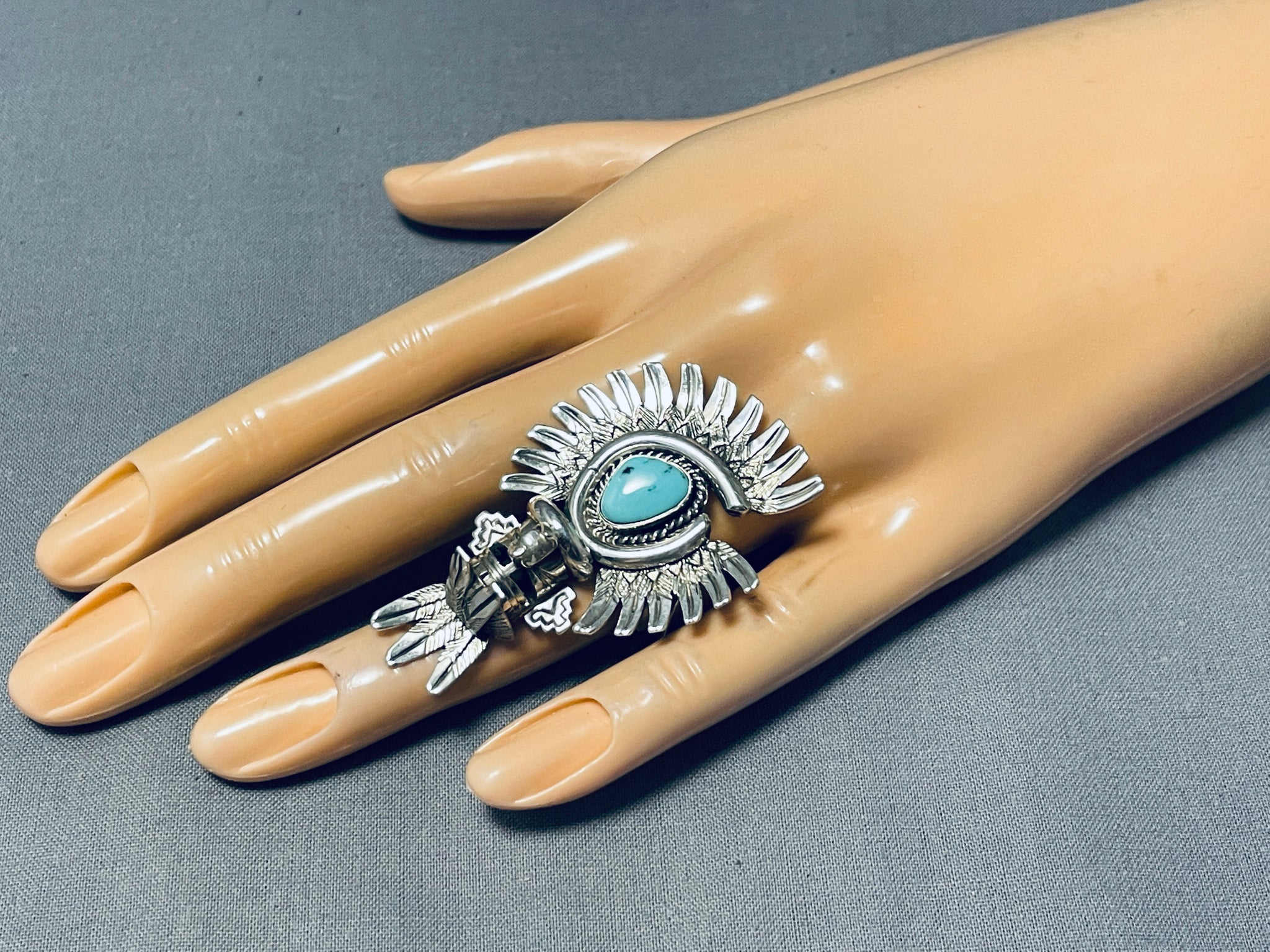 Nelson Morton Unique Native American Navajo Turquoise Sterling Silver Kachina Ring