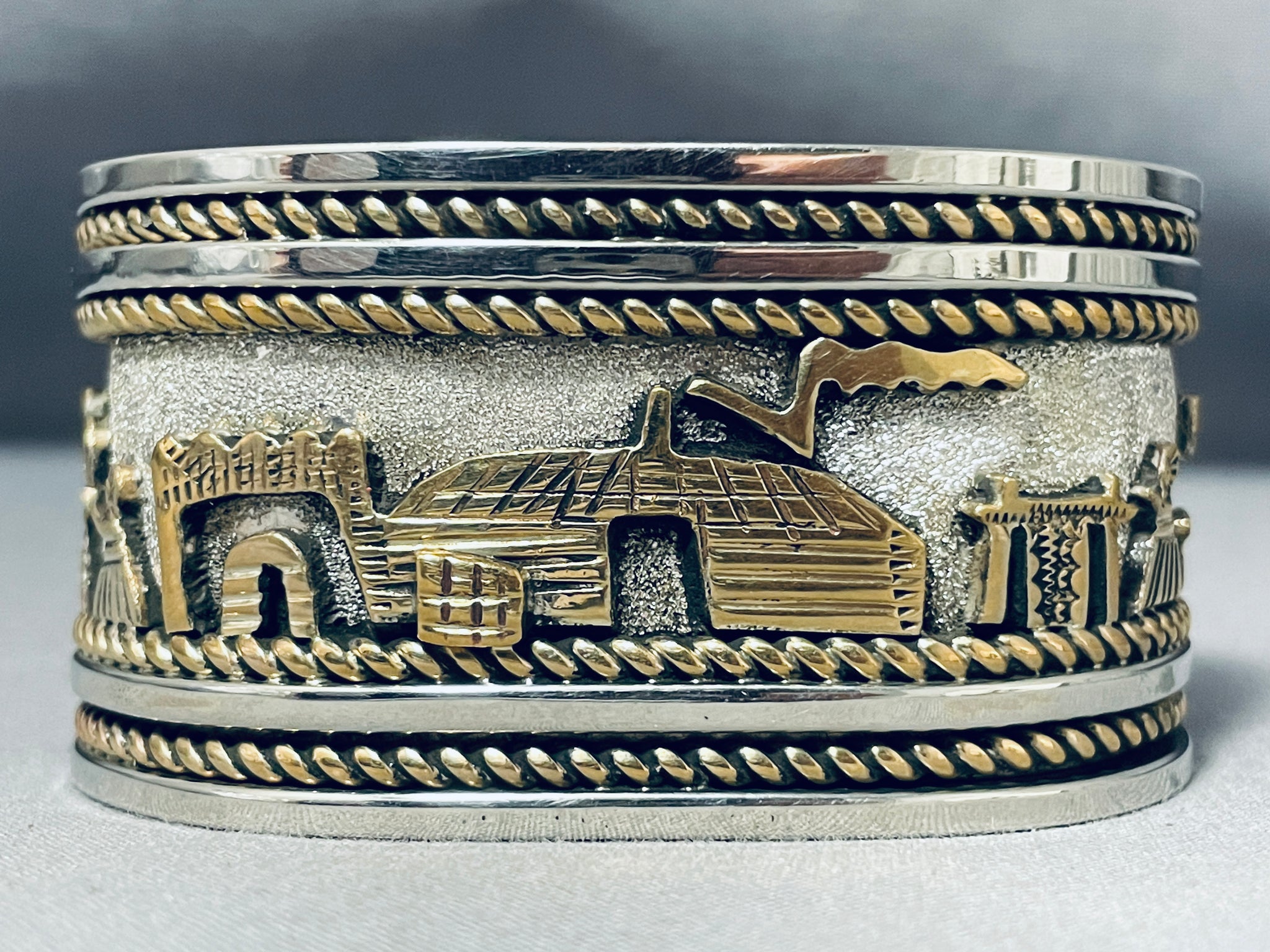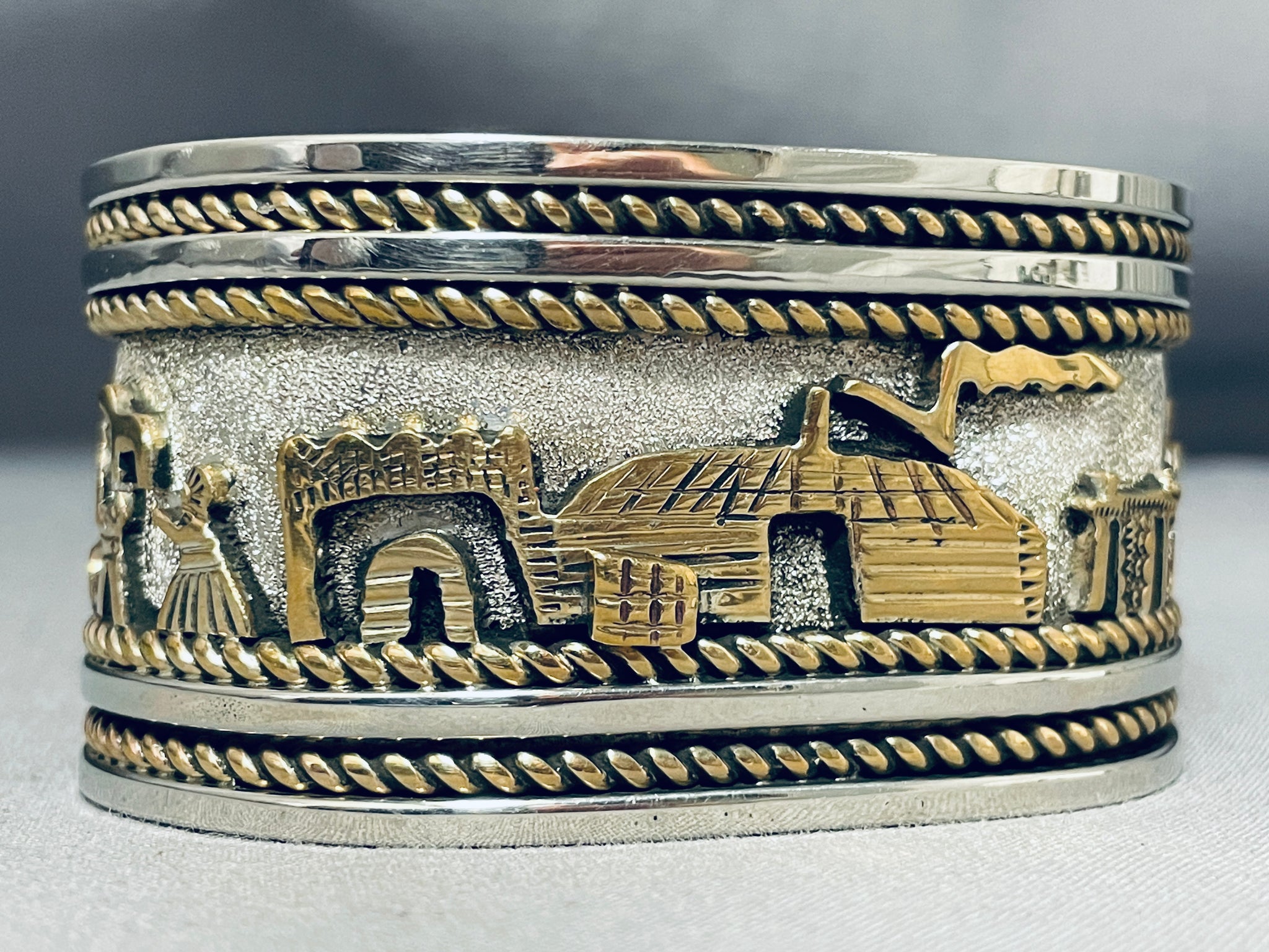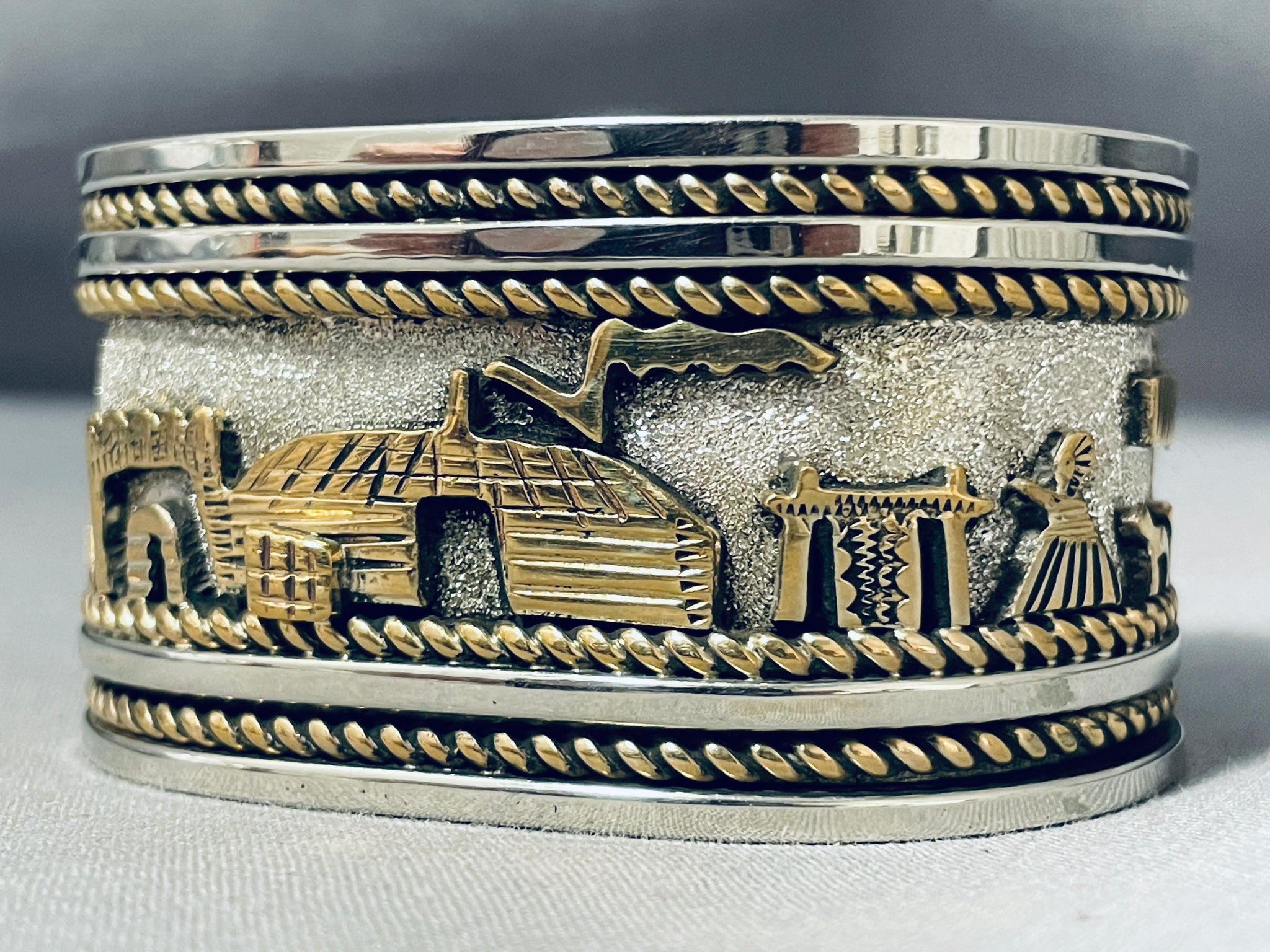 Nelson Native American Navajo Sterling Silver & Gold Storyteller Bracelet