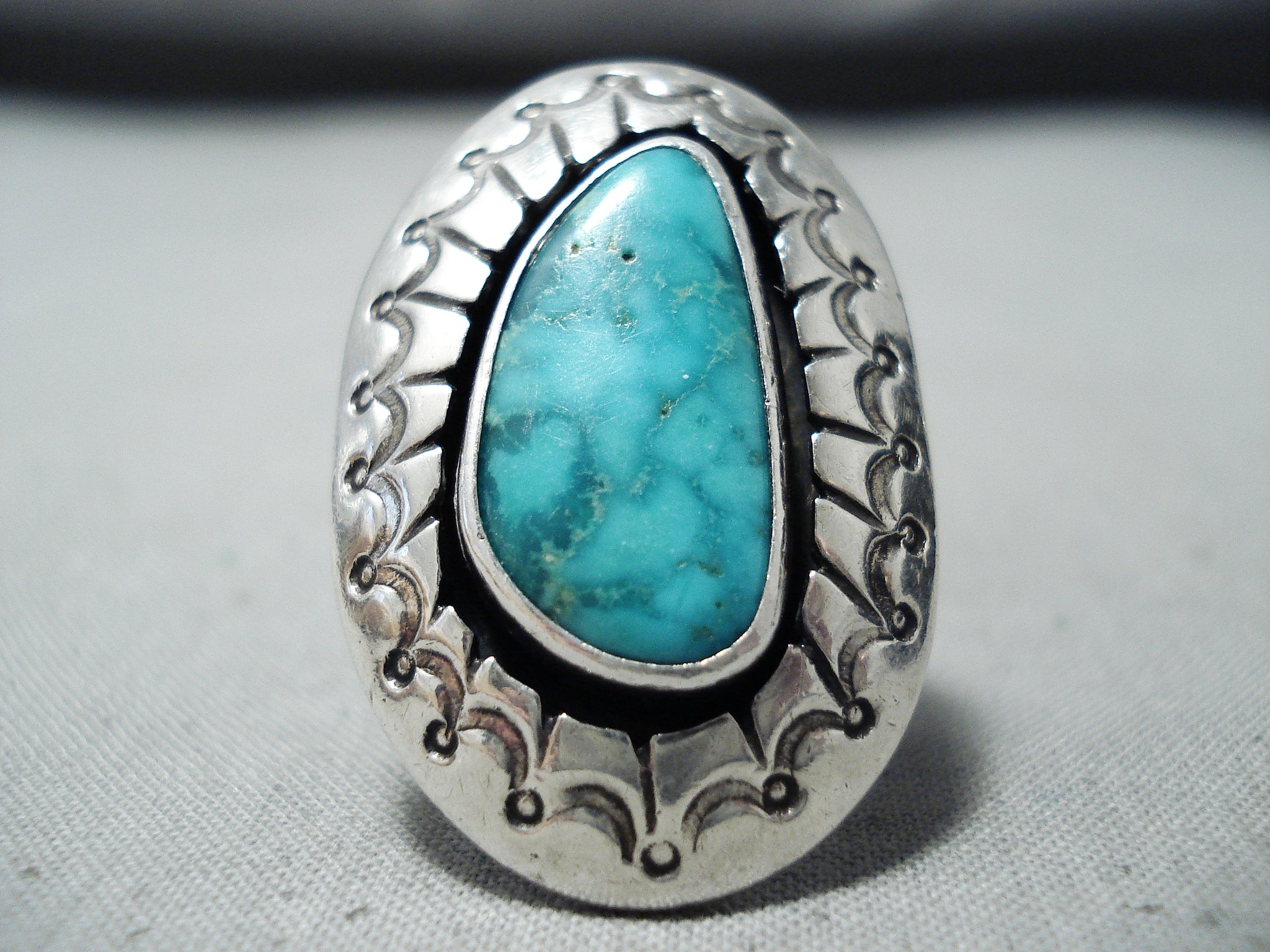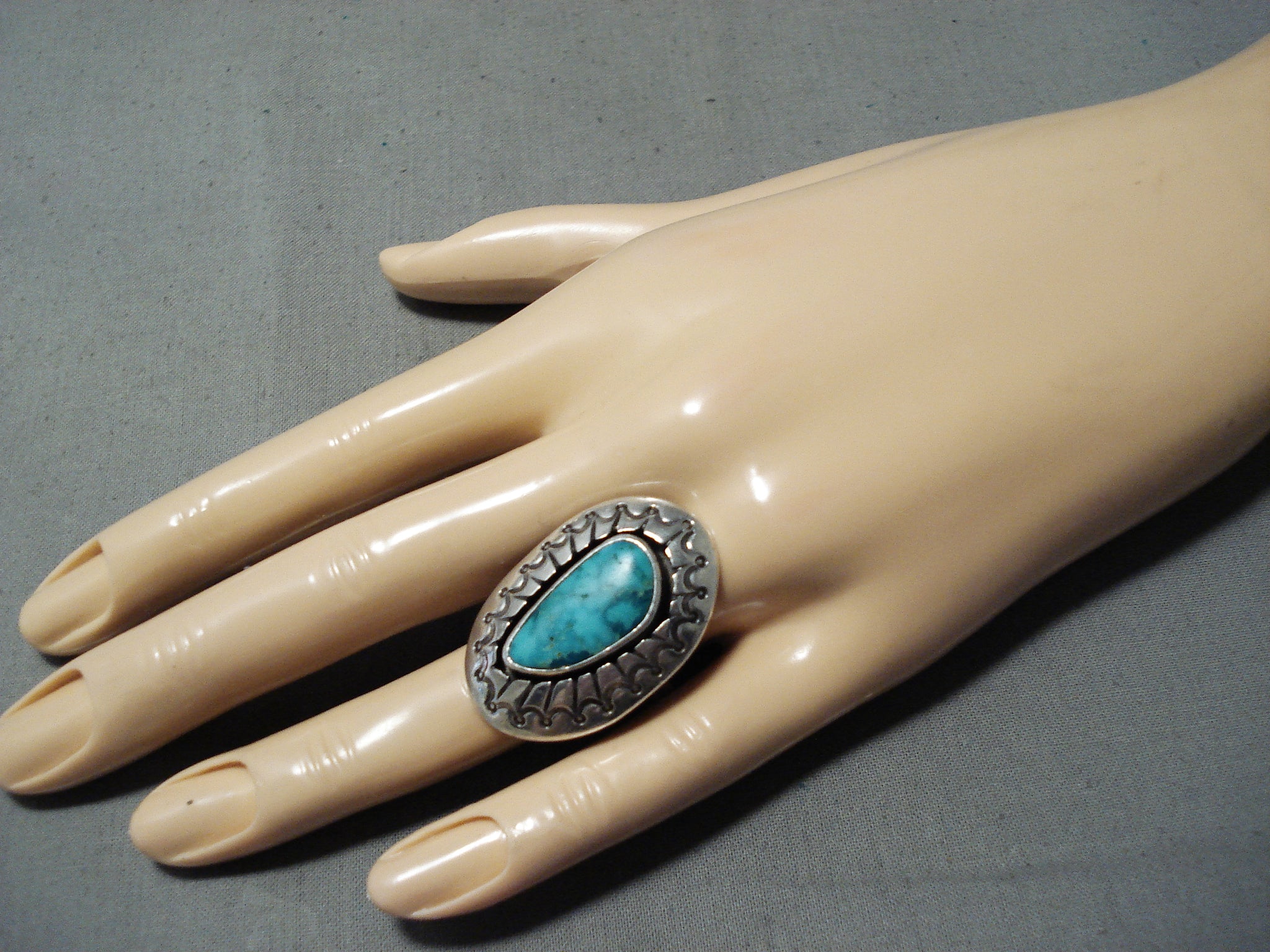 Nez Vintage Native American Navajo Old Kingman Turquoise Sterling Silver Ring