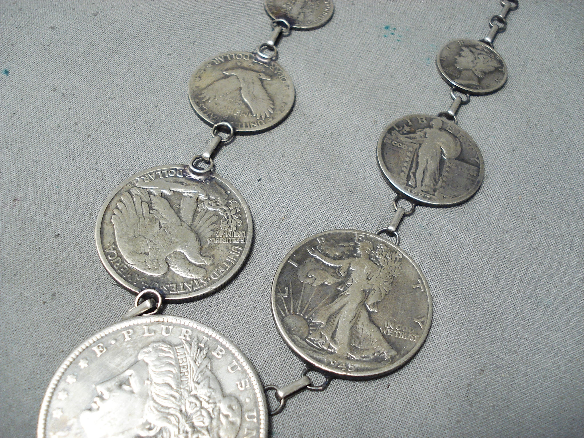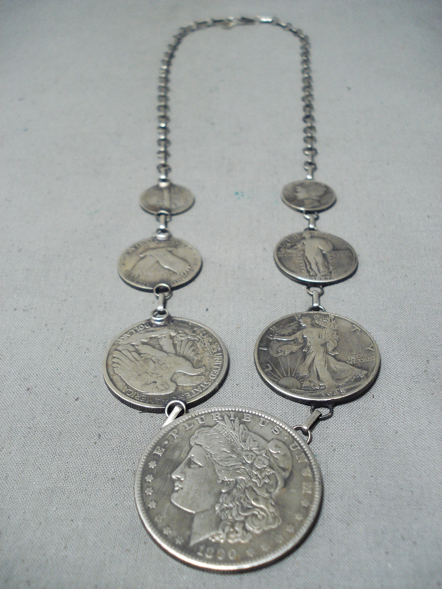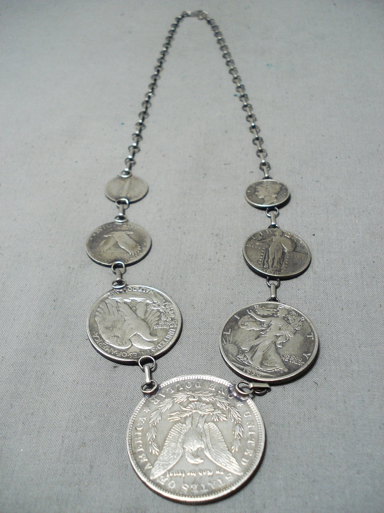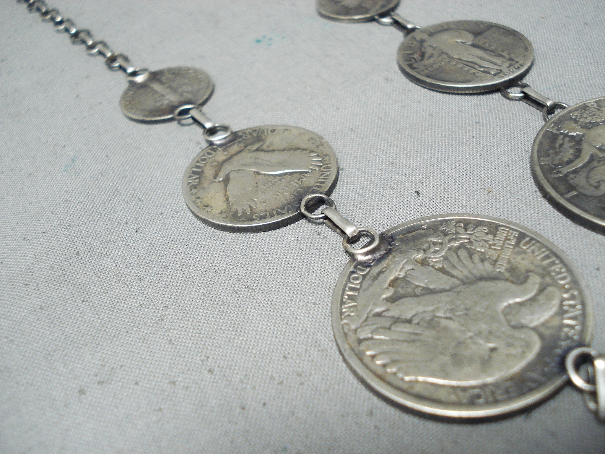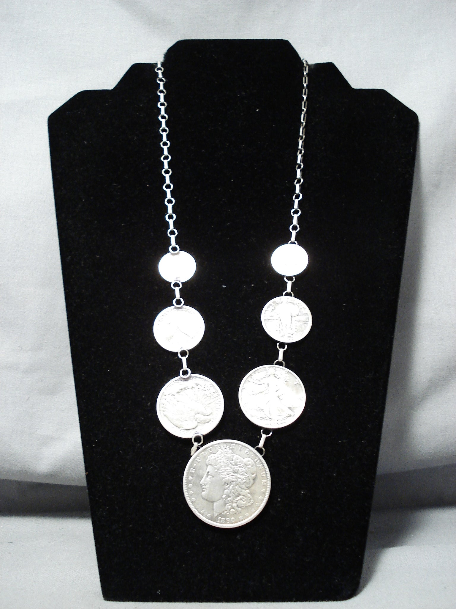 Noteworthy Navajo Old Coins Sterling Silver Necklace Native American