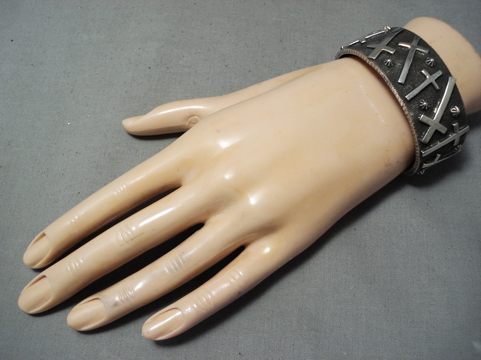 Noteworthy Navajo Sterling Silver Cross Bracelet Native American