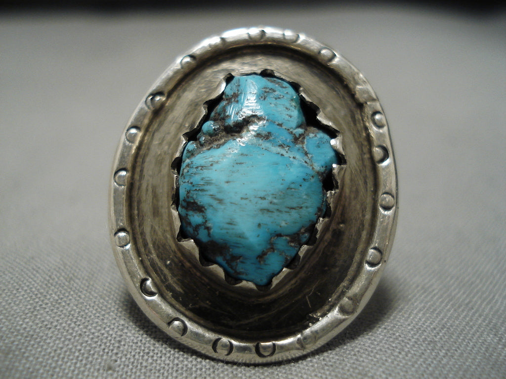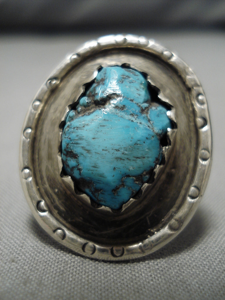 Old Bisbee Turquoise Vintage Navajo Sterling Silver Native American Ring Old