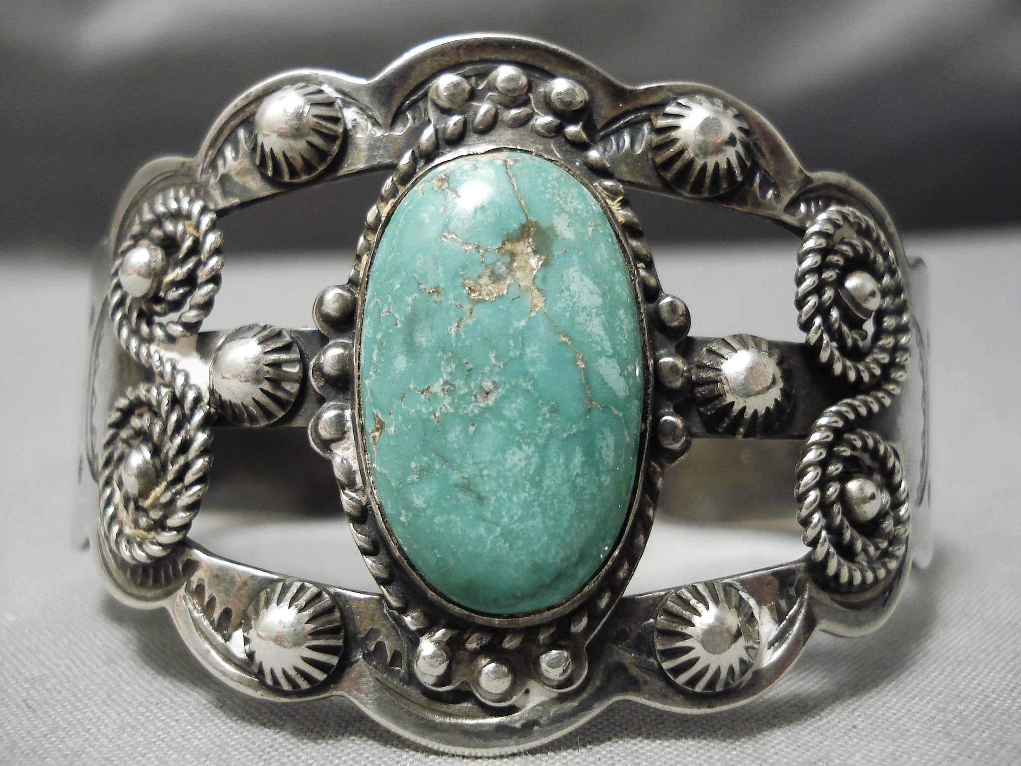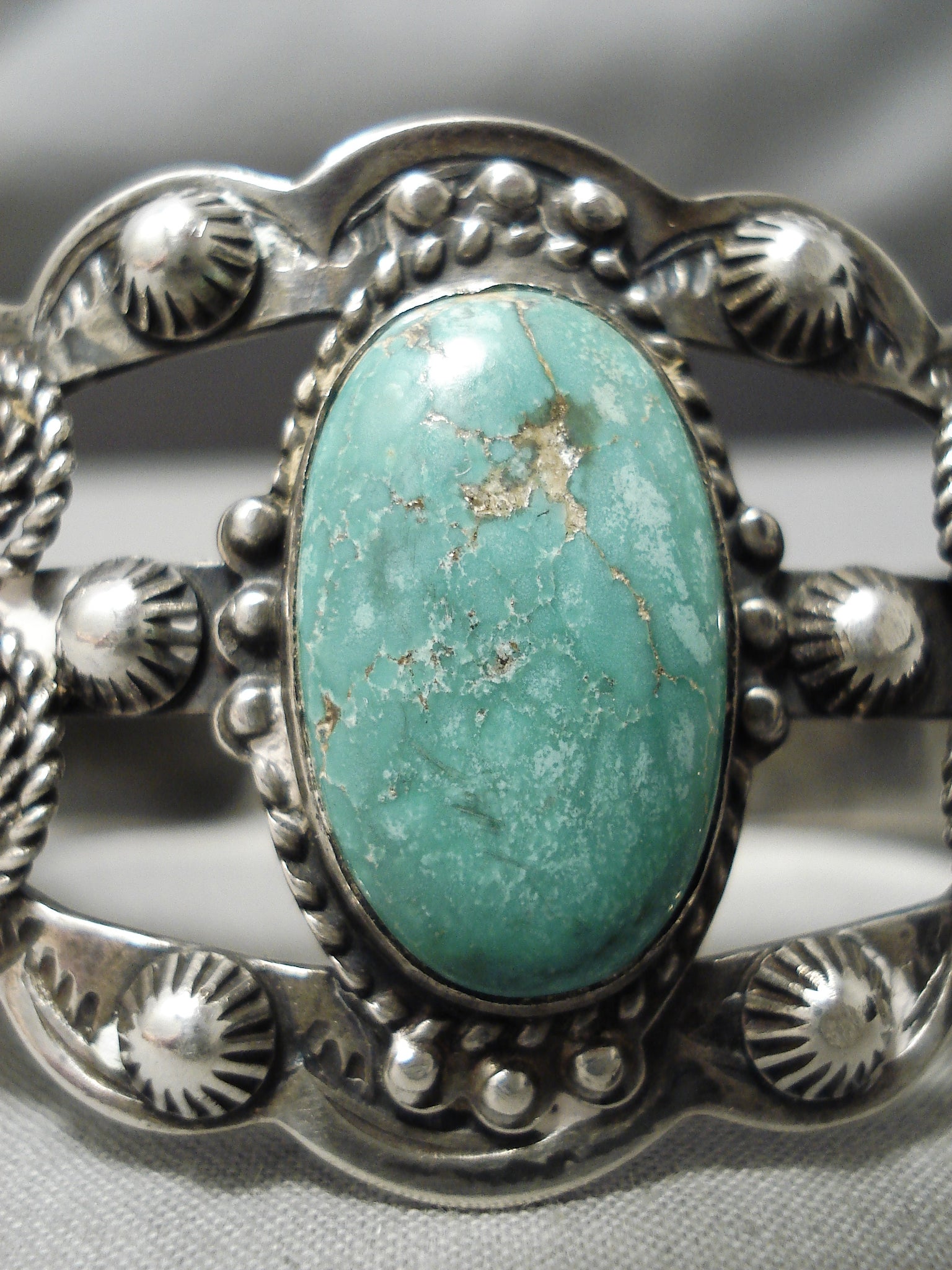 Old Old Vintage Native American Navajo Domed Cerrillos Turquoise Sterling Silver Swirl Bracelet