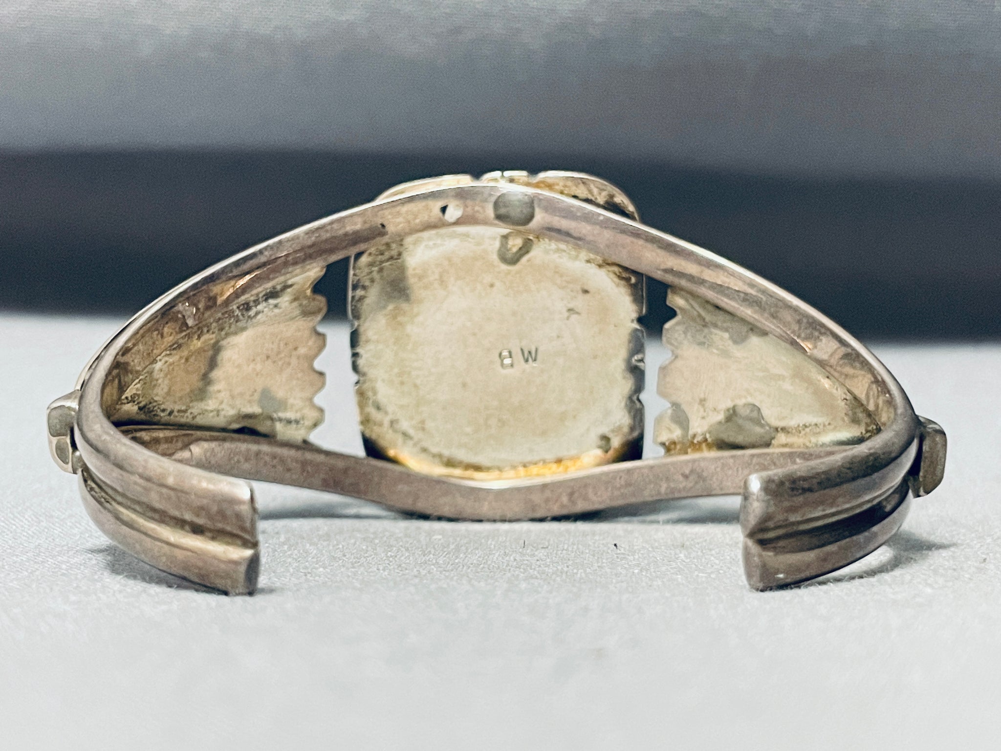 Older Signed Vintage Native American Navajo Rectangle Green Turquoise Sterling Silver Bracelet
