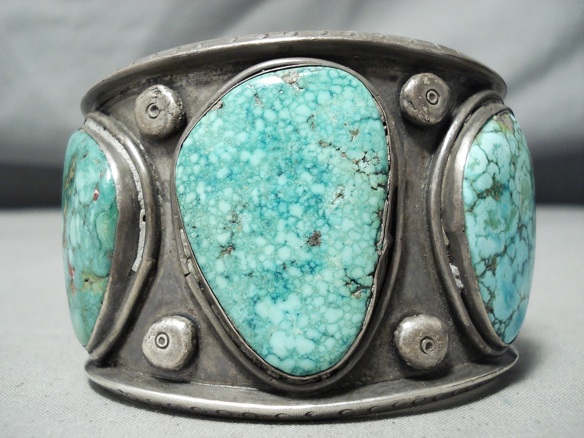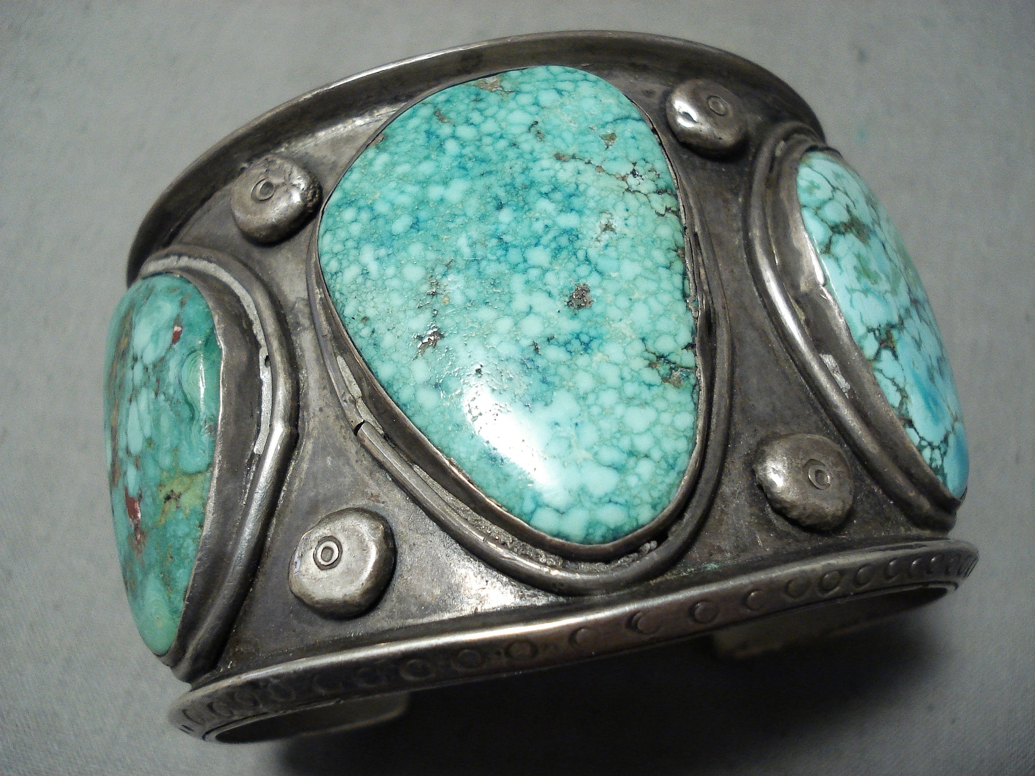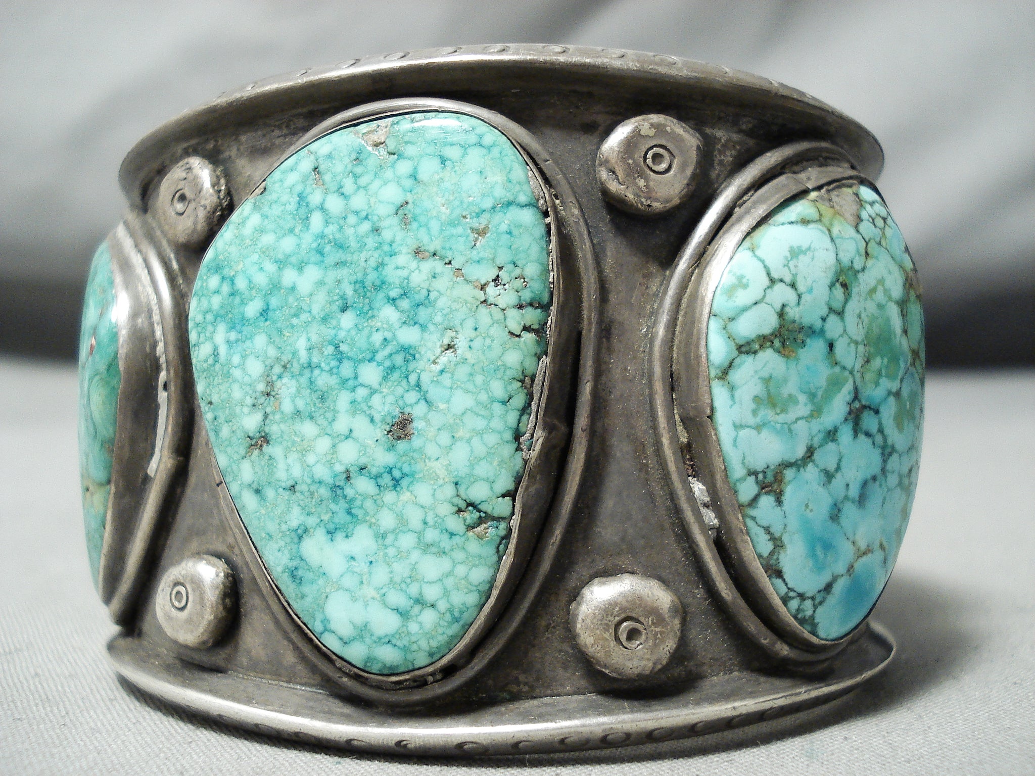 One Biggest Men's Vintage Native American Navajo Carico Lake Turquoise Sterling Silver Bracelet