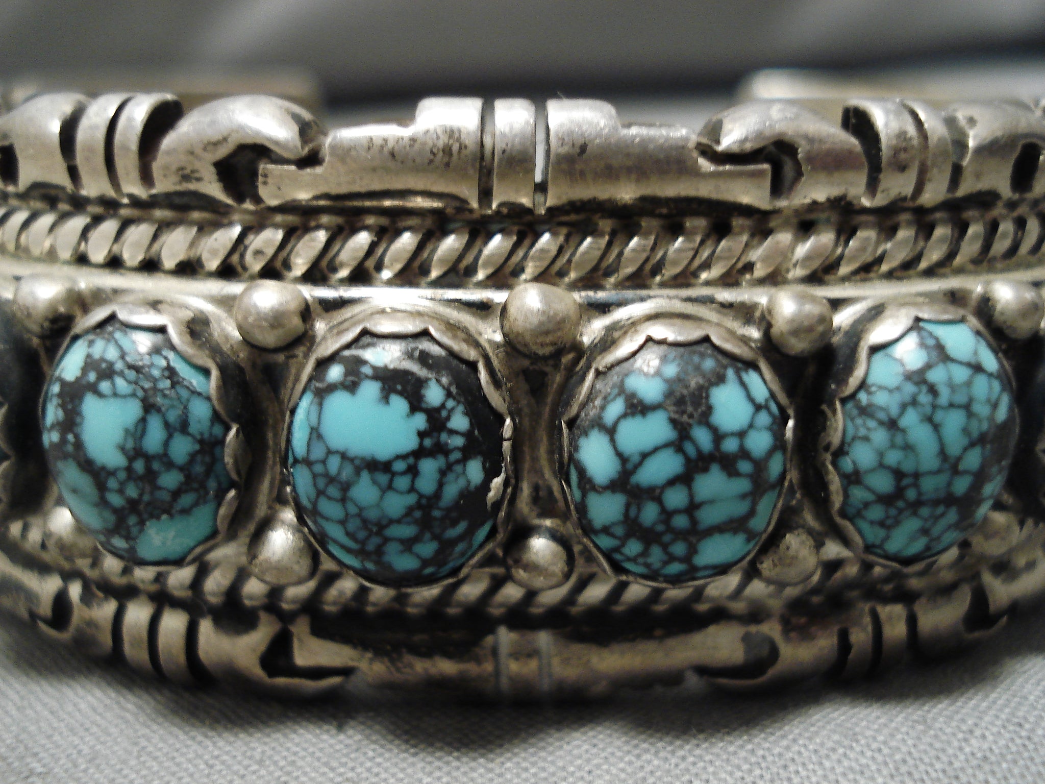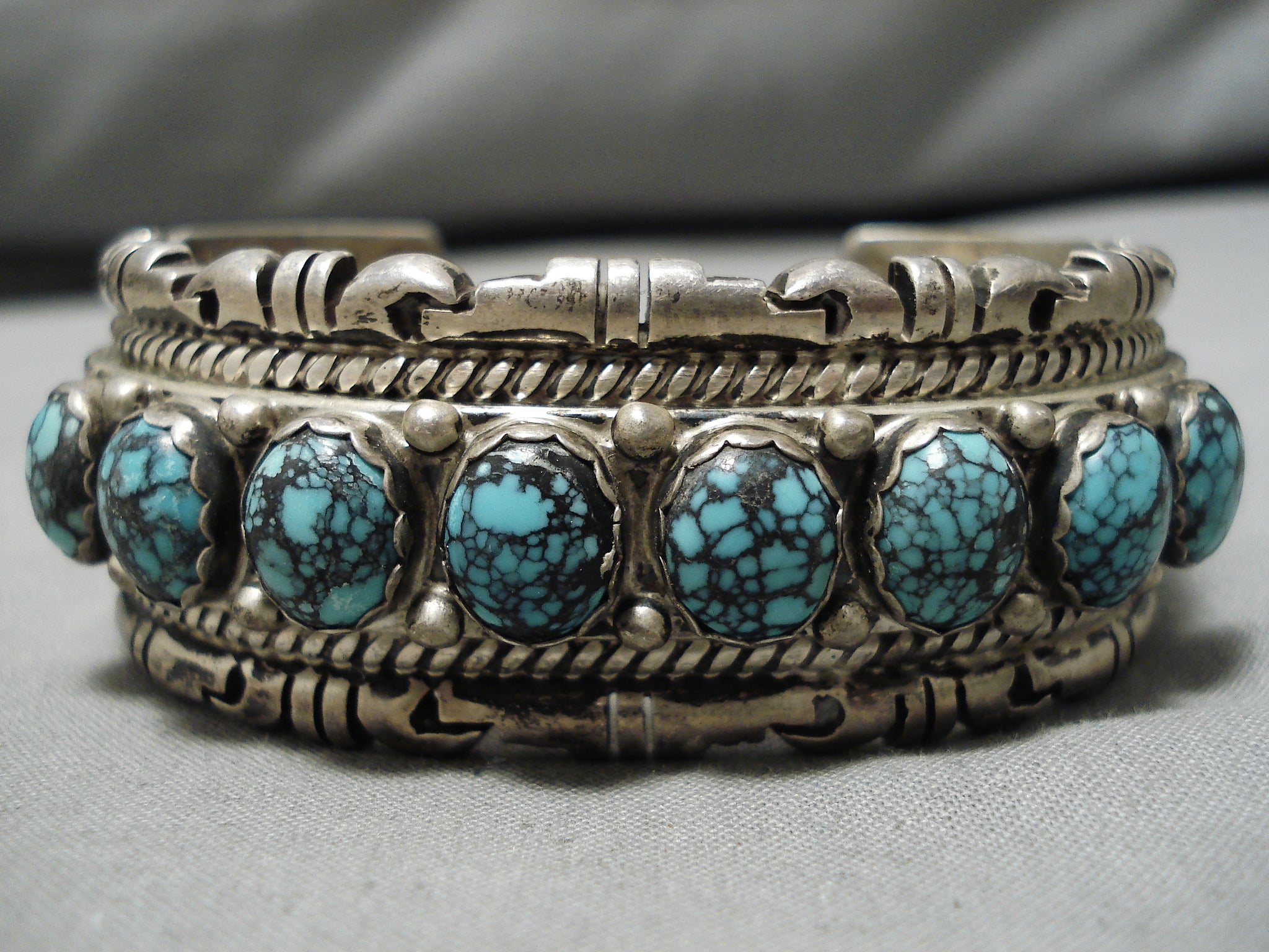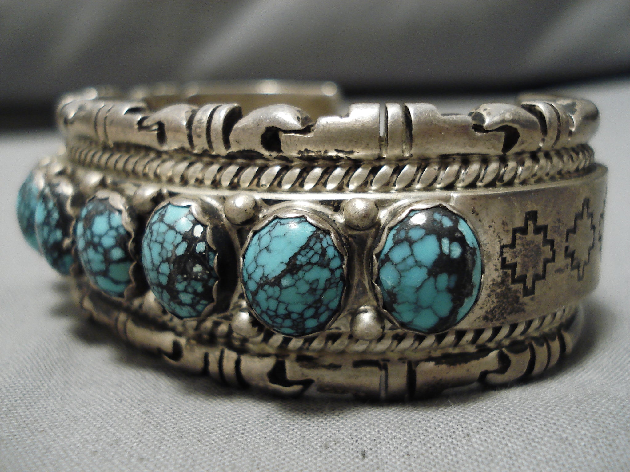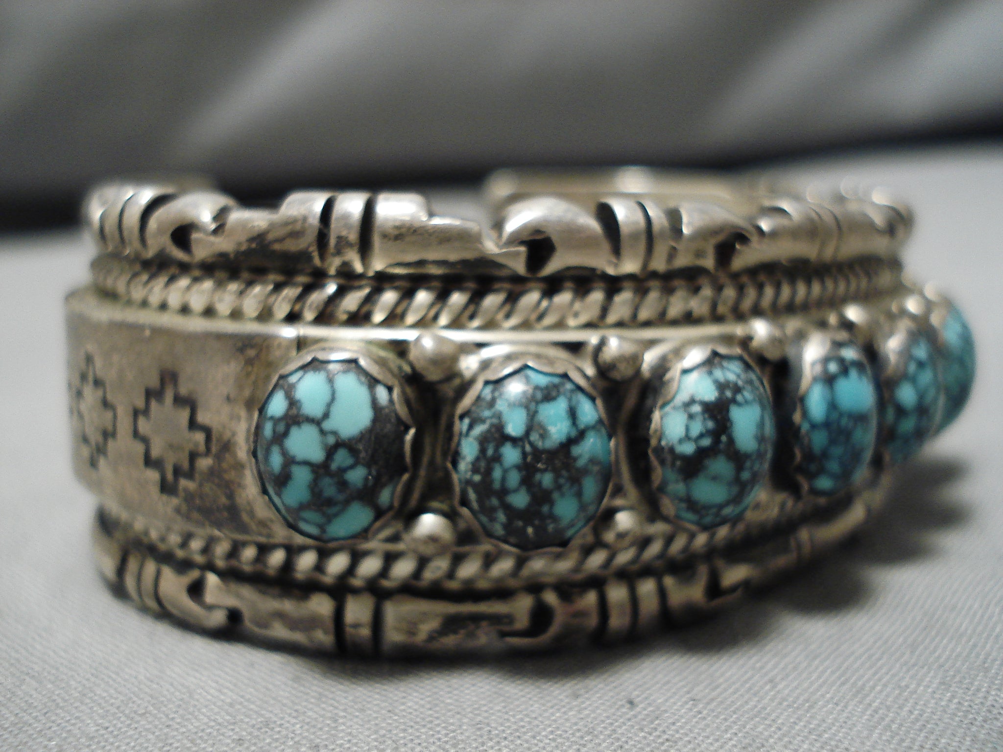 One Finest Vintage Native American Navajo Spiderweb Turquoise Sterling Silver Bracelet Old