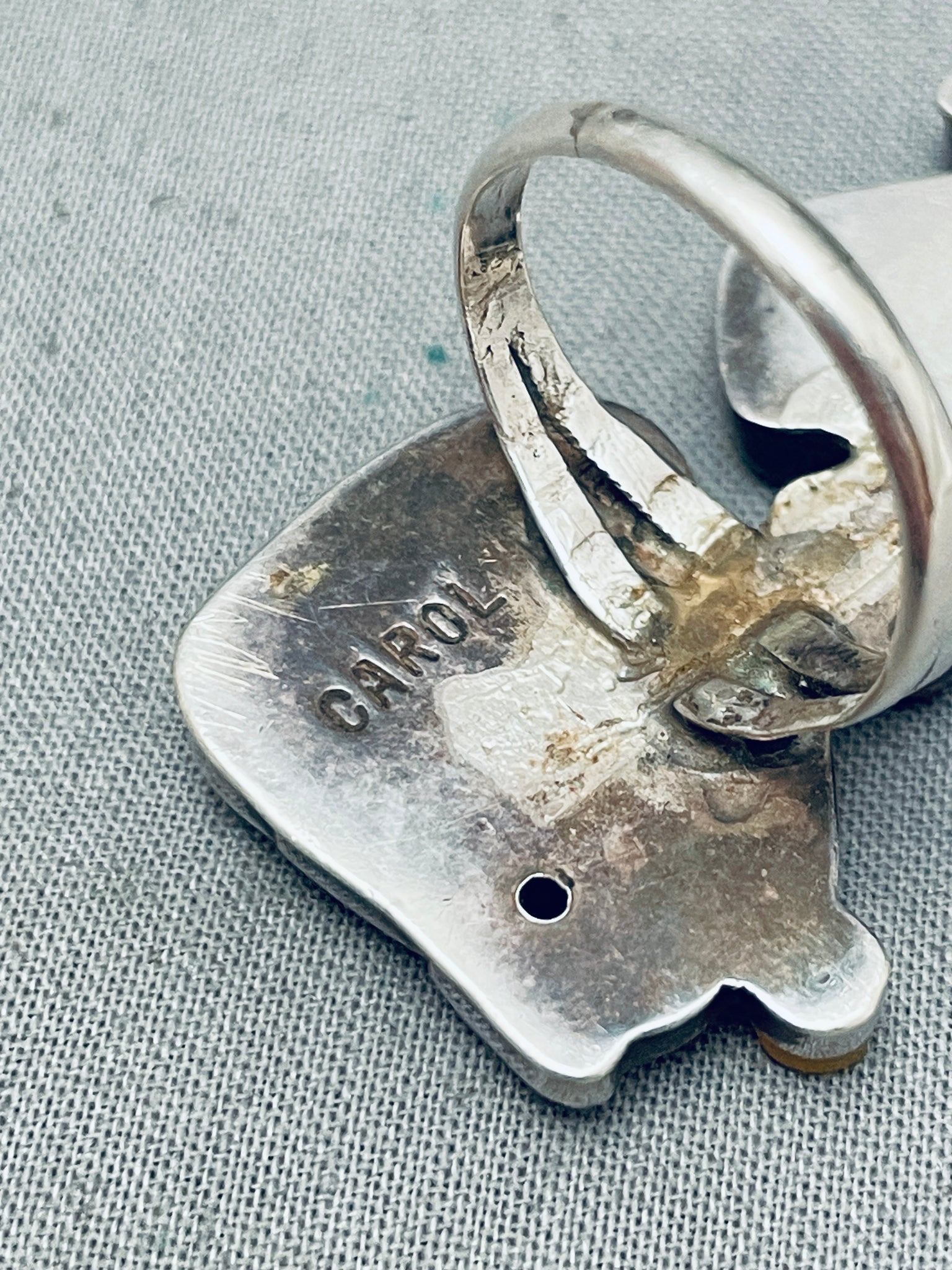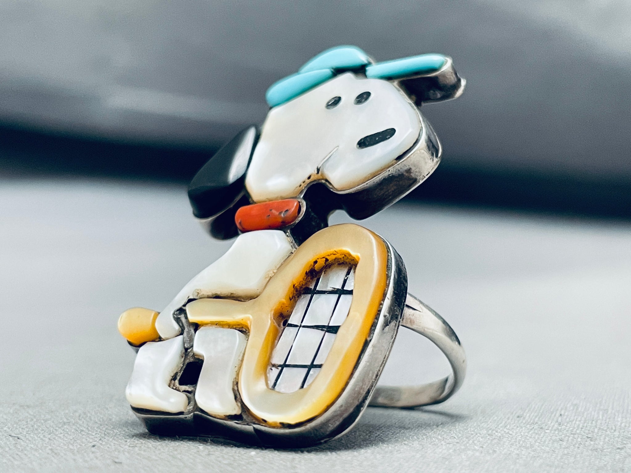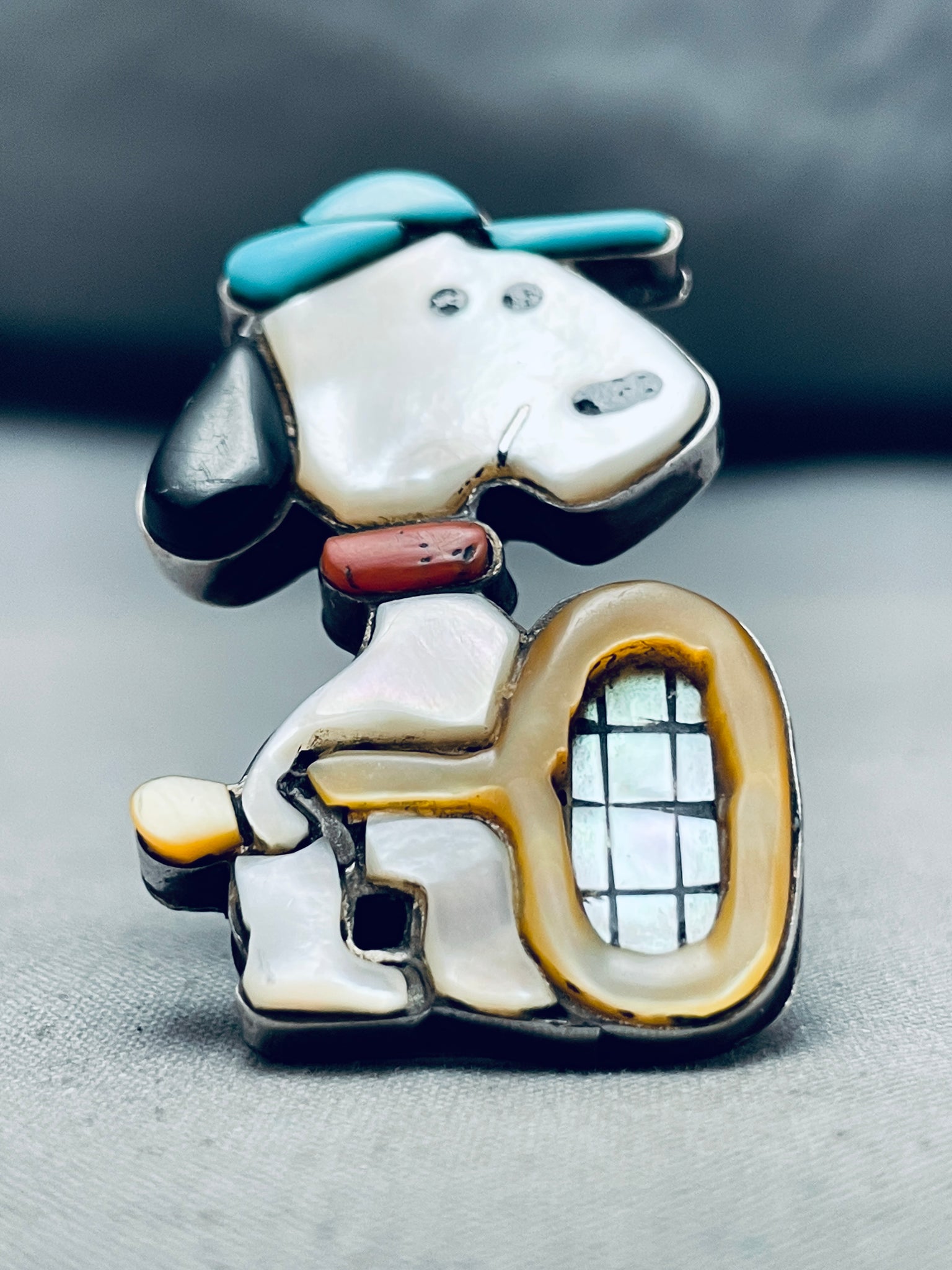 One Of A Kind Vintage Native American Zuni Snoopy Inlay Sterling Silver Native American Zuni Ring