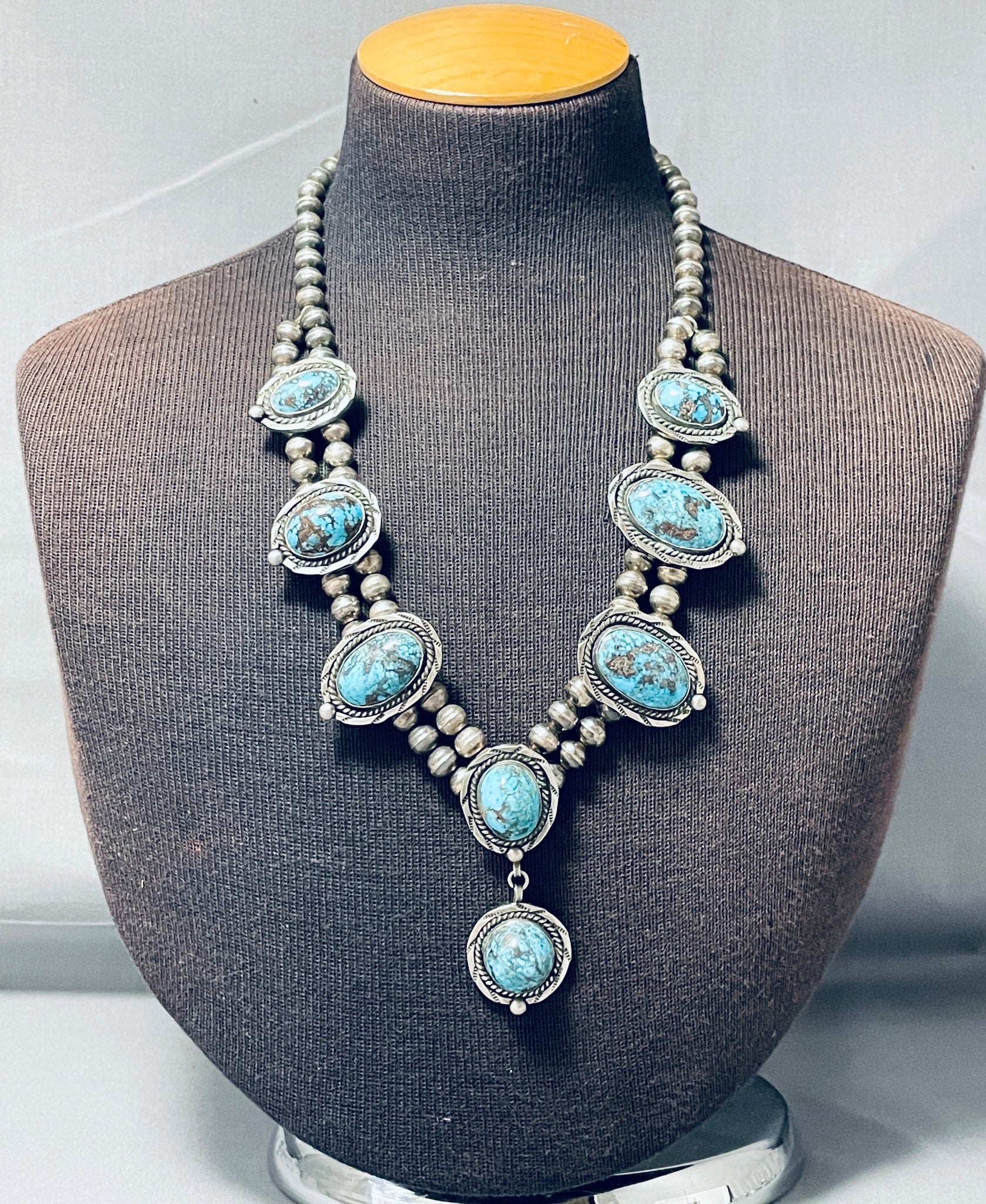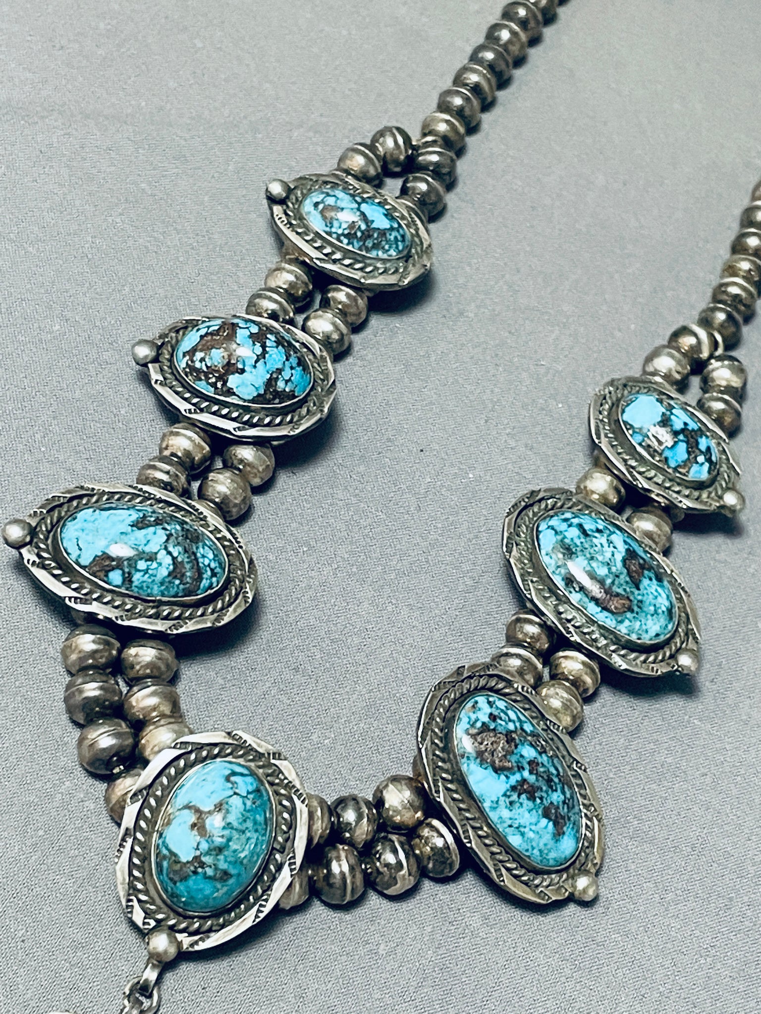 One Of Best Ever Vintage Native American Navajo Domed Bisbee Turquoise Sterling Silver Necklace
